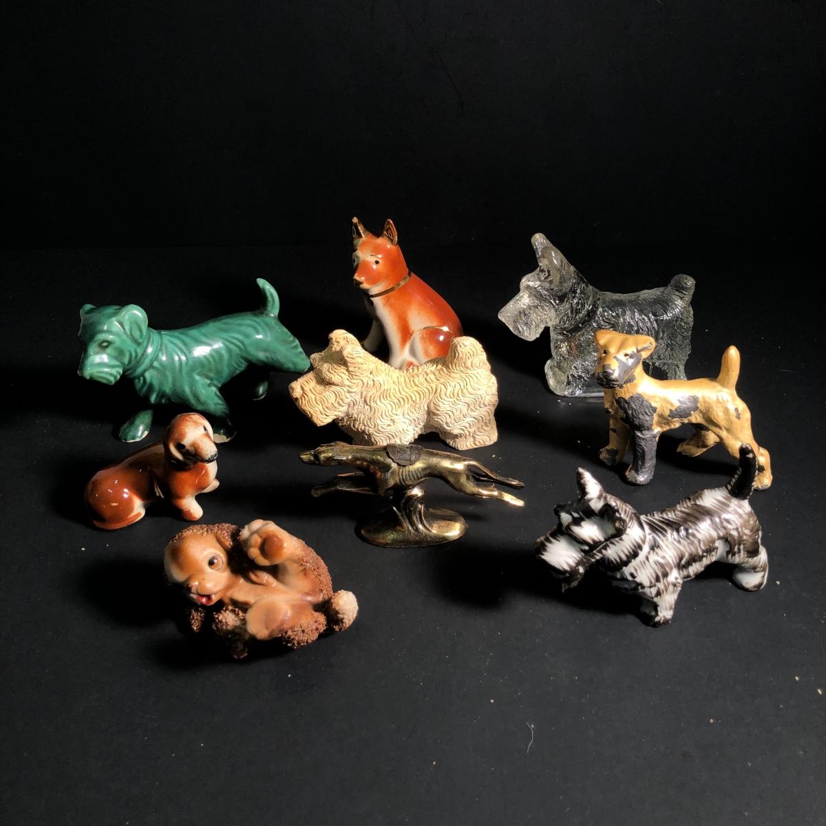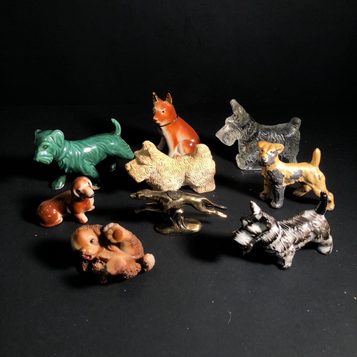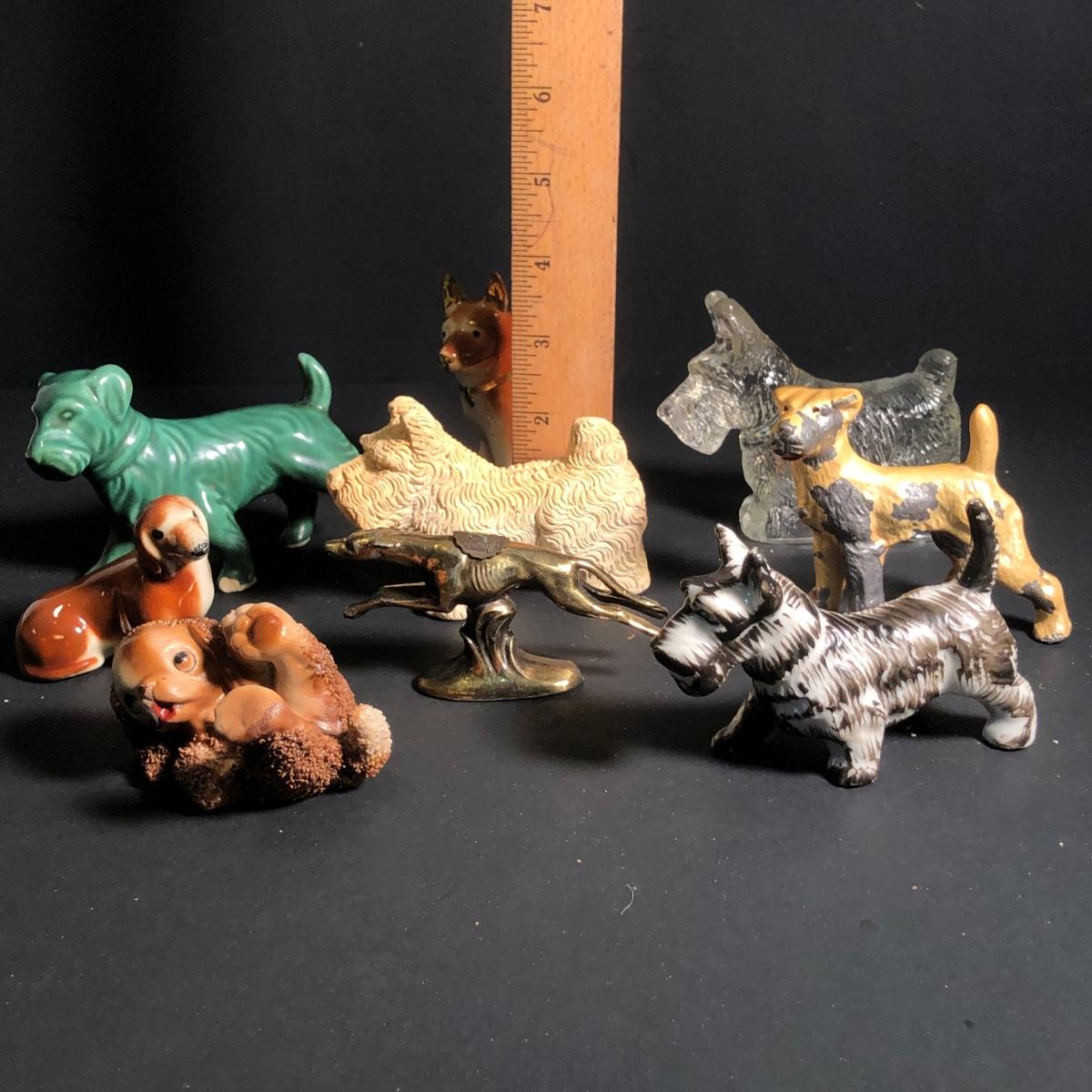 LOT 65B: Vintage Dog Figurines - Glass, Metal, Ceramic