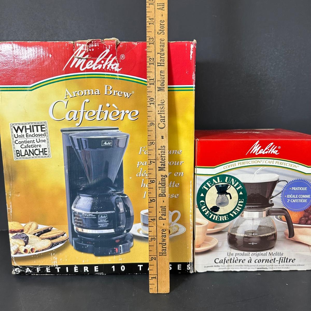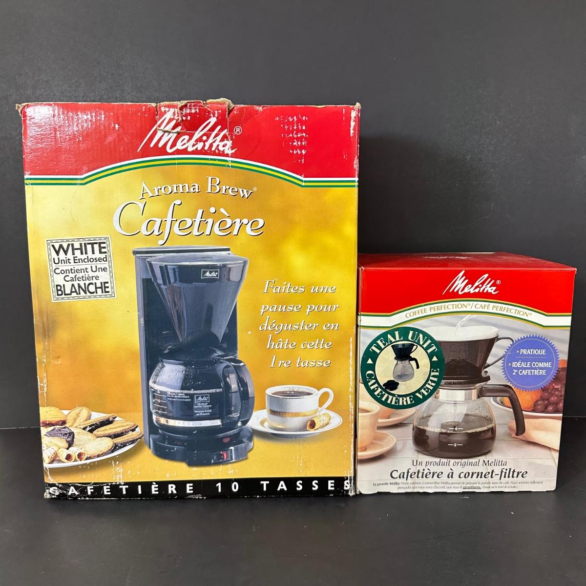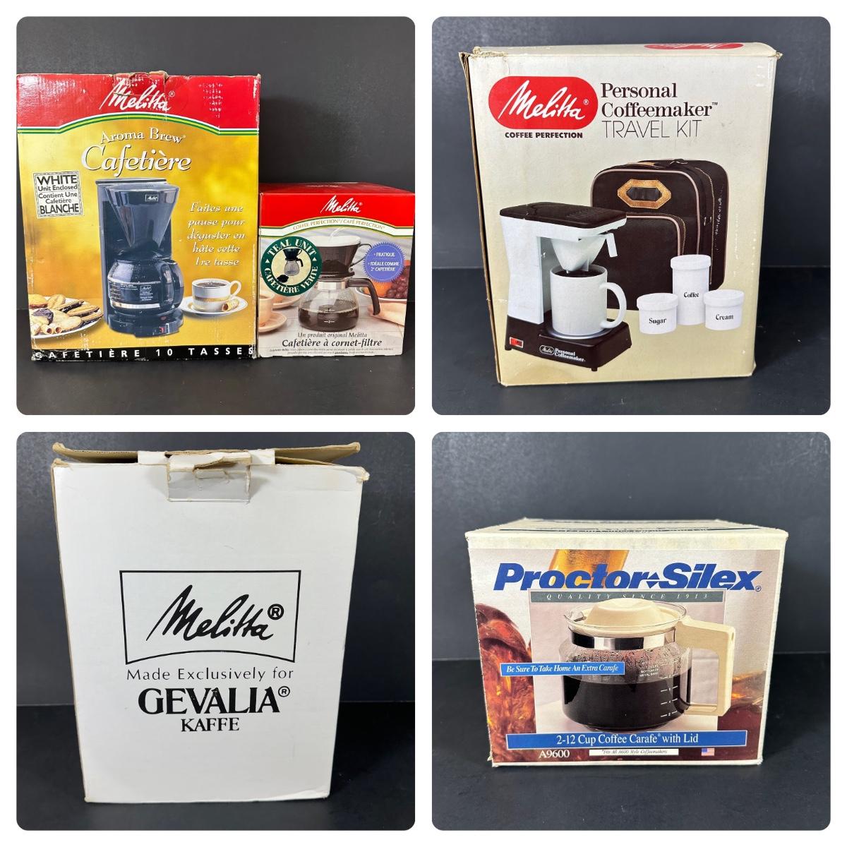 LOT 90A: Aroma Brew Coffee Maker w/ Melitta Travel Kit, Carafes & More