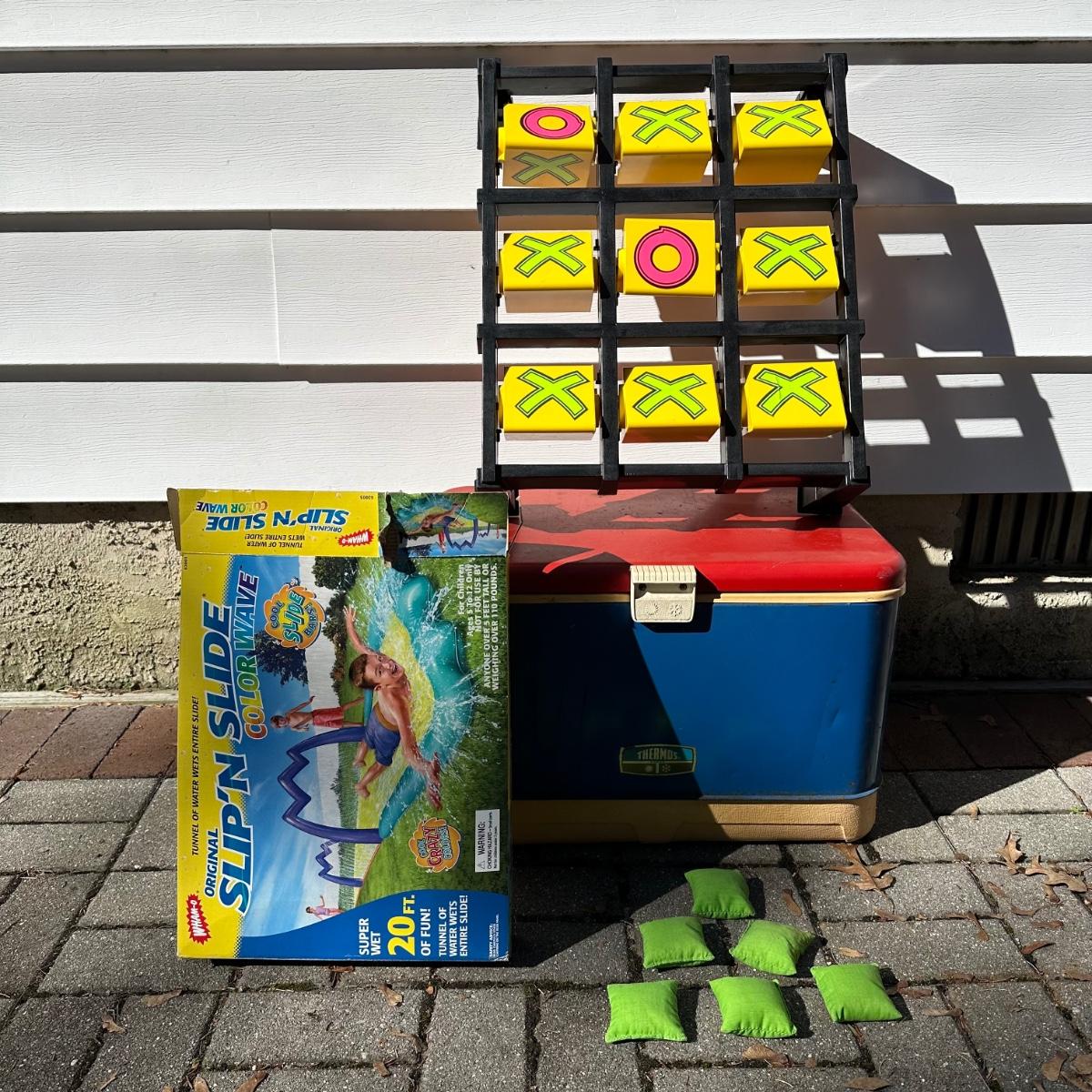 LOT 94A: Vintage Thermos Cooler w/ Slip & Slide & Toss Across Game