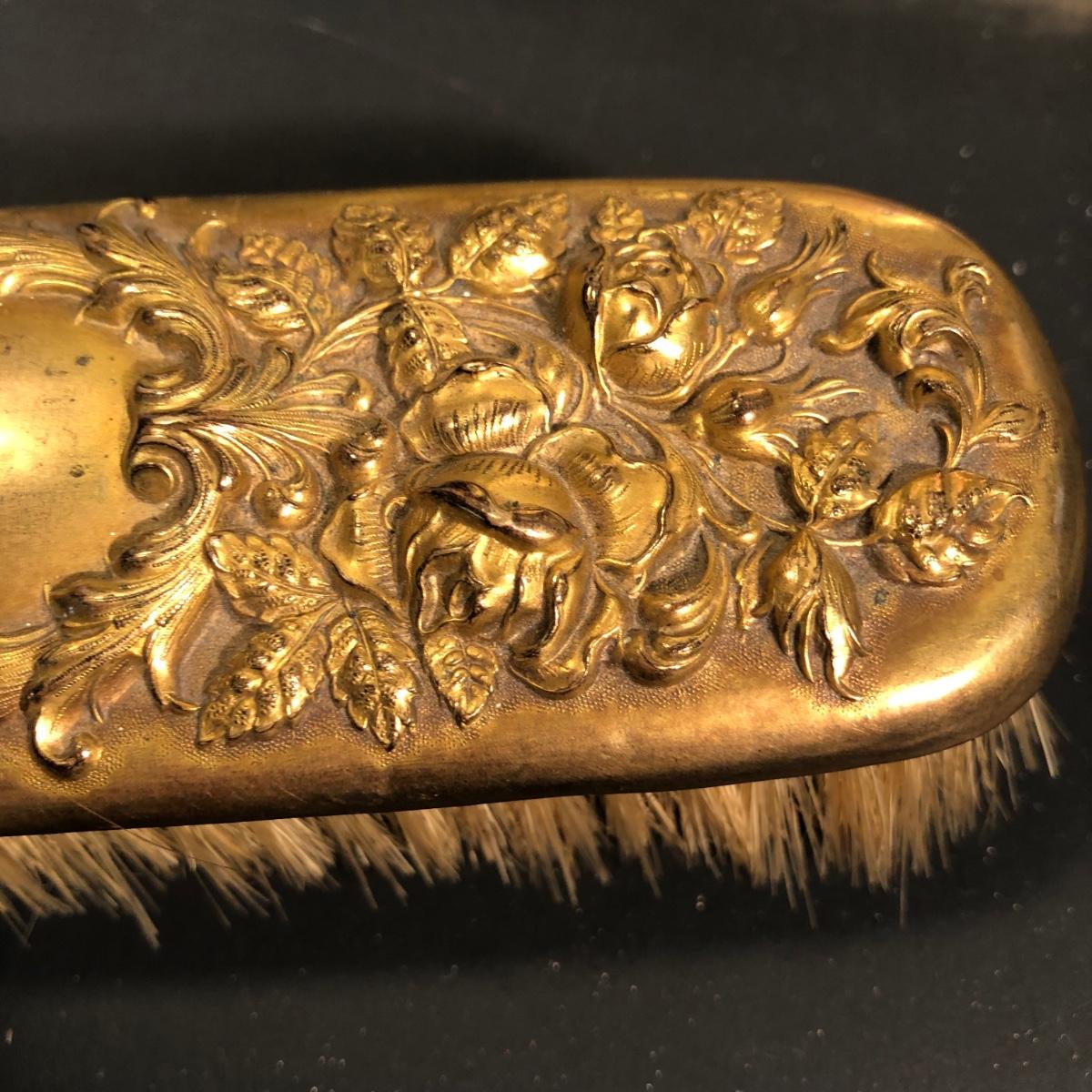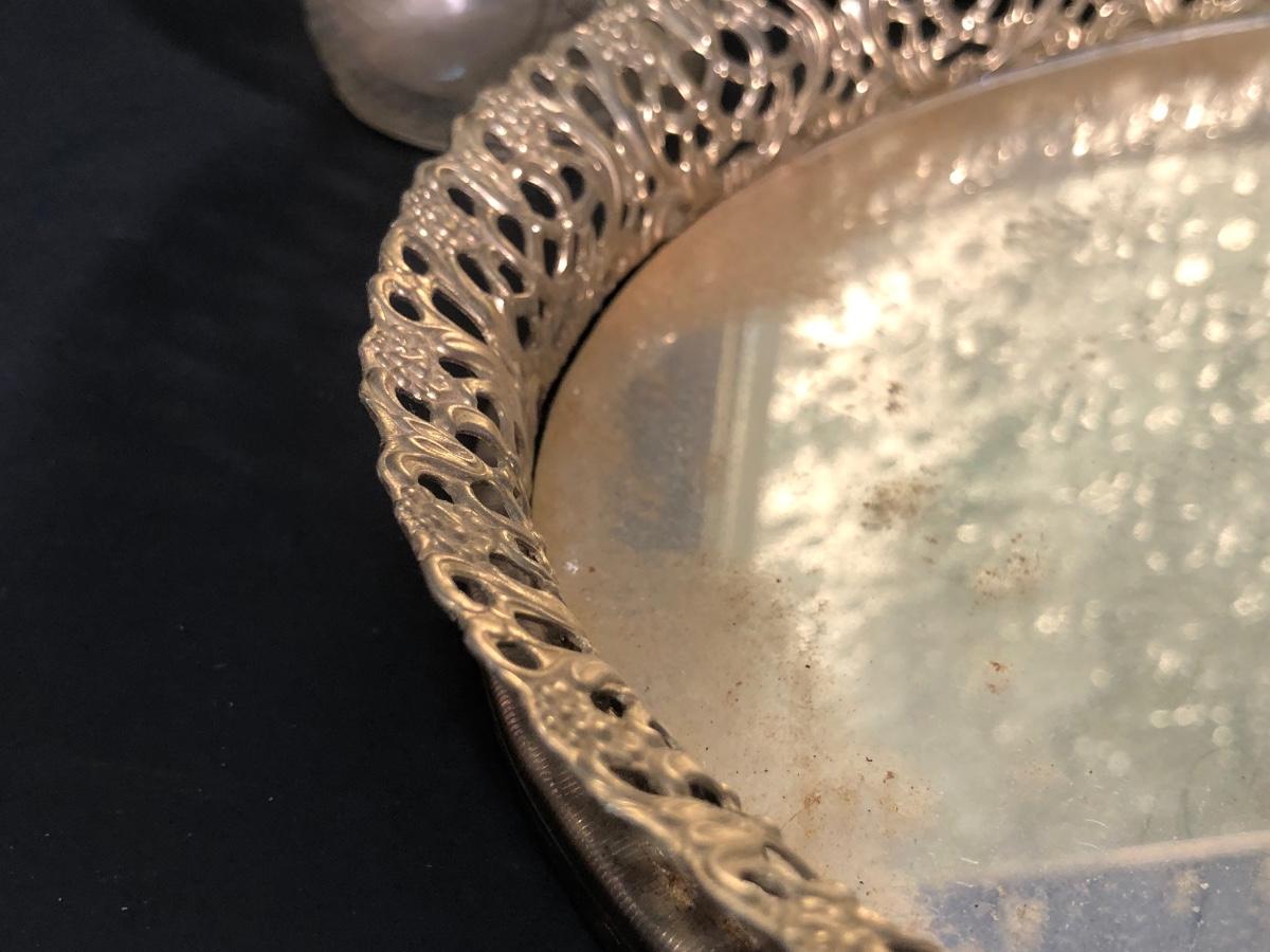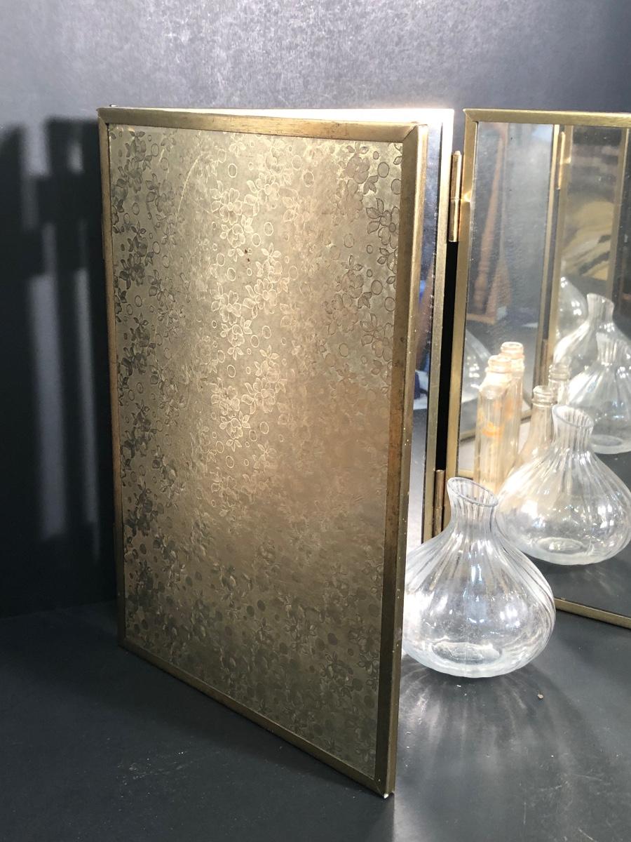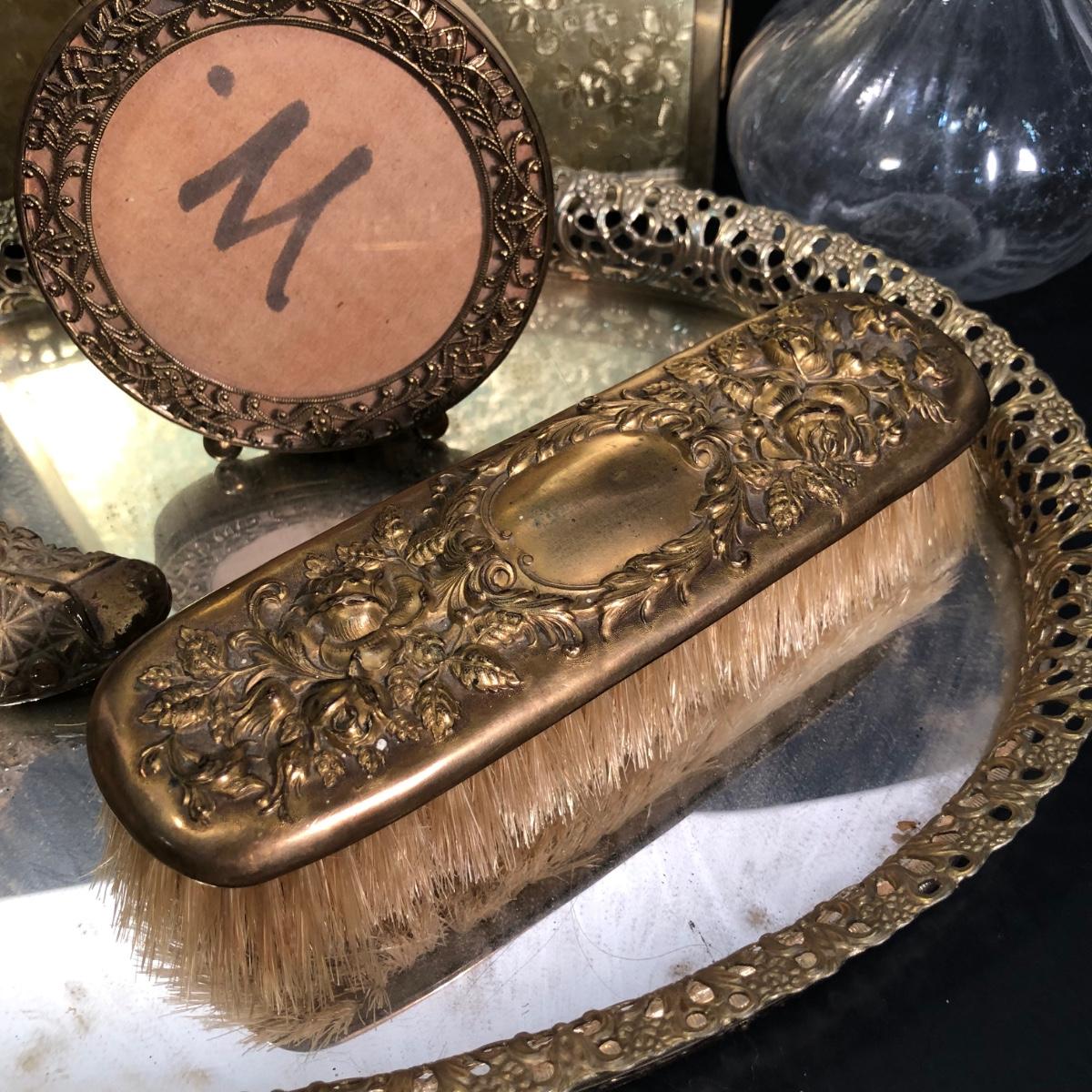 LOT 127A: Vintage Vanity Collection - Filigree Mirrored Tray, Tri-Folding Mirror, Small Frame, Ornate Brush & More