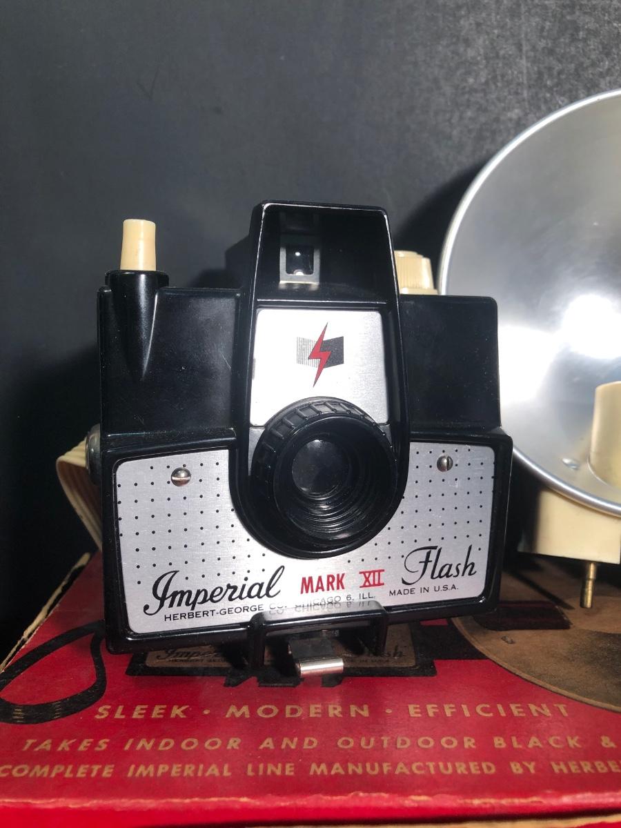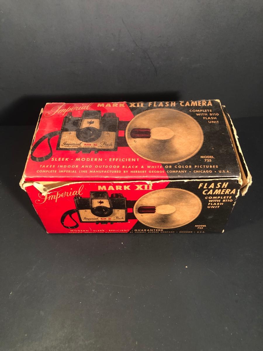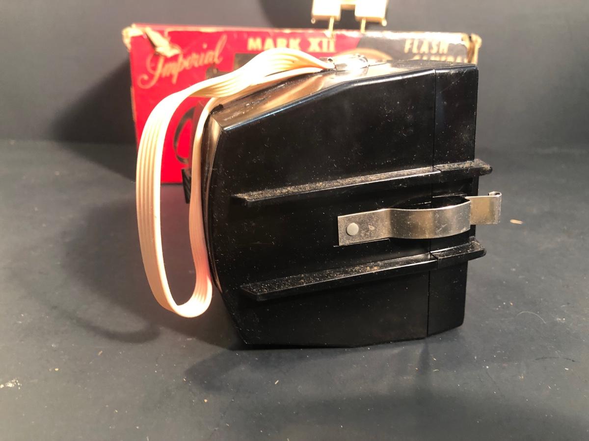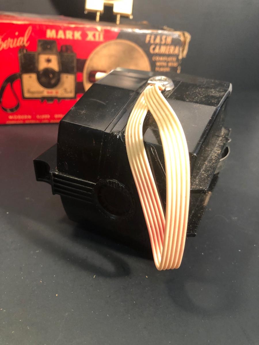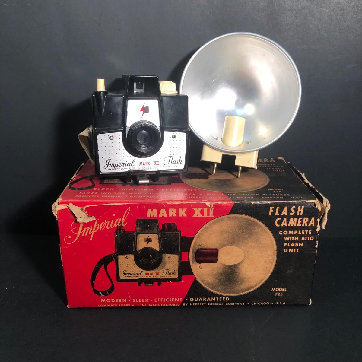 LOT 130A: Vintage Cameras & Flashes - Imperial Mark XII Flash Camera w/ Original Box, Ansco Shur-Flash Box Camera, Polaroids & More