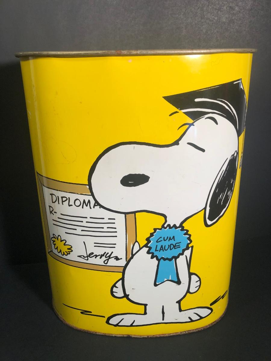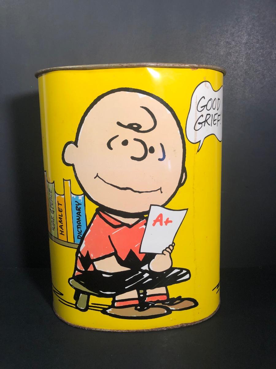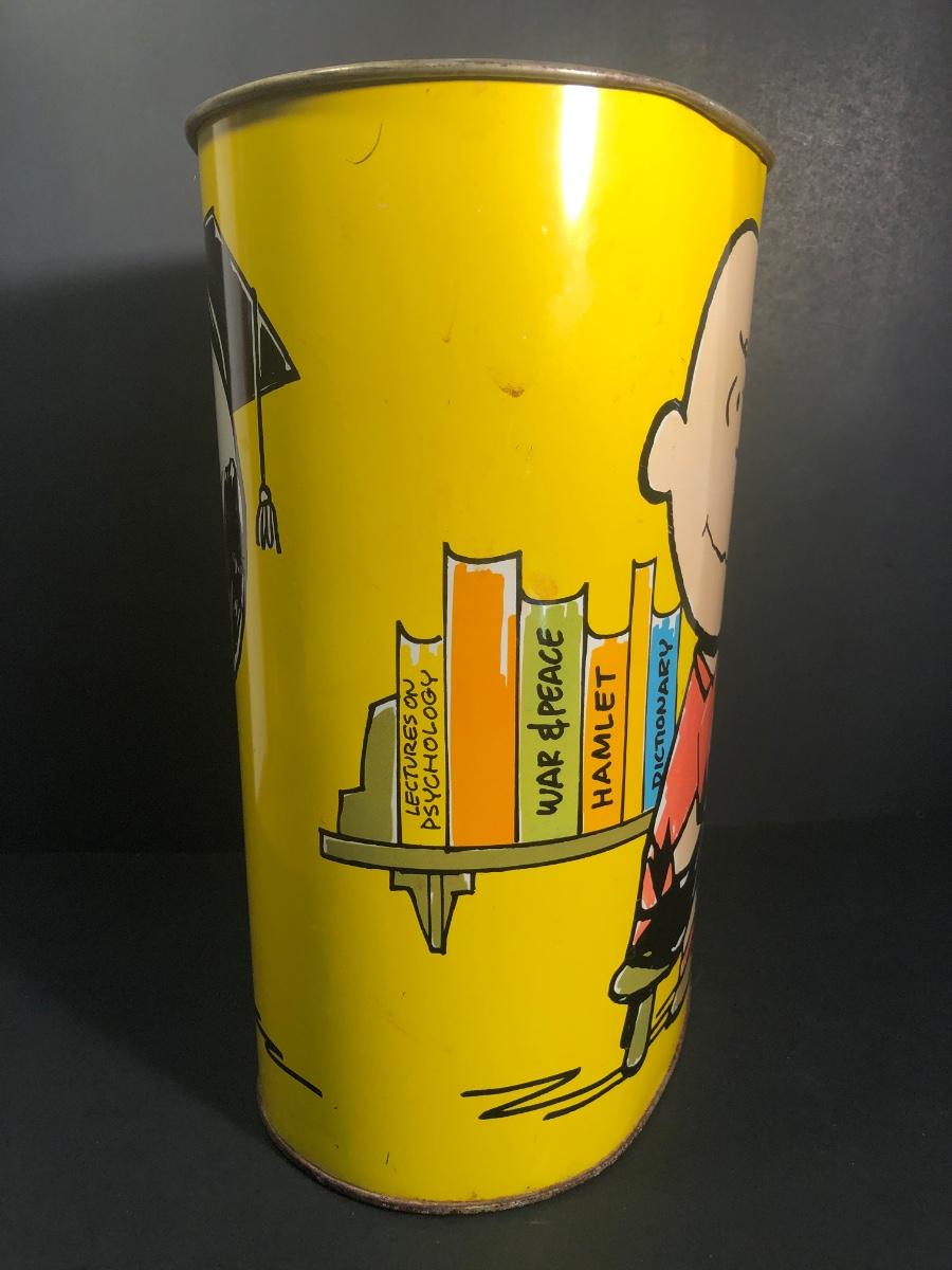 LOT 133B: Vintage 1969 Peanuts Trash Can - Snoopy & Charlie Brown in School