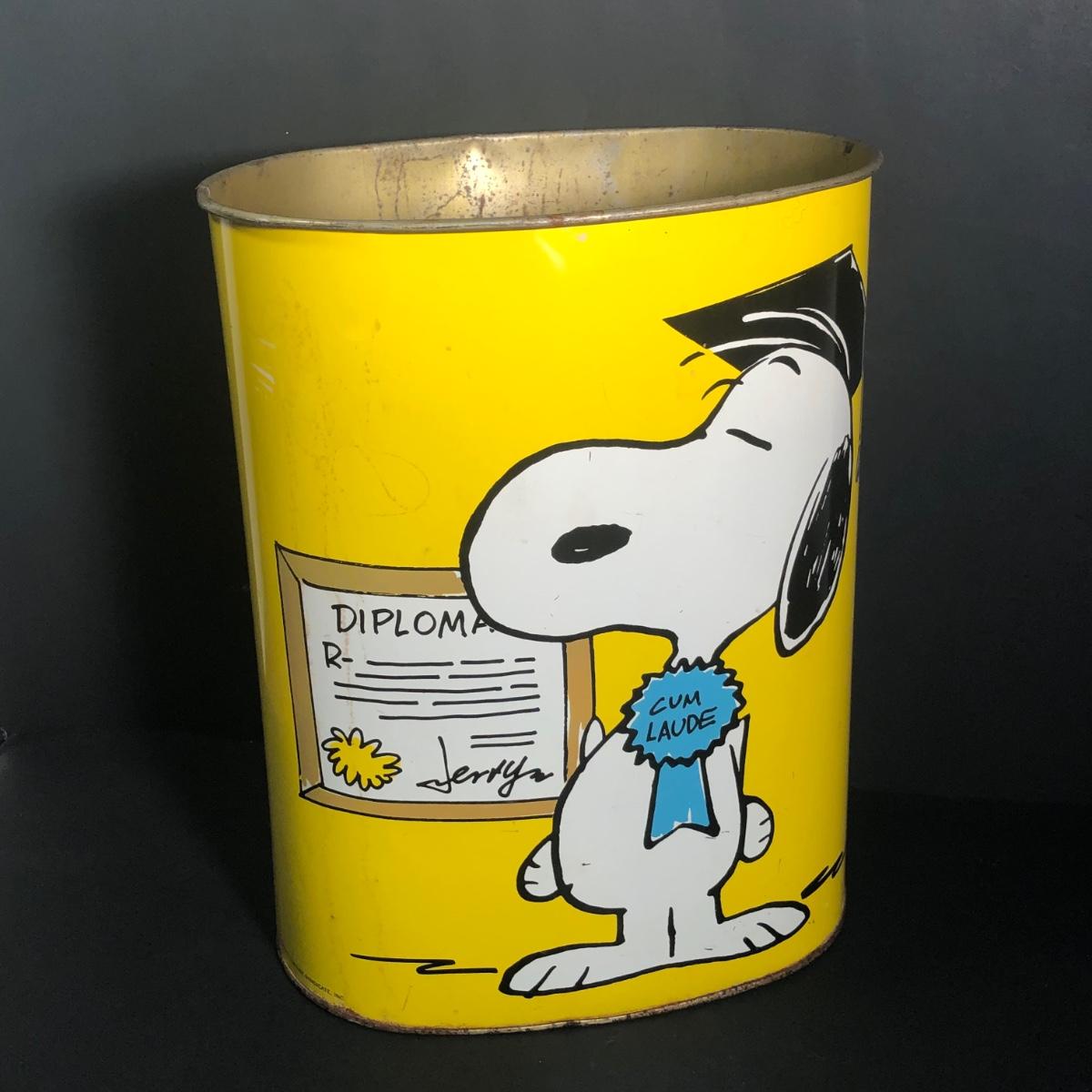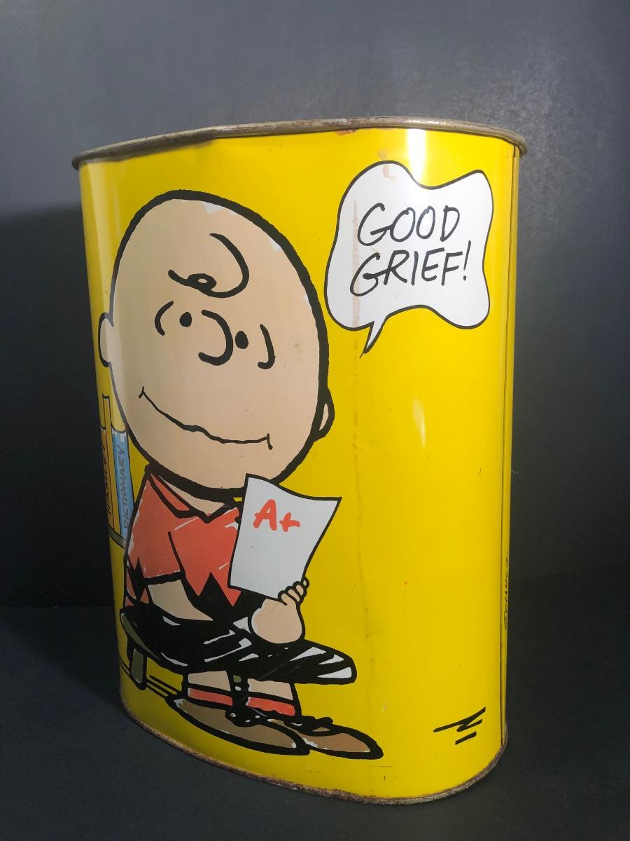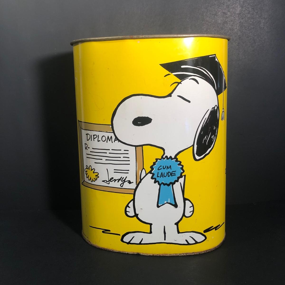 LOT 133B: Vintage 1969 Peanuts Trash Can - Snoopy & Charlie Brown in School
