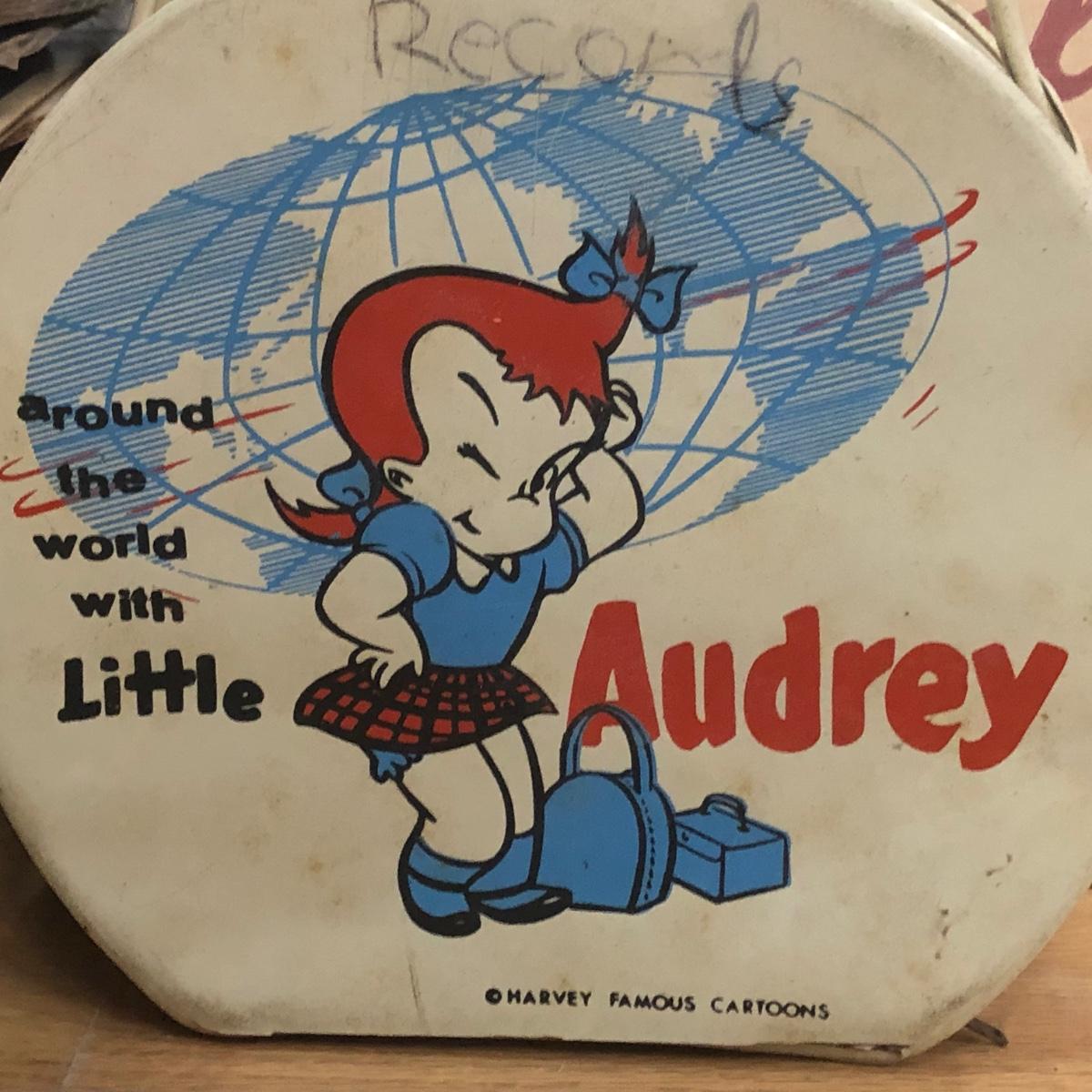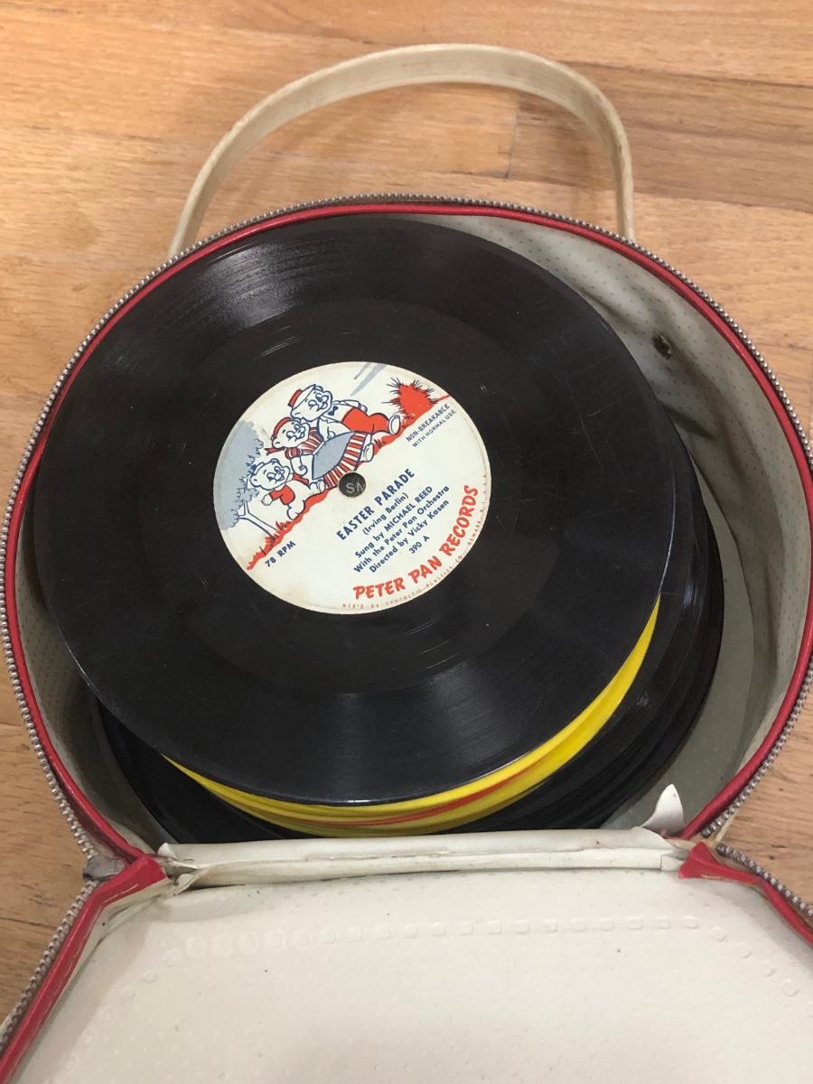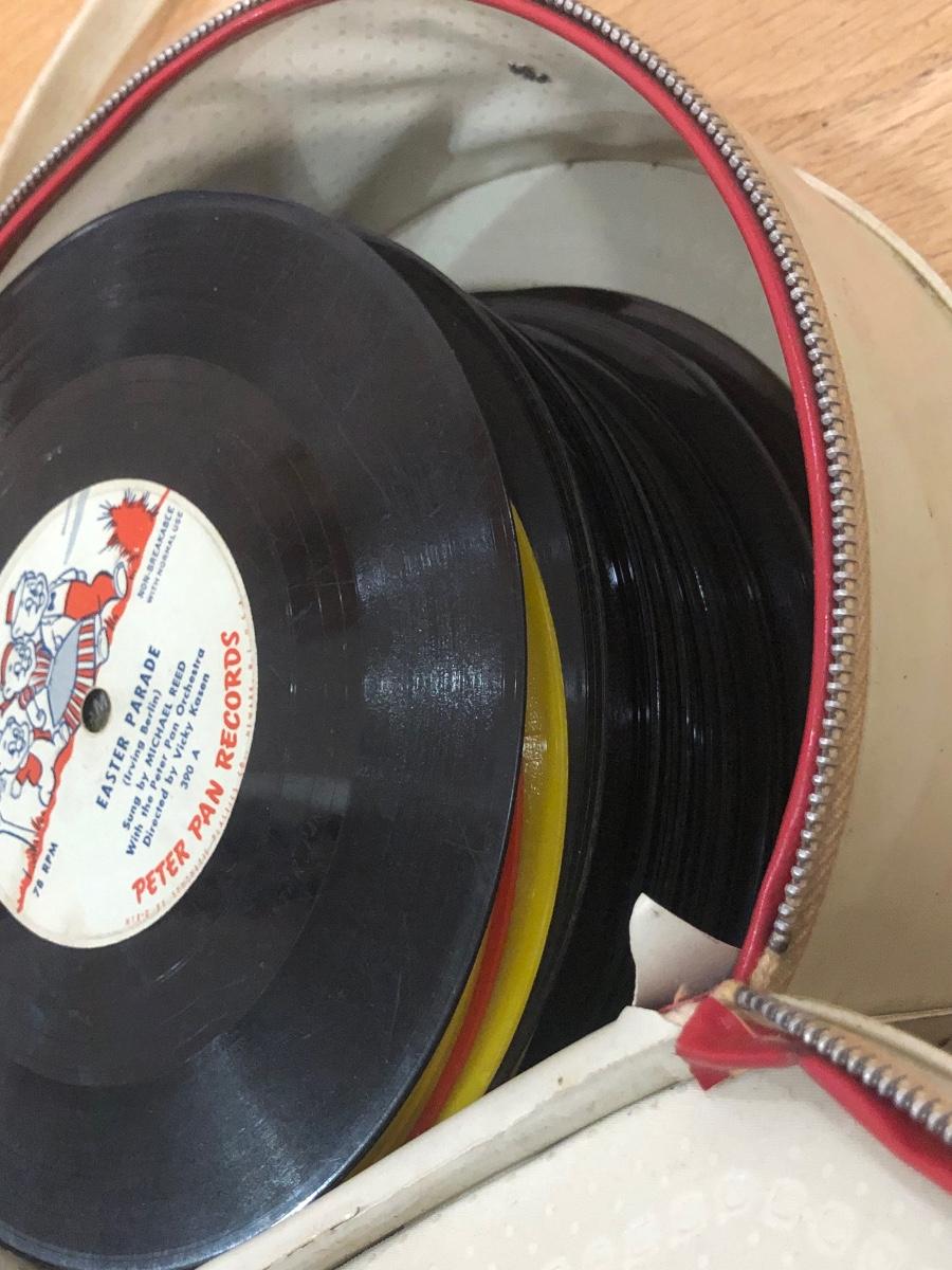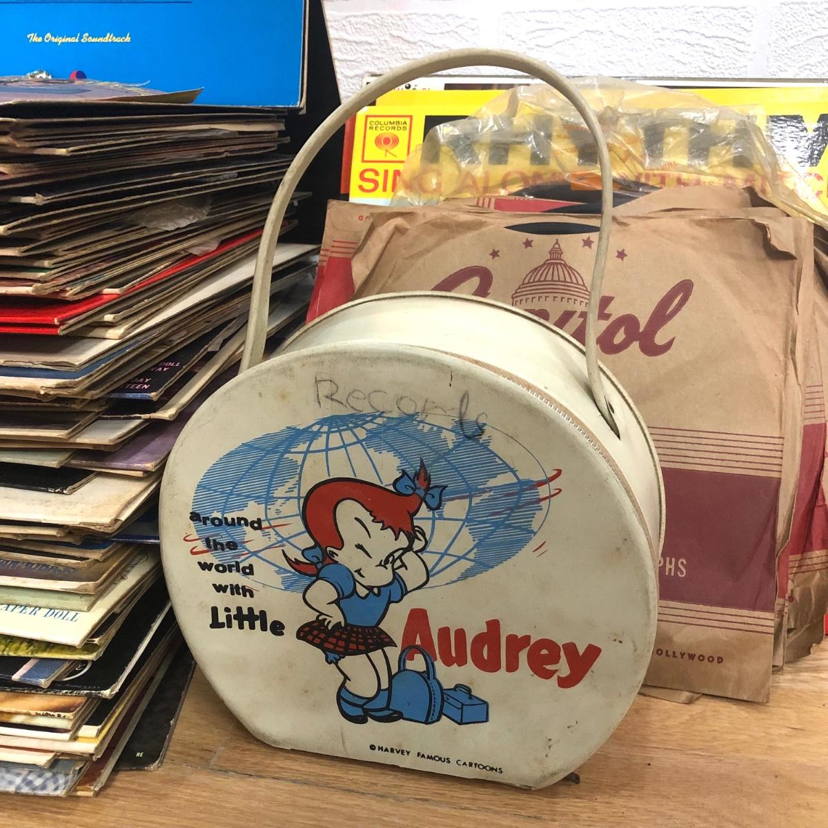 LOT 135B: Collection of Records & 45s w/ Vintage Harvey Comics Around the World with Little Audrey Carrying Case