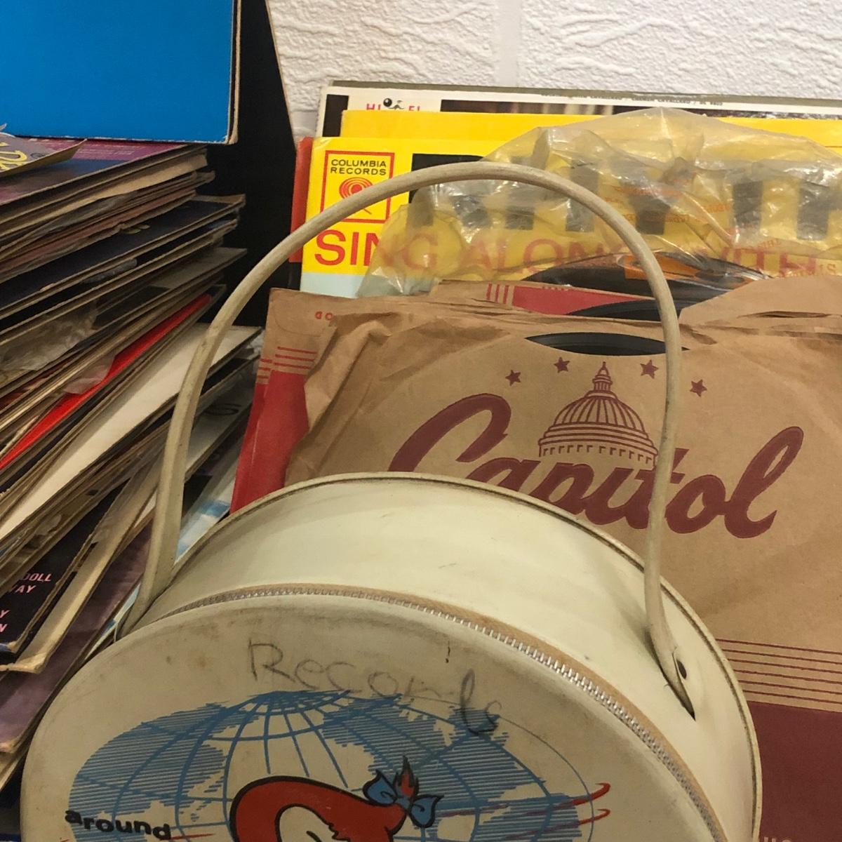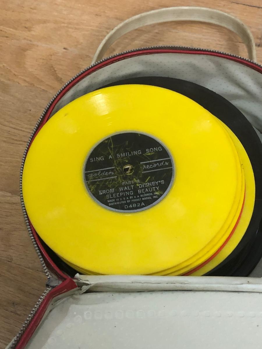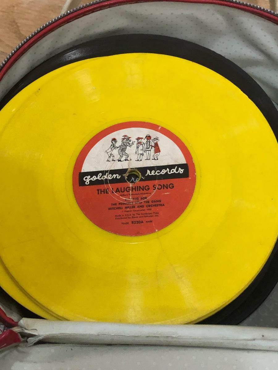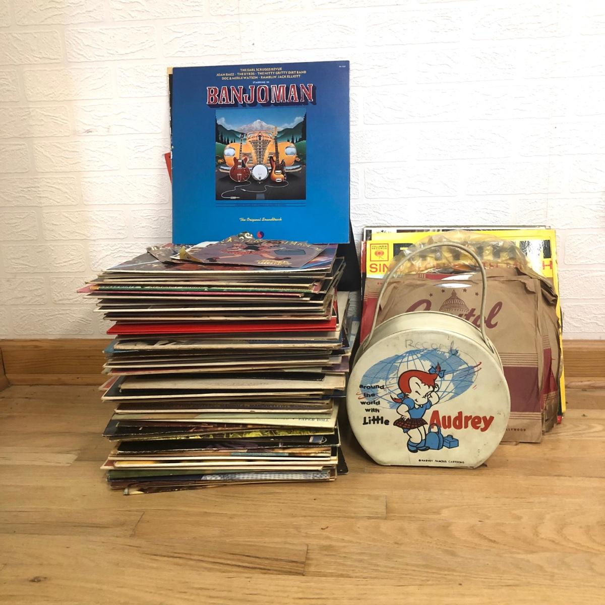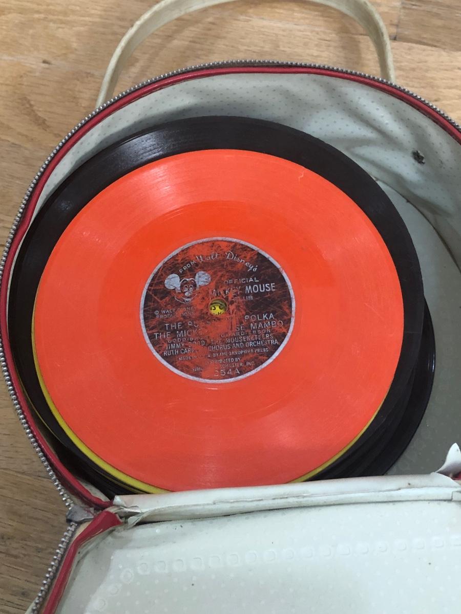 LOT 135B: Collection of Records & 45s w/ Vintage Harvey Comics Around the World with Little Audrey Carrying Case