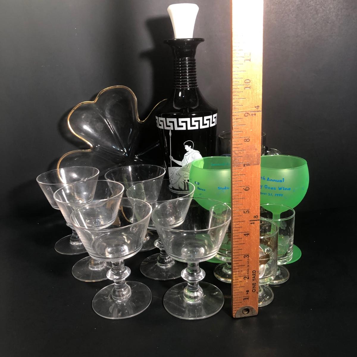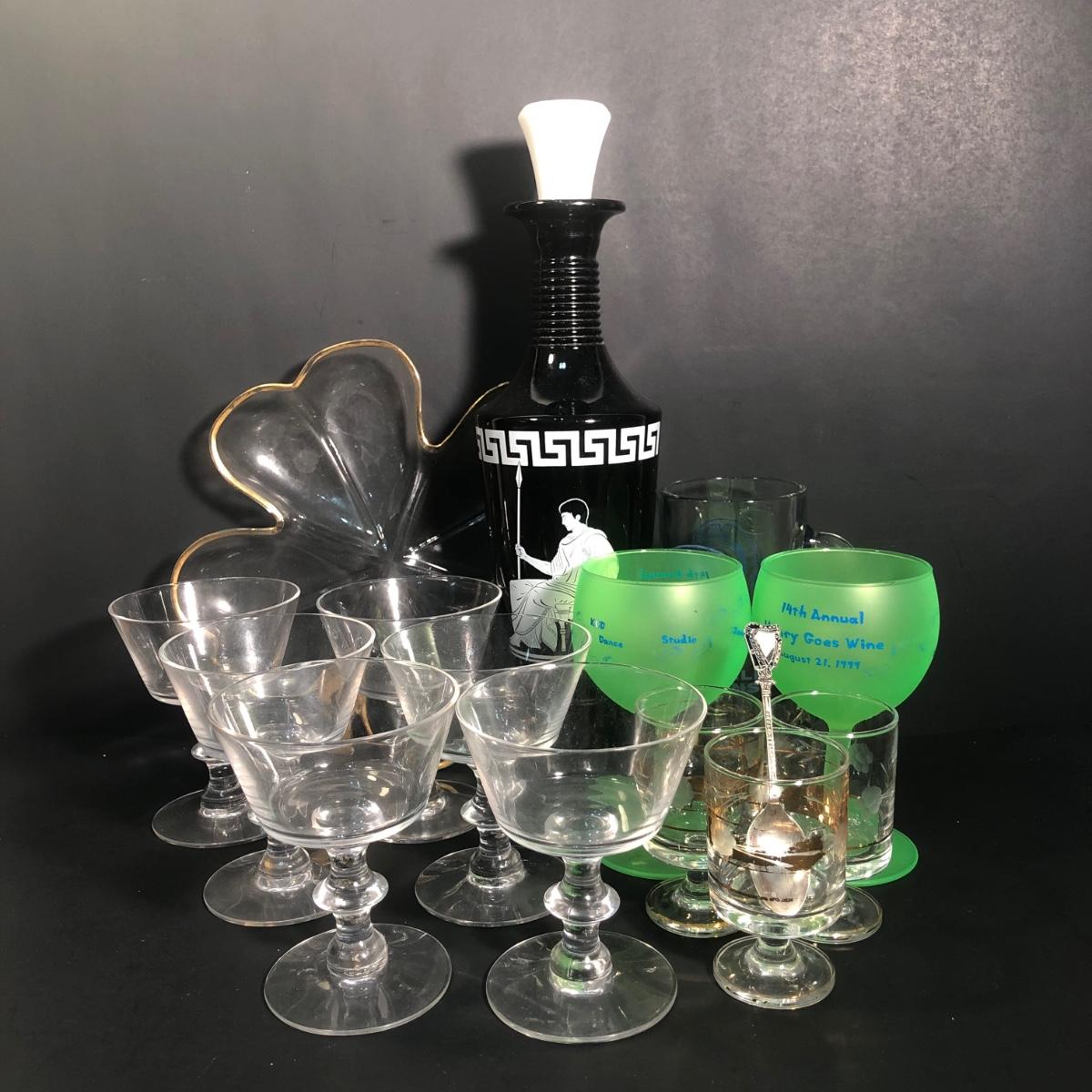LOT 142D: Vintage Bar Collection - Grecian Jim Beam Bottle, Guinness Spoon & Glasses