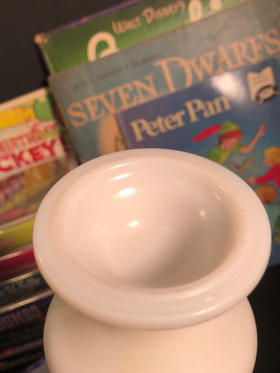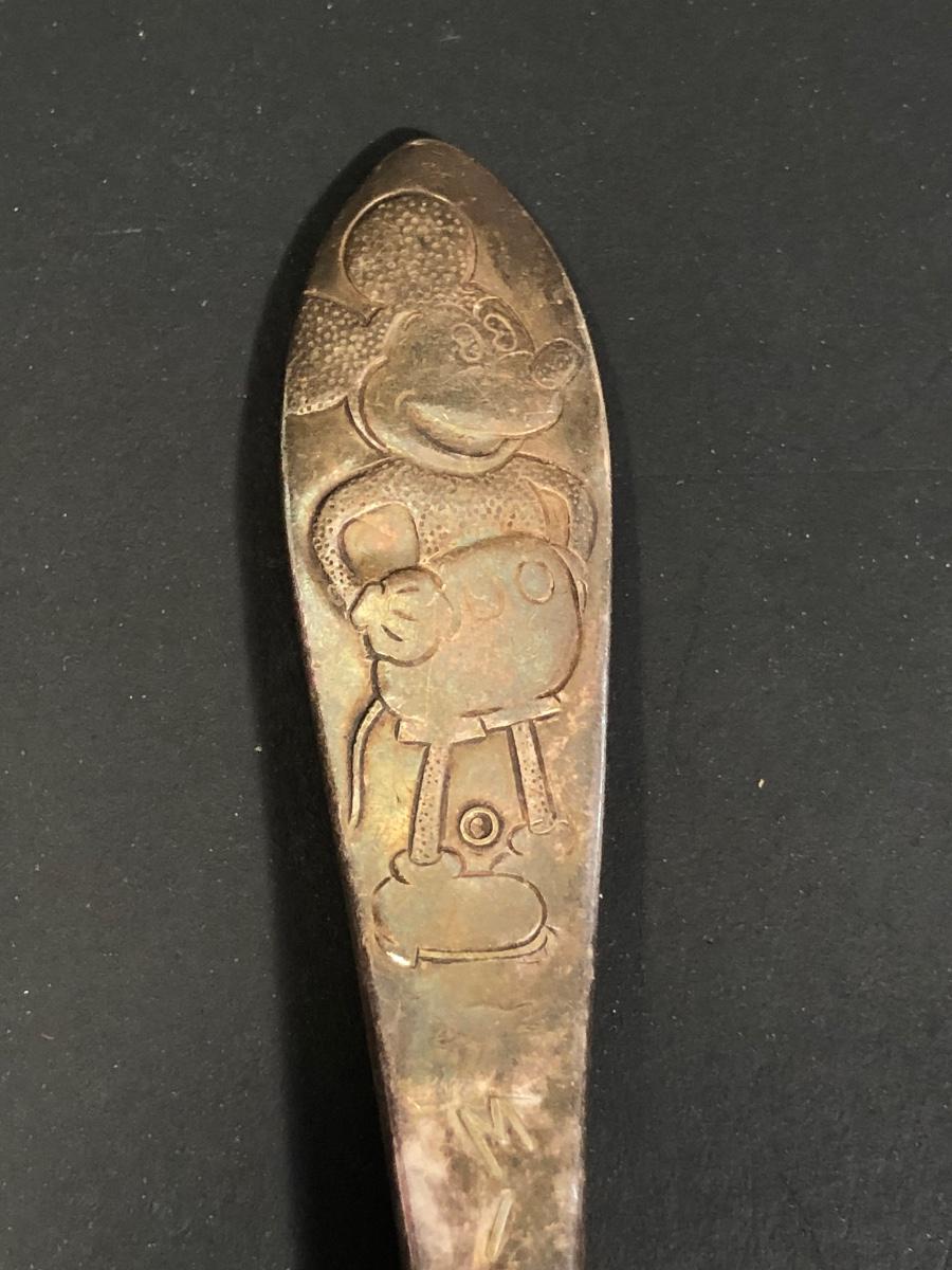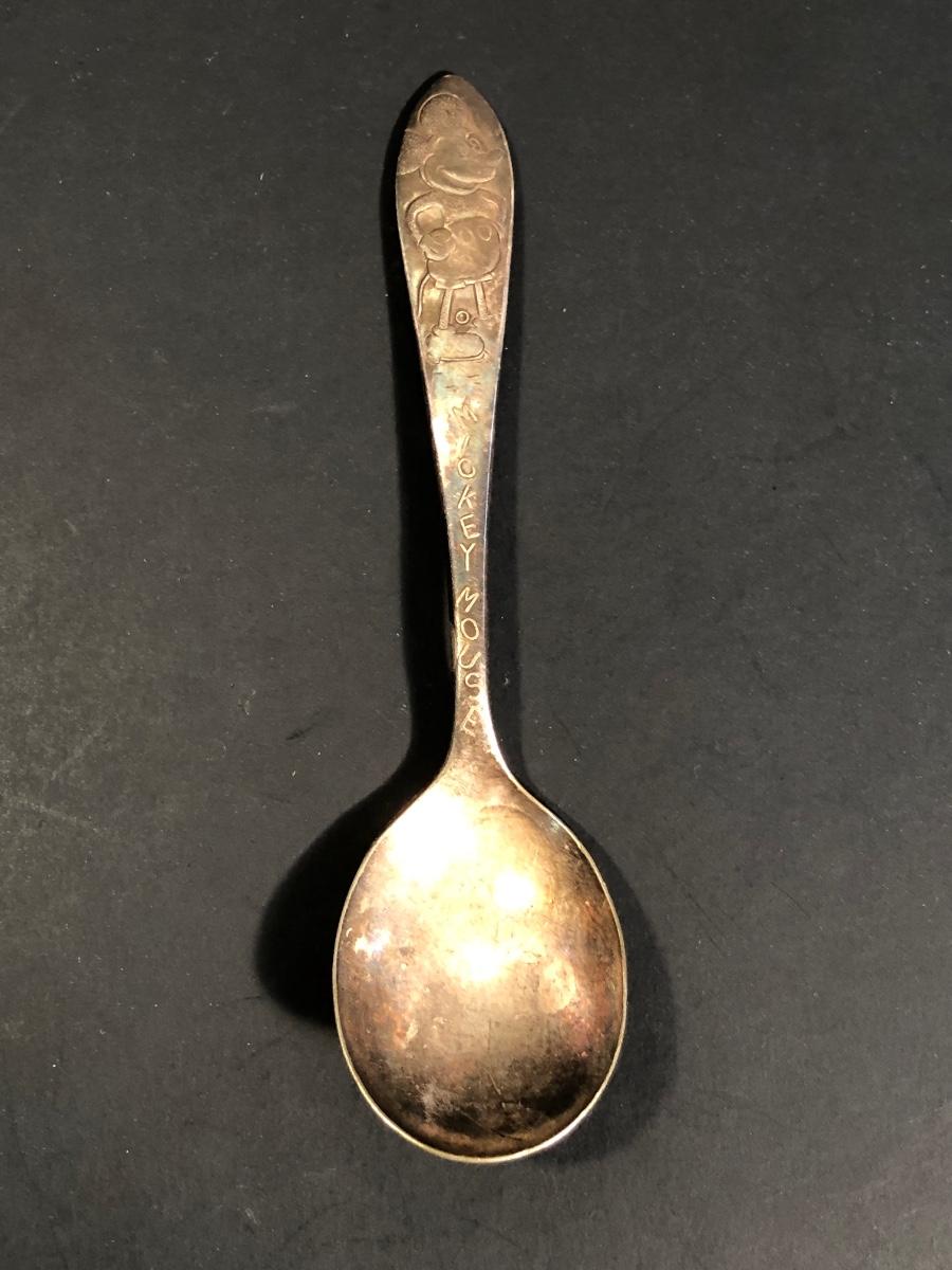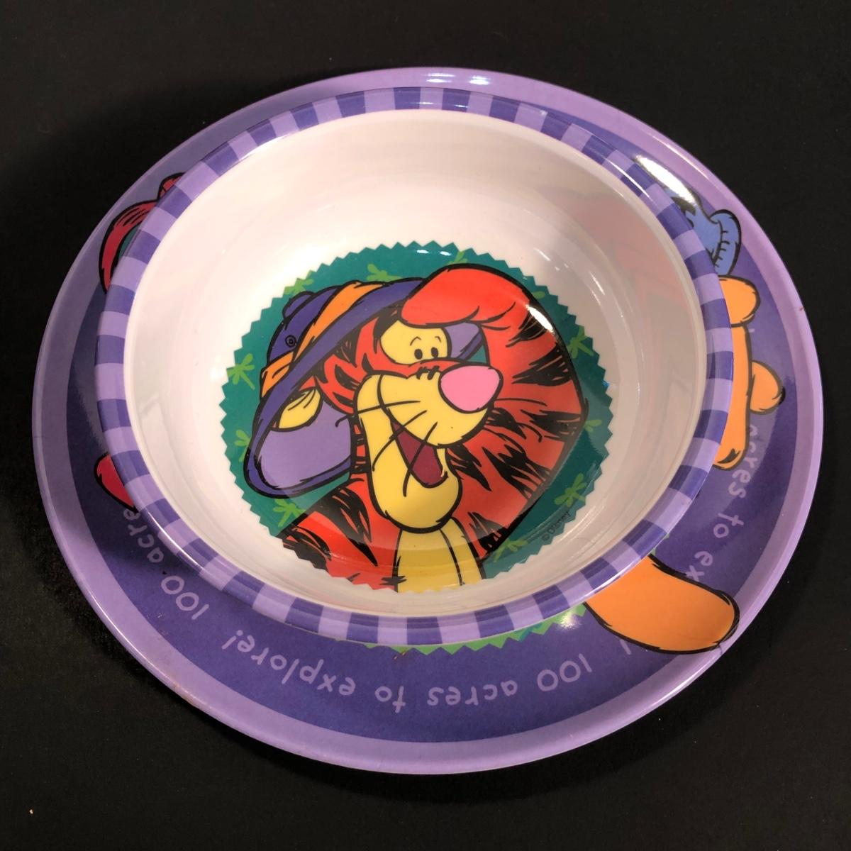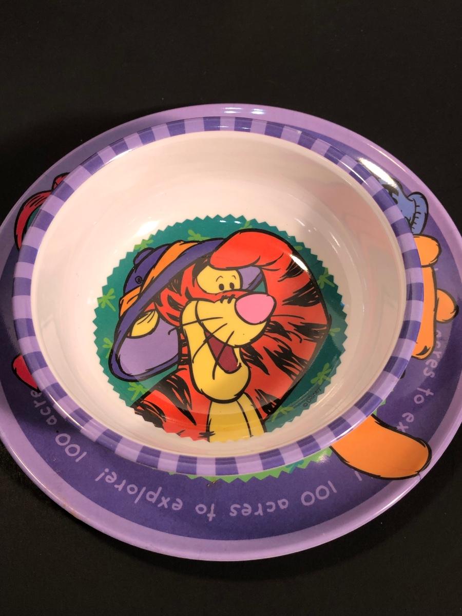 LOT 152B: Vintage Disney - Wm Rogers Mickey Mouse Spoon, Books, VHS, Winnie the Pooh Bowl, Tigger Plate, Birthday Placemat, Vinyl Figures & Milk Glass WDW "Helen" Mug
