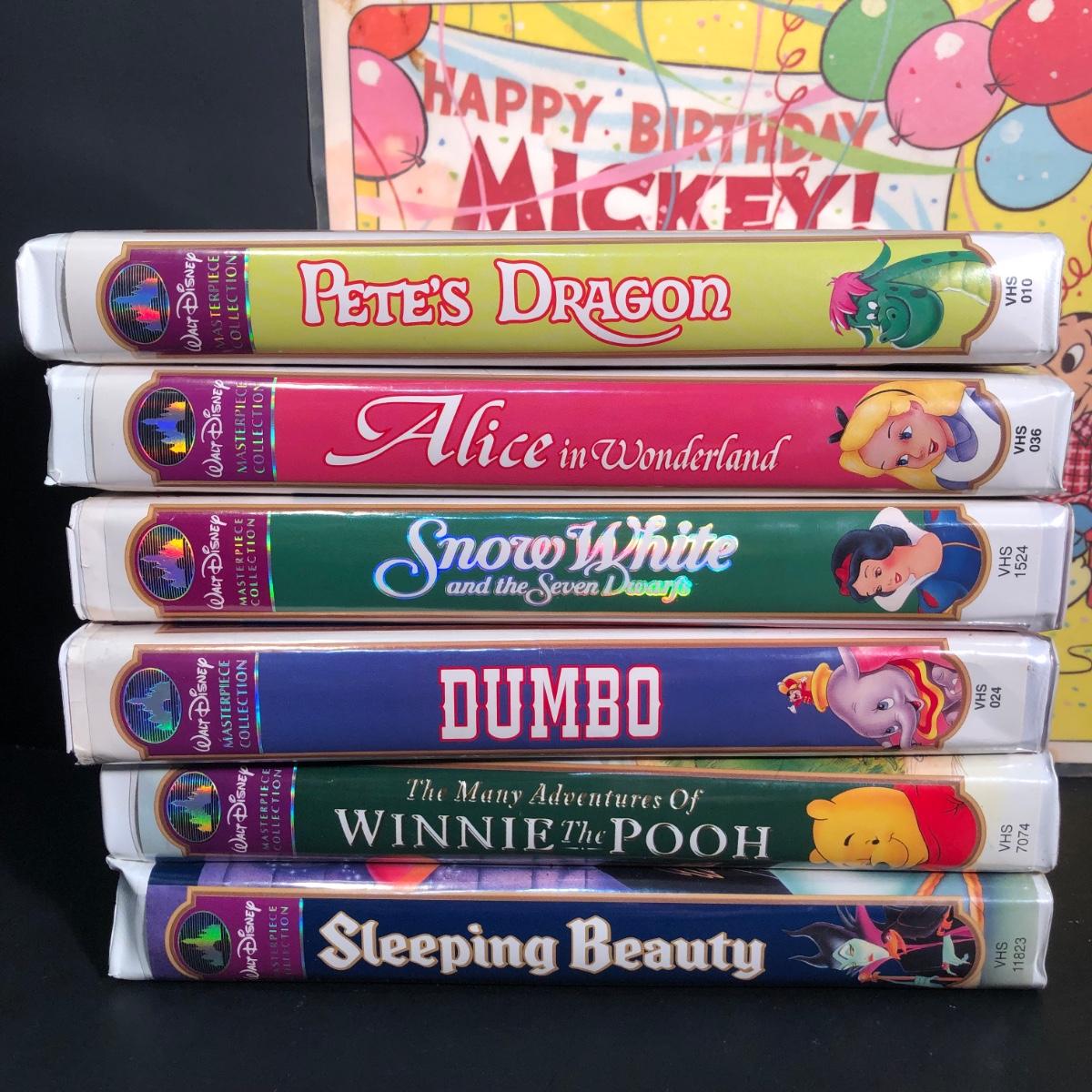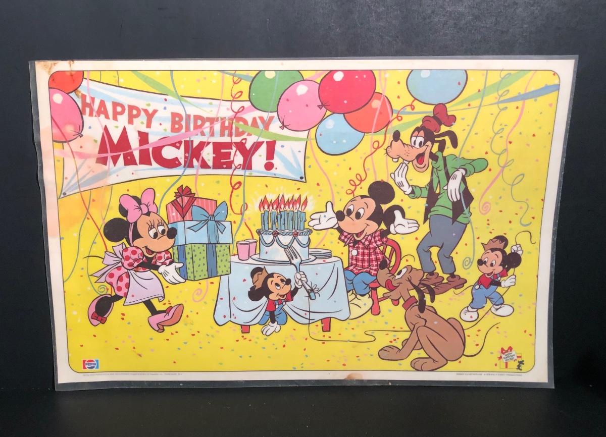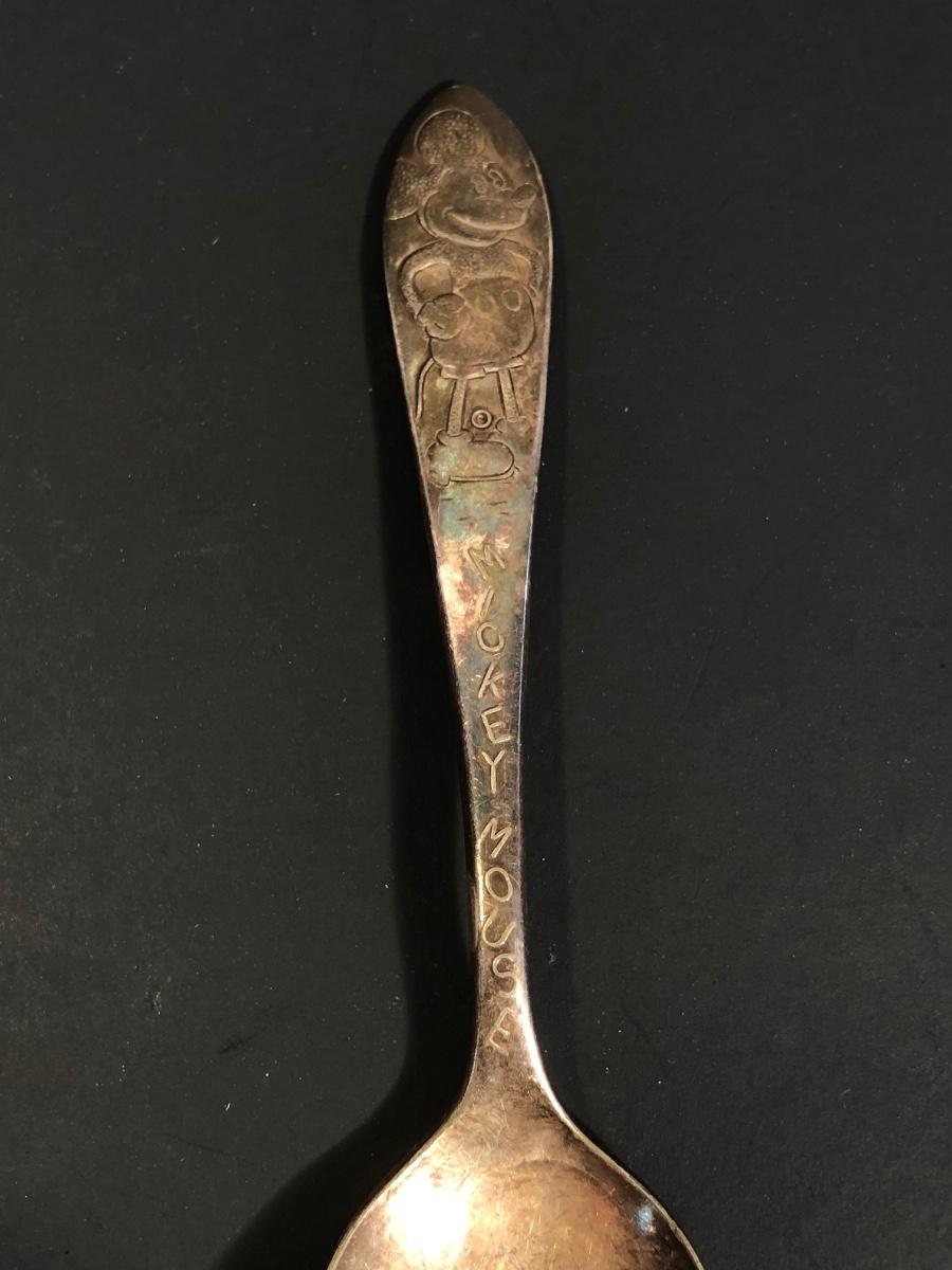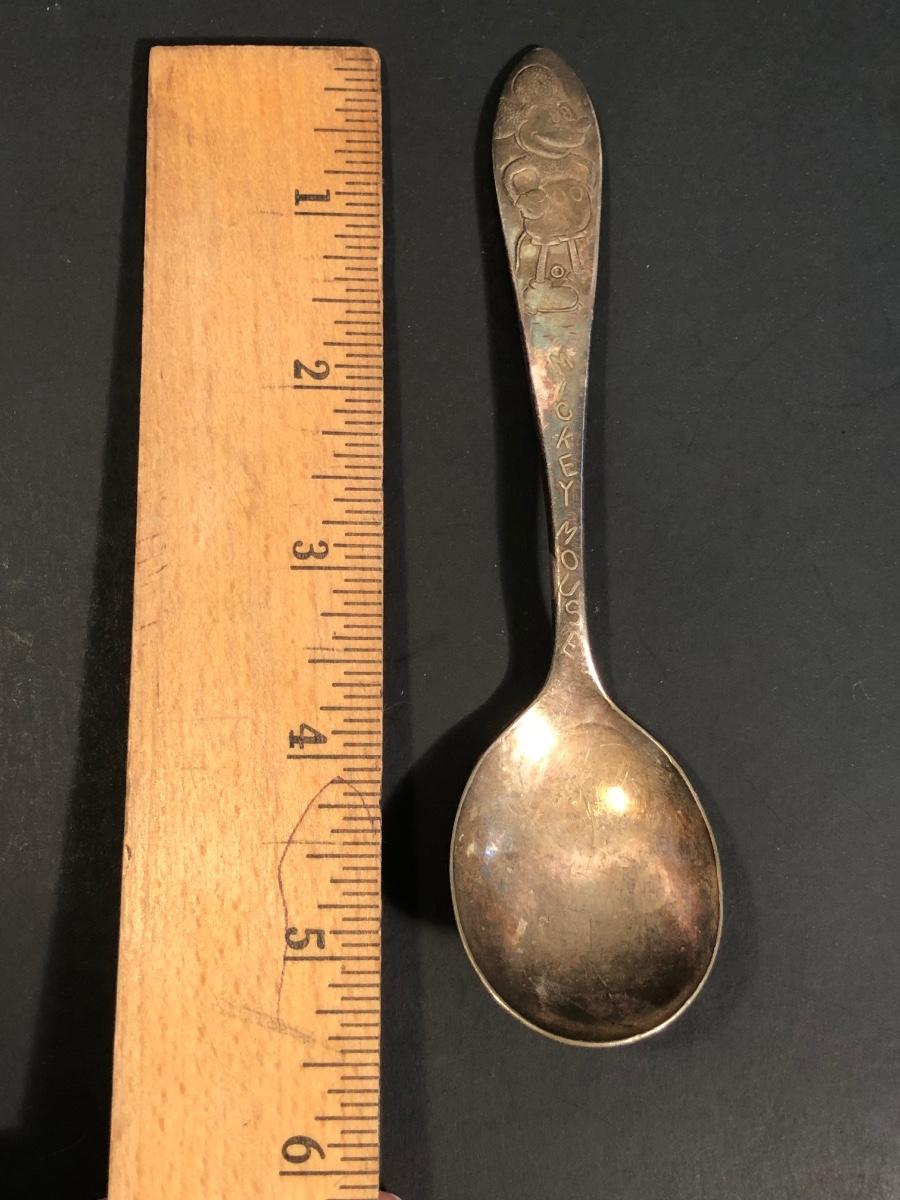 LOT 152B: Vintage Disney - Wm Rogers Mickey Mouse Spoon, Books, VHS, Winnie the Pooh Bowl, Tigger Plate, Birthday Placemat, Vinyl Figures & Milk Glass WDW "Helen" Mug