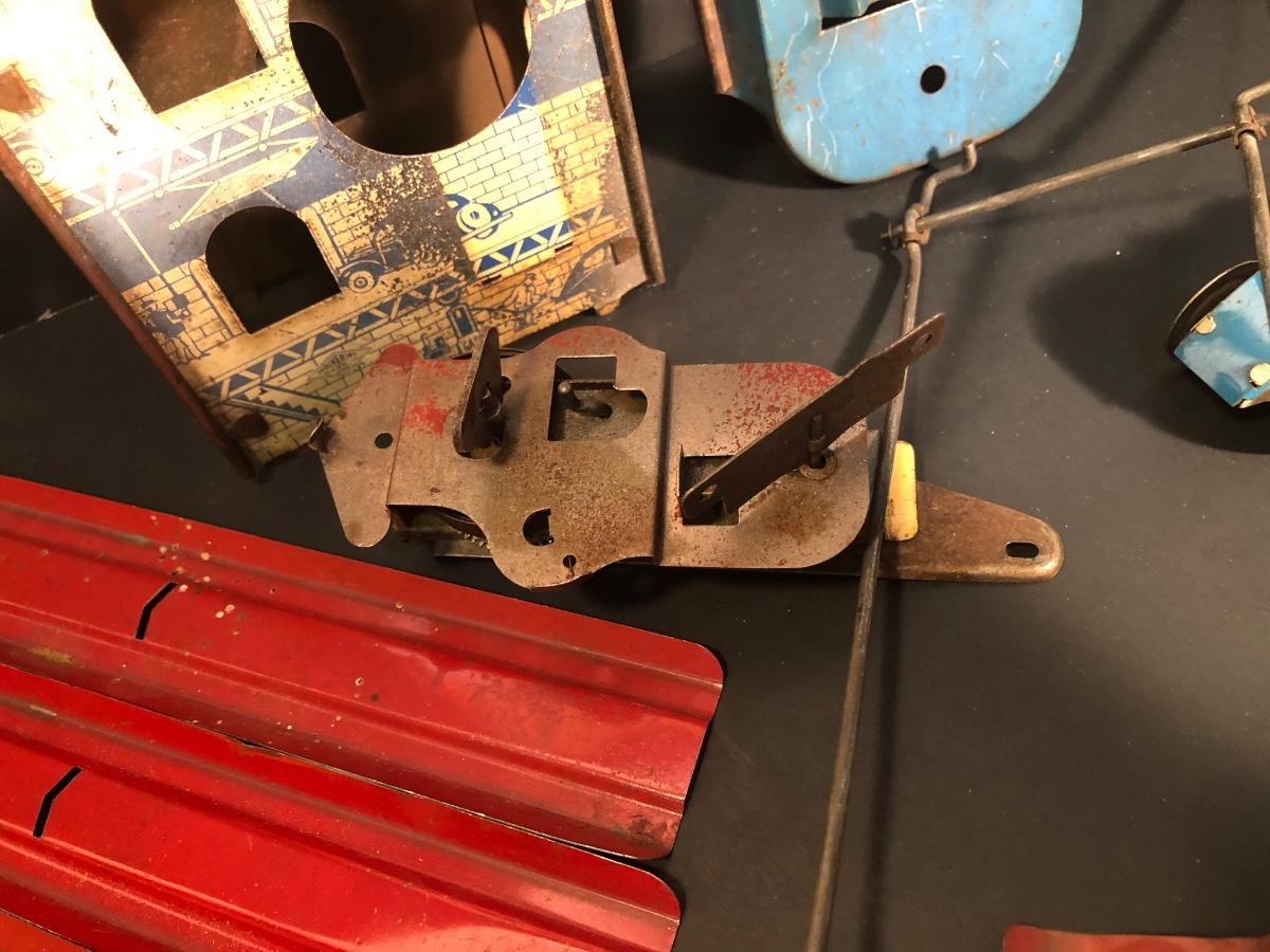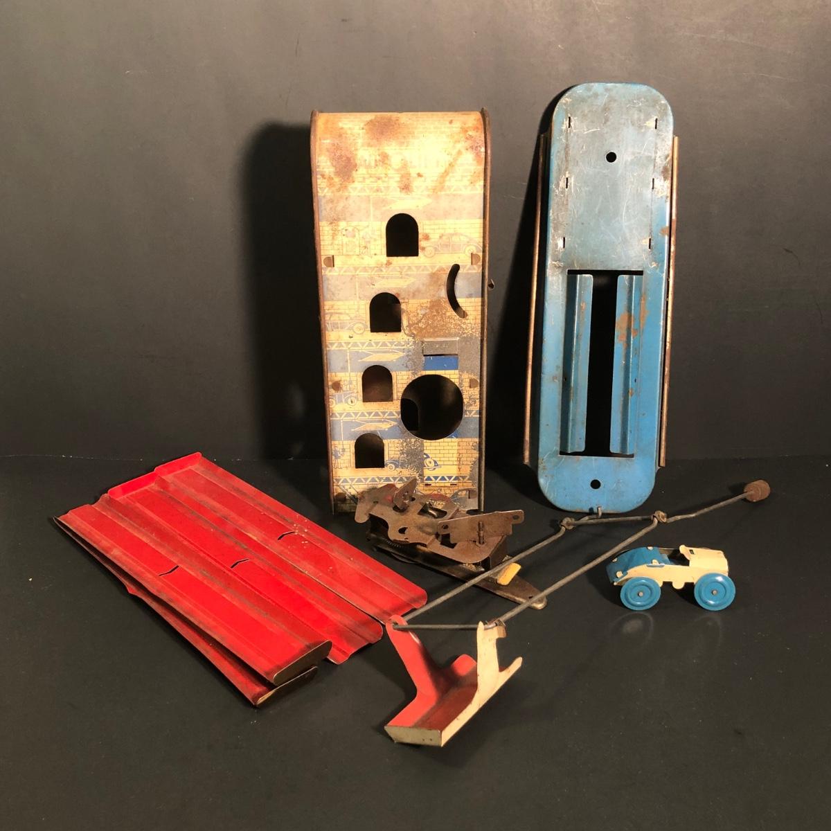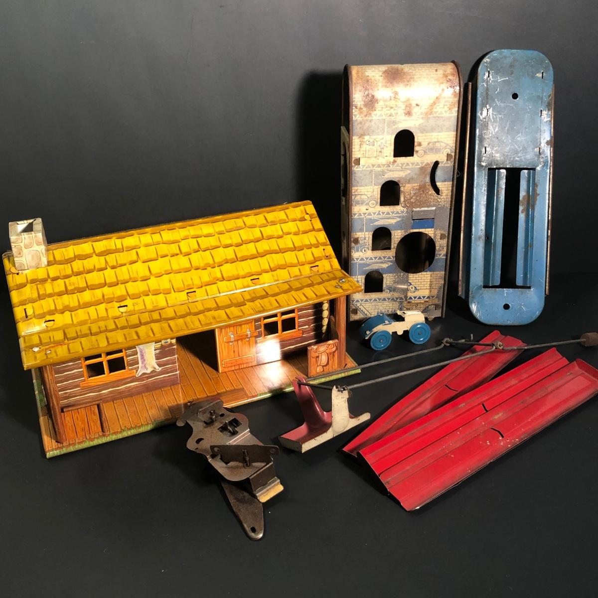 LOT 156B: Vintage Tin Toys - 1930s/40s Wolverine Autolift Pieces & 1950s Mar Toys Bar-M-Ranch