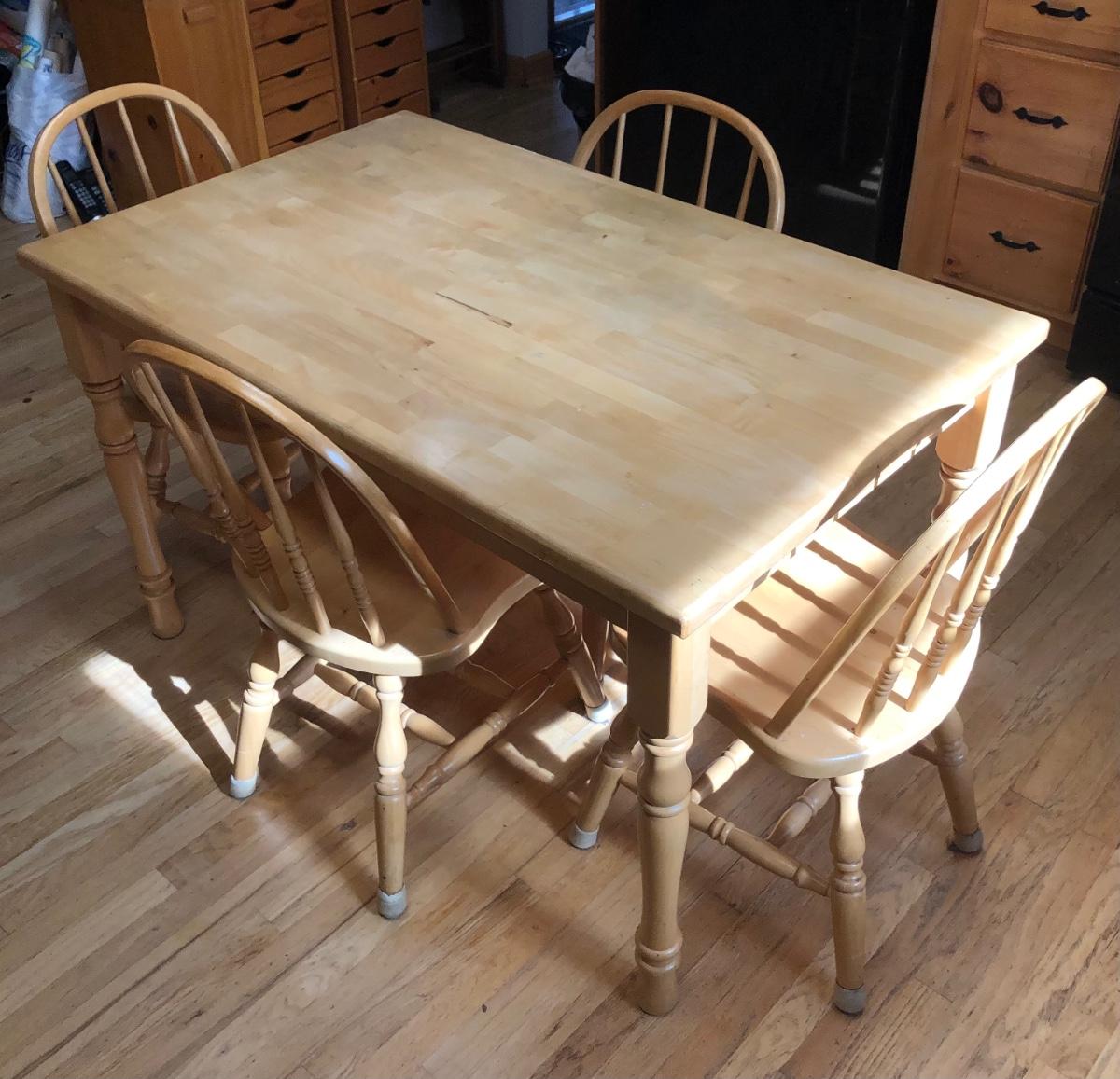 LOT 158K: Light Wood Kitchen / Dining Table w/ 4 Chairs