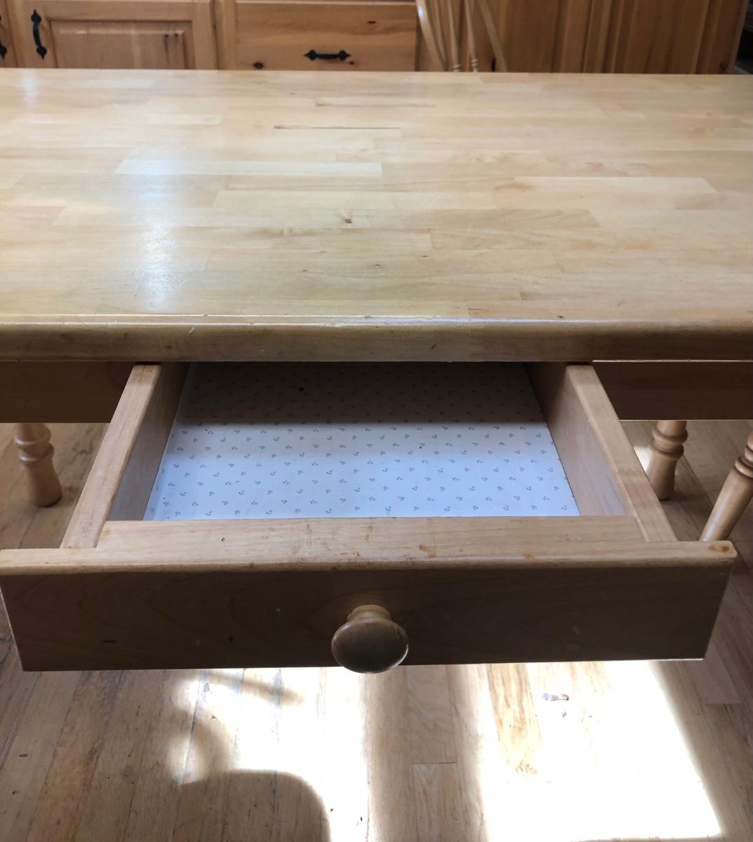 Table measures 48W x 30D x 29H and has one drawer on the side. Chairs measure 17W x 17D x 33H.
