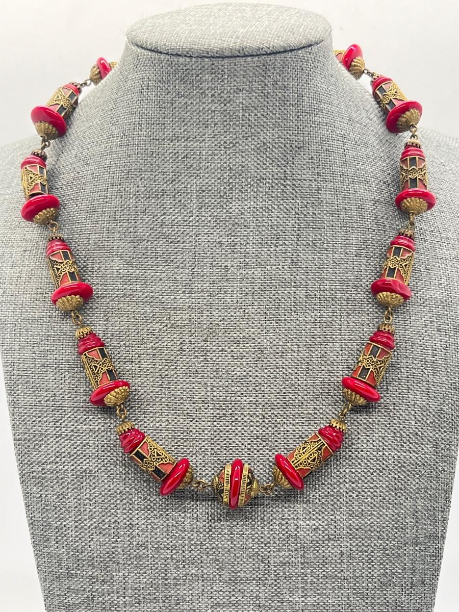 LOT 241J: Neiger Brothers Glass/Brass/Enamel Strand of Beads circa 1930's-1940's