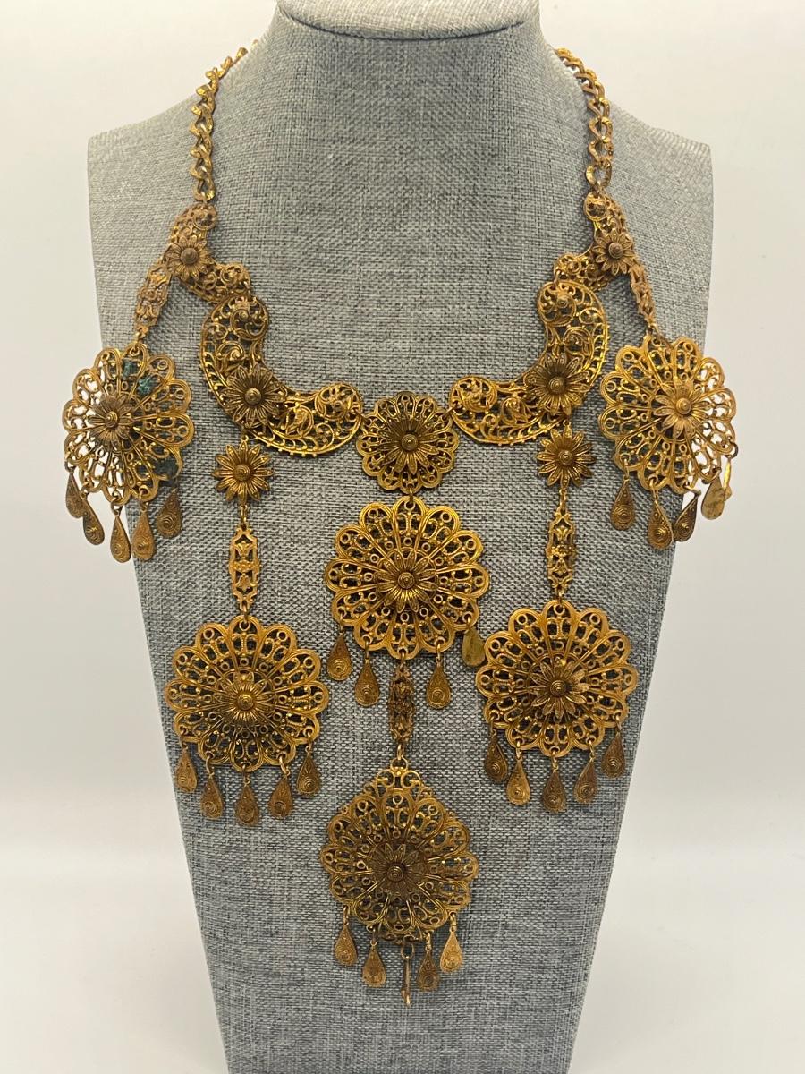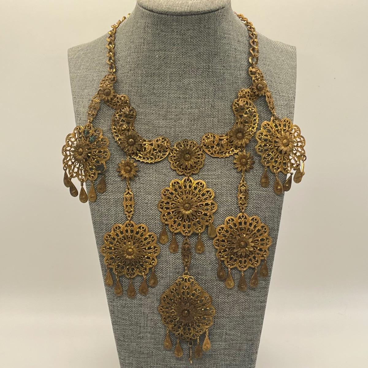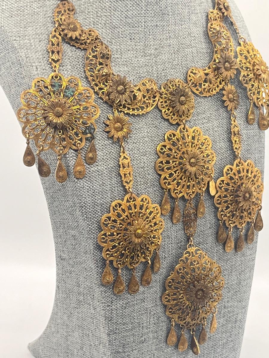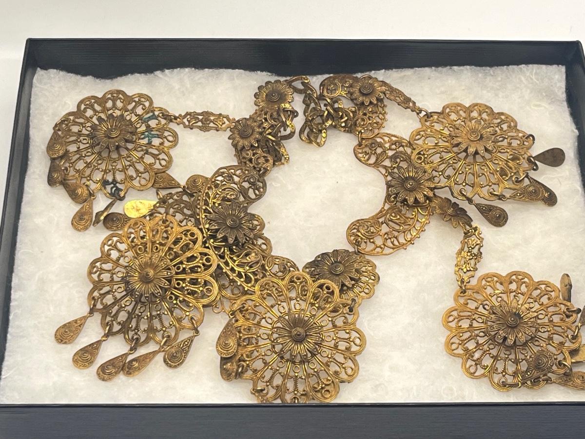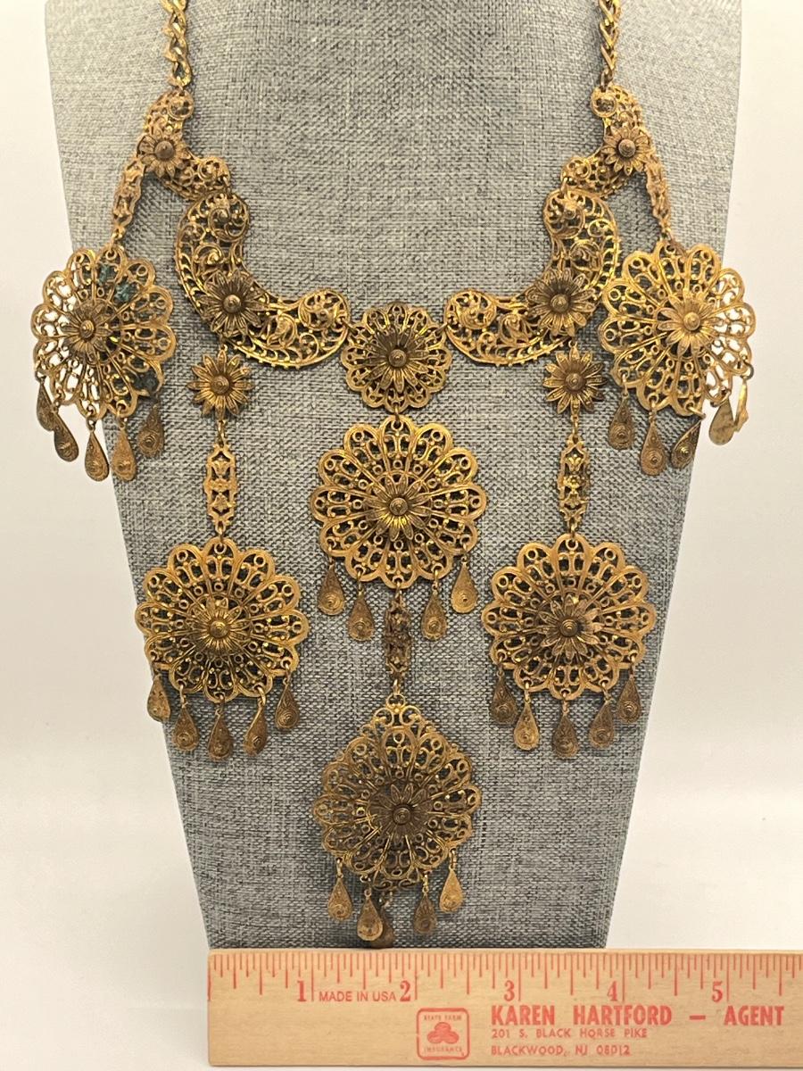 LOT 245J: Antique Victoria Era Filigree Brass Ornate Statement Necklace