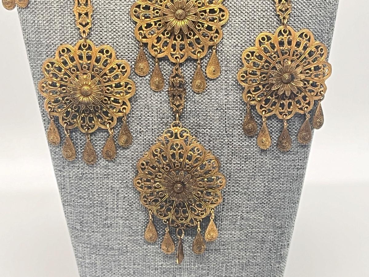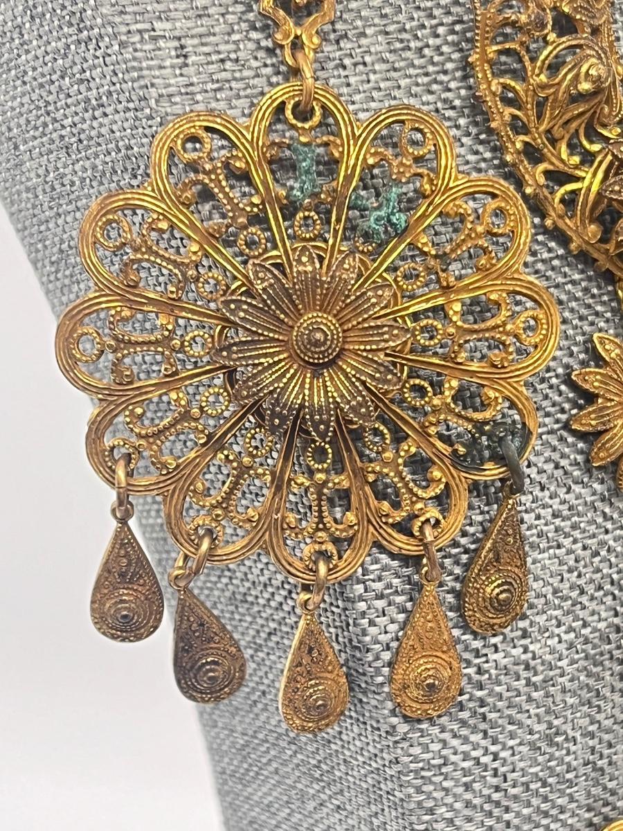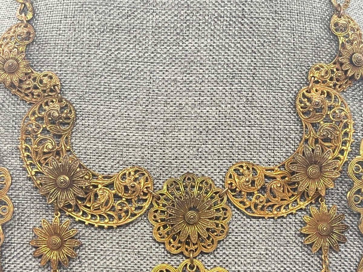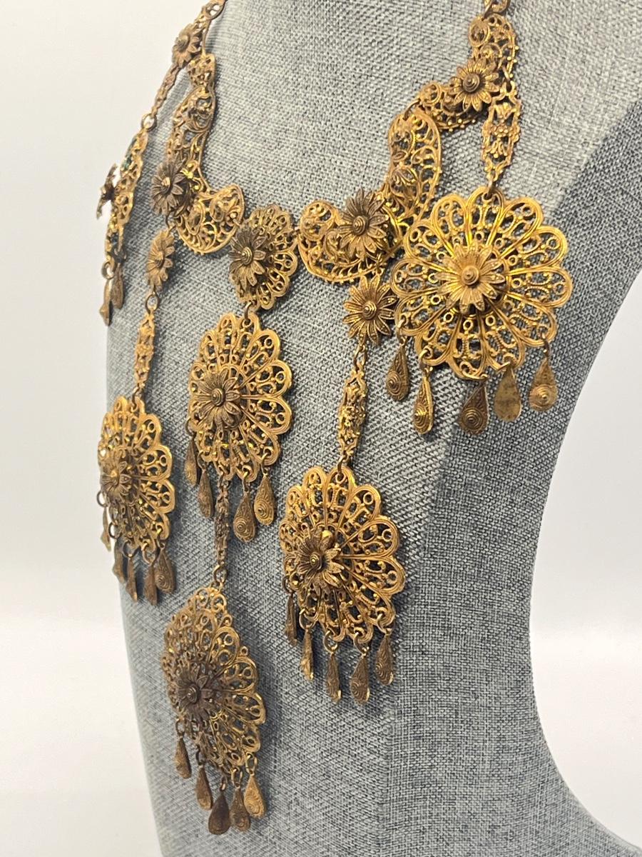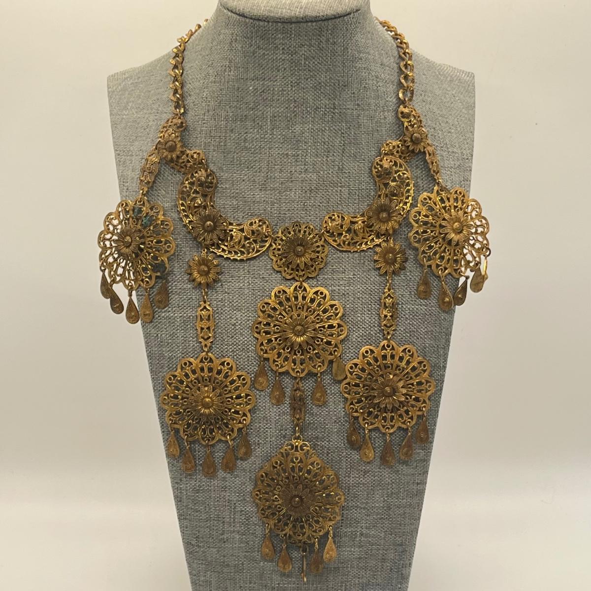 LOT 245J: Antique Victoria Era Filigree Brass Ornate Statement Necklace