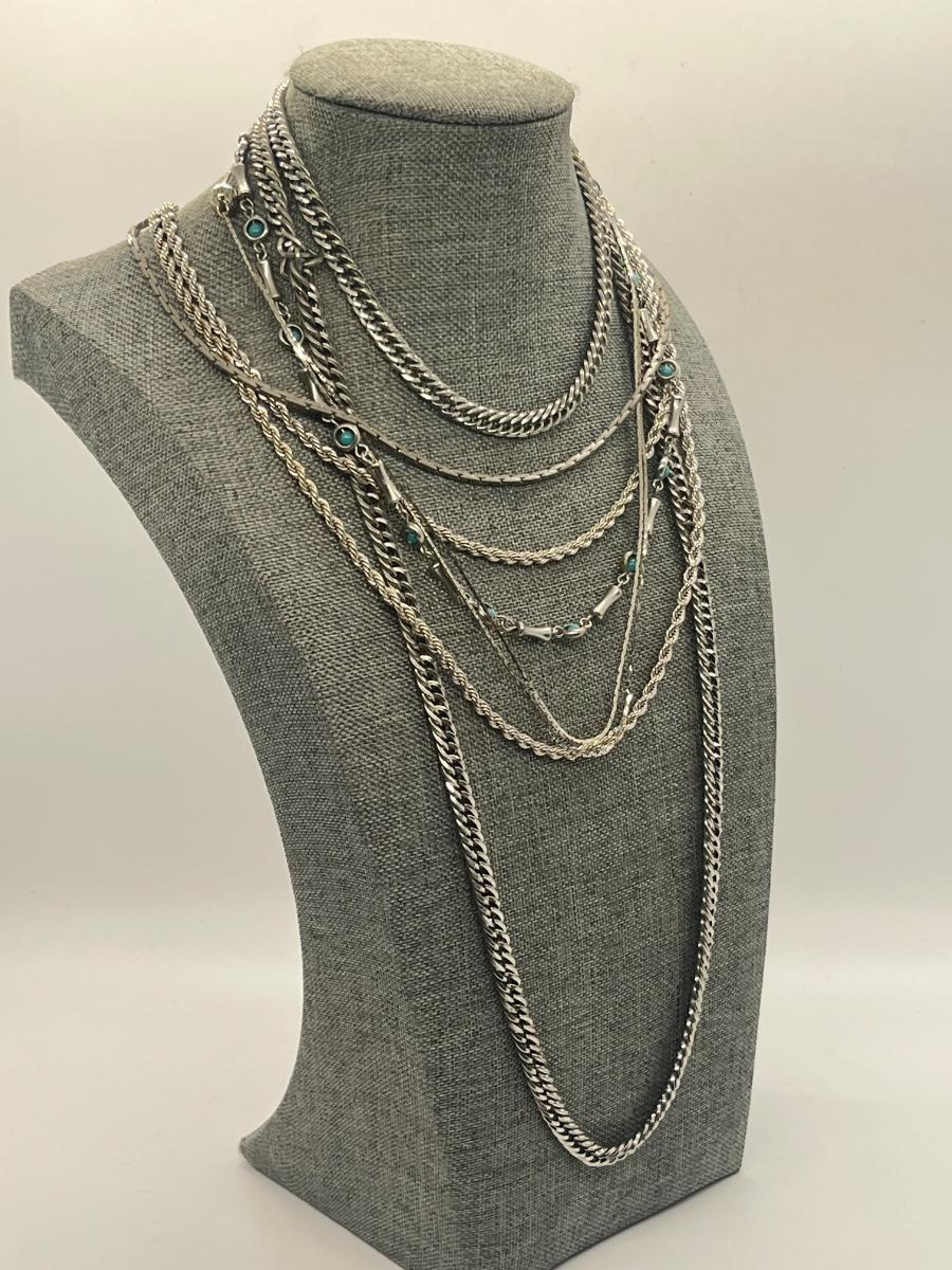 One adjustable thin chain. One 35" Monet rope chain. One 36" heavy chain and 3 other 16" chains. Please see all pictures as they are the best representation of the items. The pictures show condition, measurements if taken, and what is included in the lot. Due to the large amount that we photograph and the time frame, we are not always able to take measurements. All items unless noted, are pre-owned and have been used. If you purchased furniture, you must bring help. We do not allow one person to carry large furniture out on their own. Bring help, tools and a truck for the safety of our client’s homes, and your personal safety. Any damages that result to the property including walls, and floors due to moving of the furniture will be charged to the buyer. Company policy. Thank you.