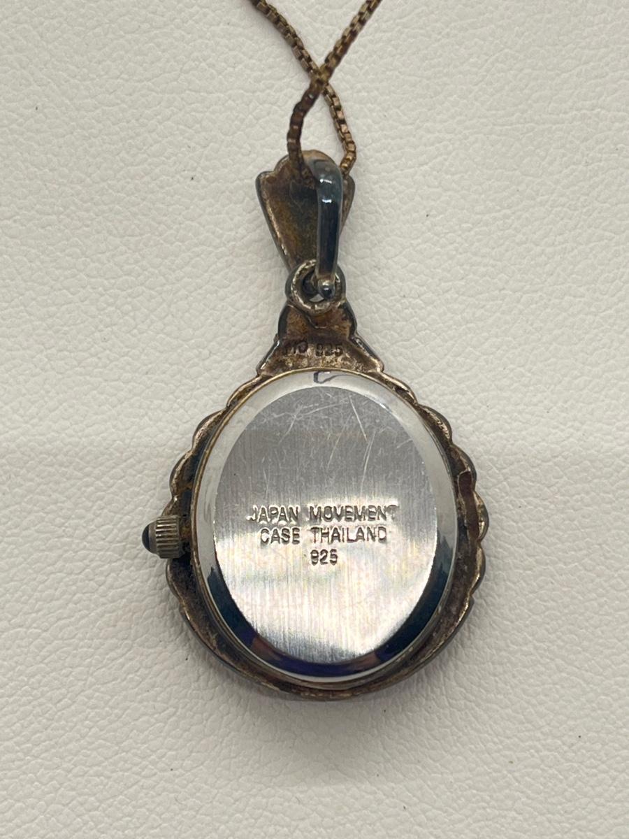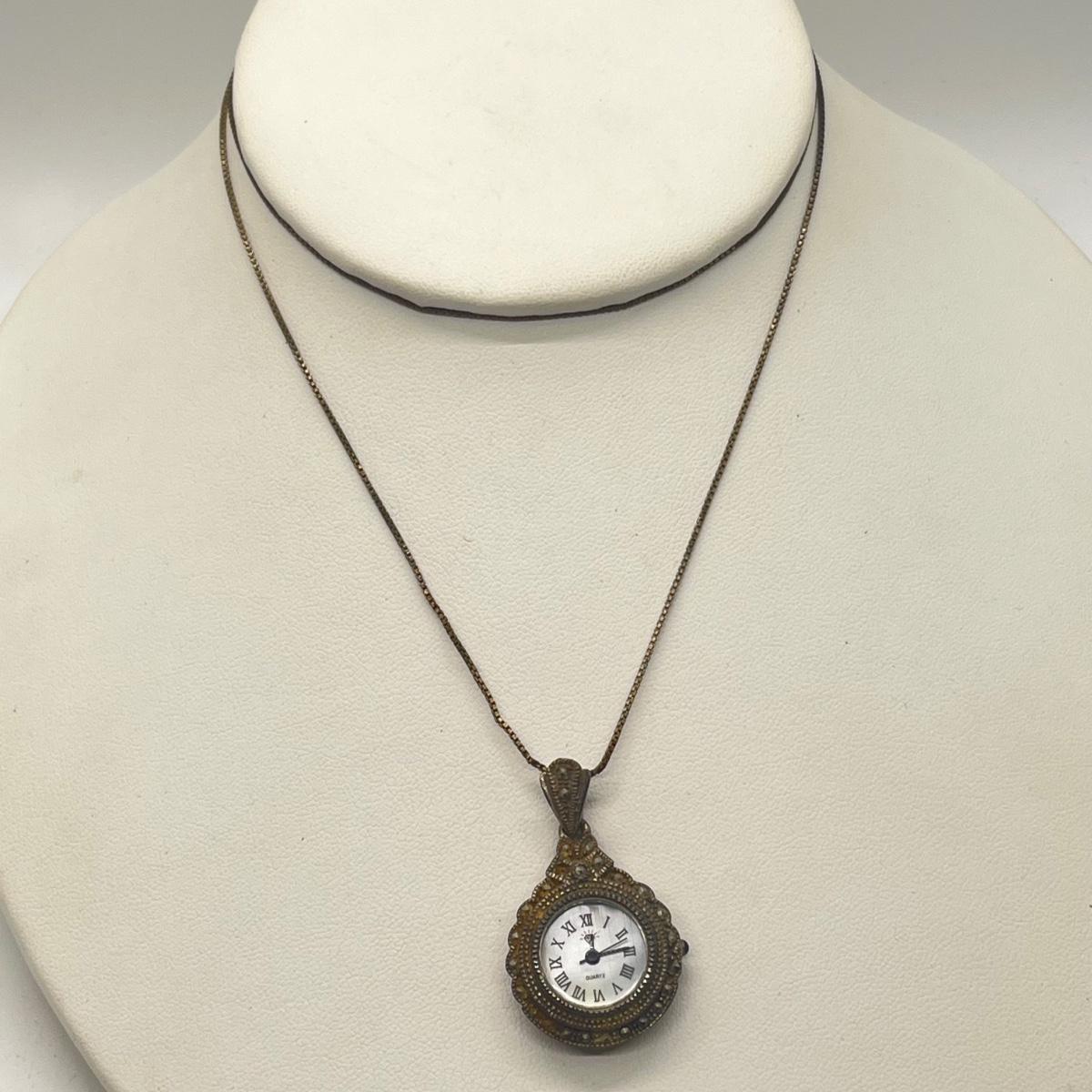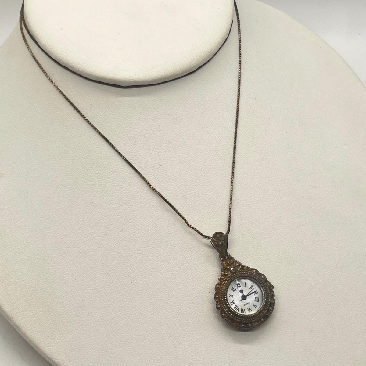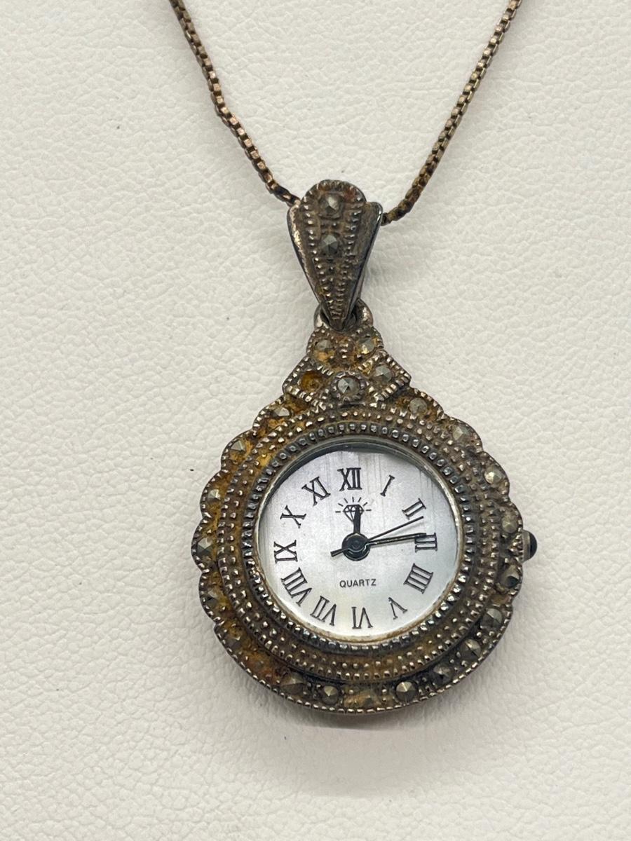 LOT 254J: Marcasite Watch Pendant Necklace-26" Chain-Marked 925