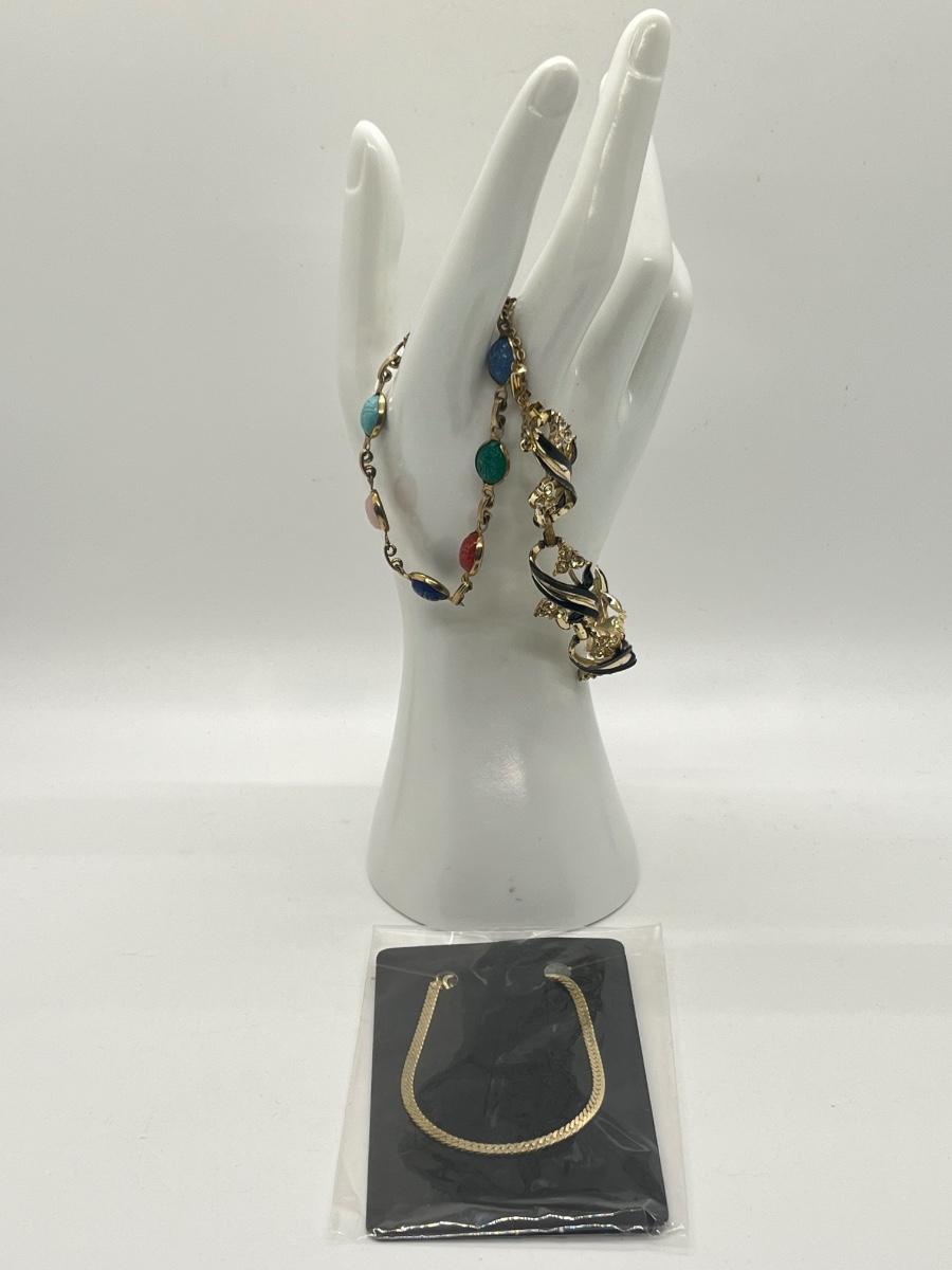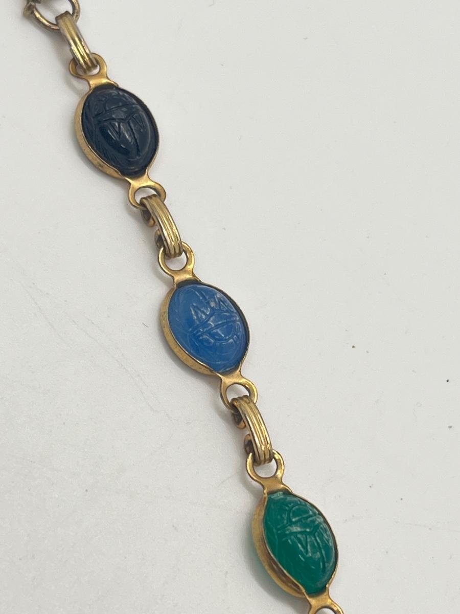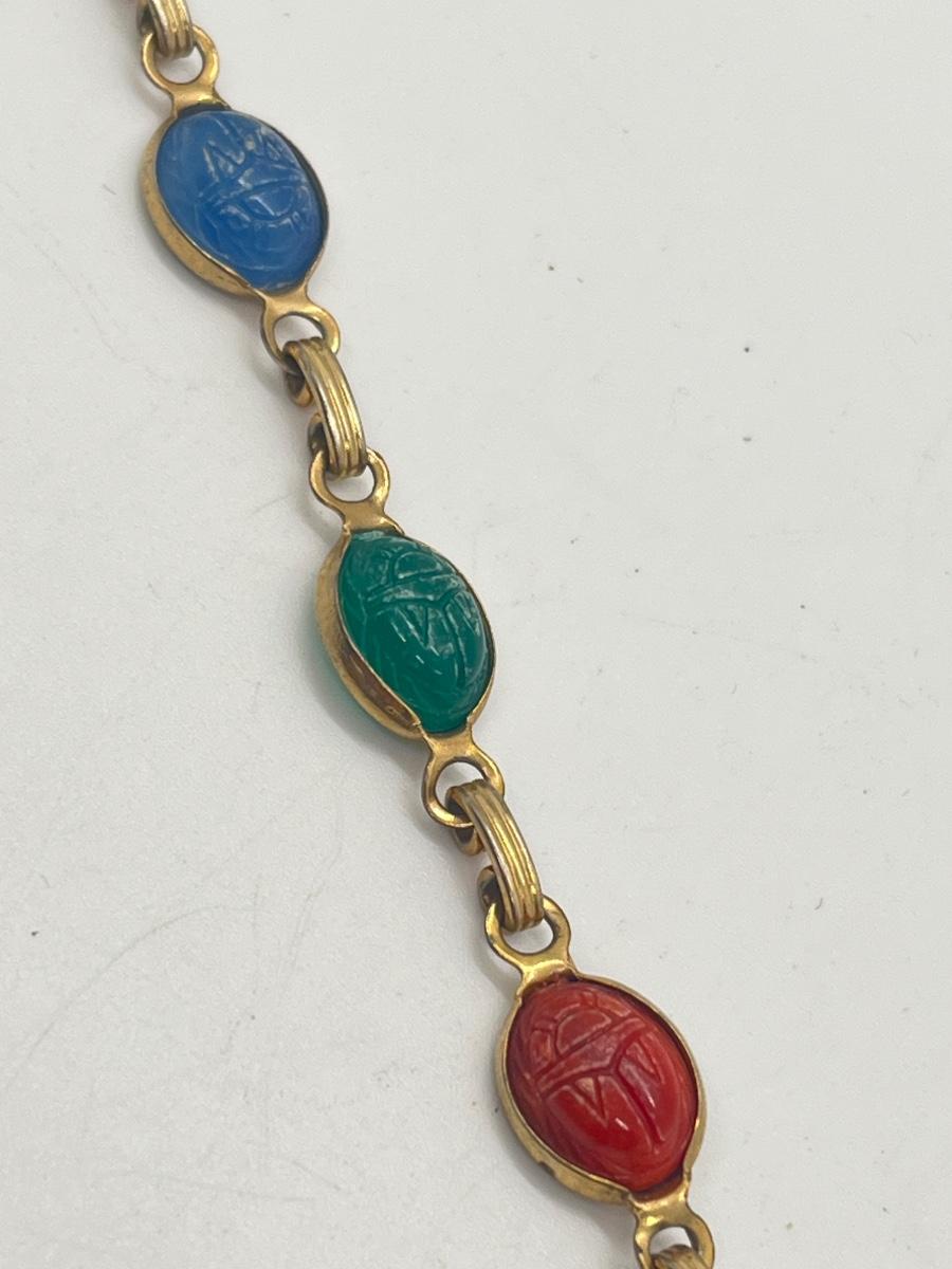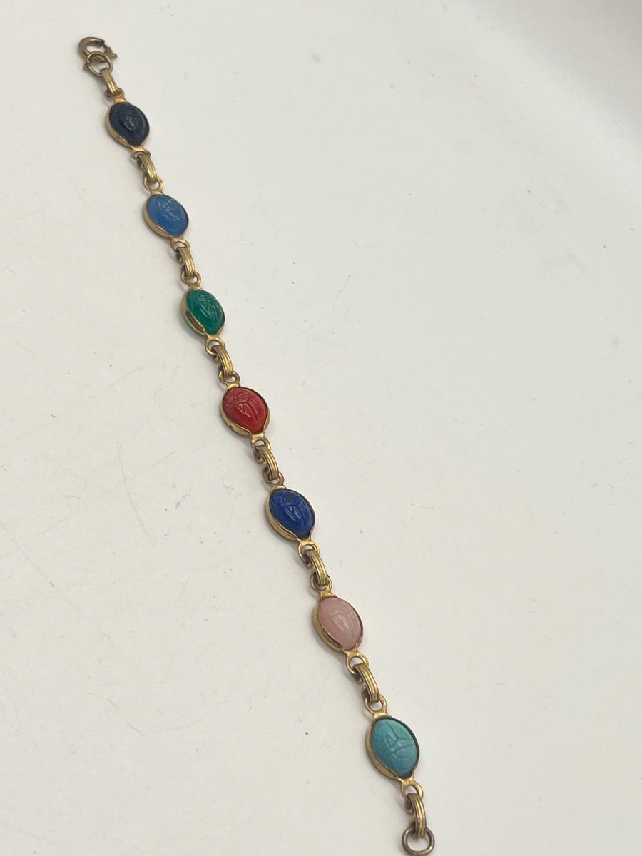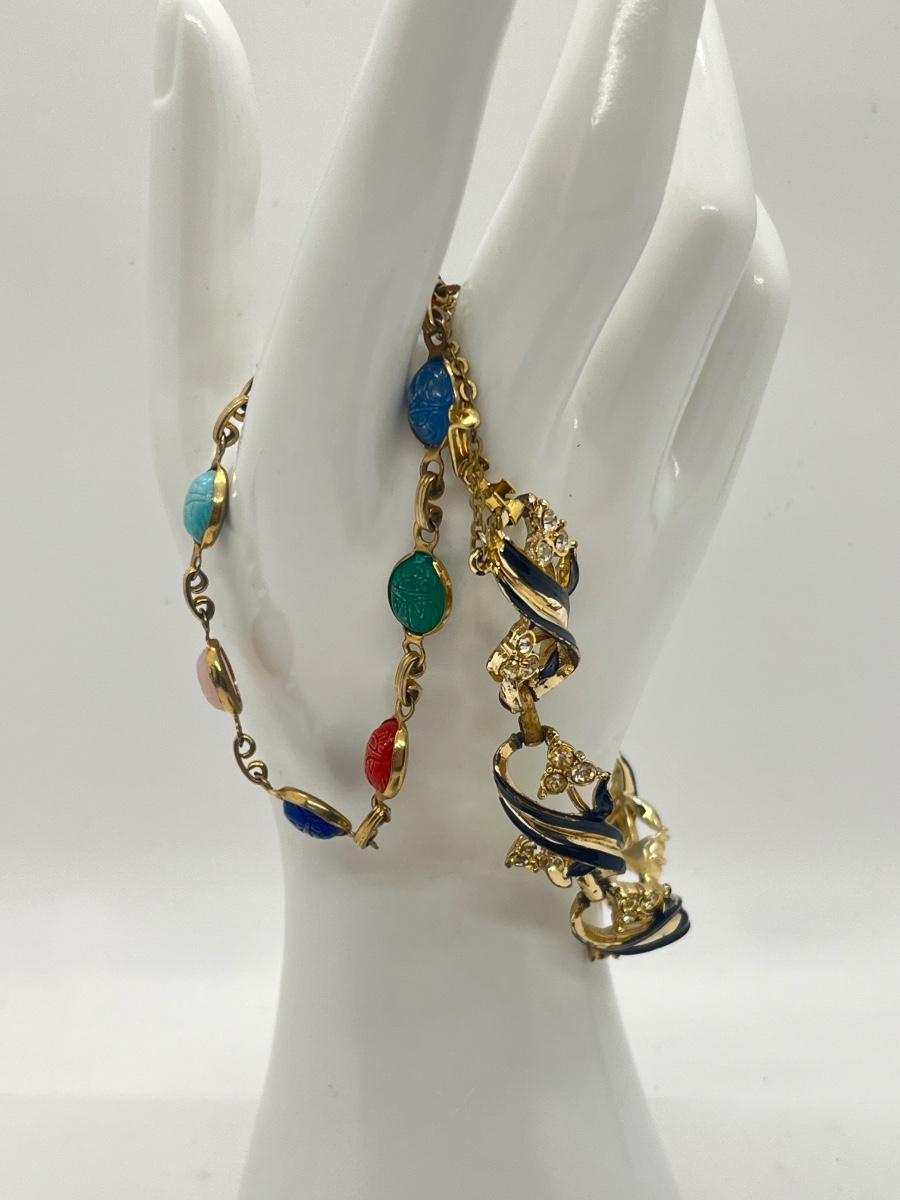 LOT 256J: 7" Scarab Bracelet, Goldtone and Black Enamel Rhinestone 7" Bracelet with Safety Chain, Herringbone Bracelet New in Package