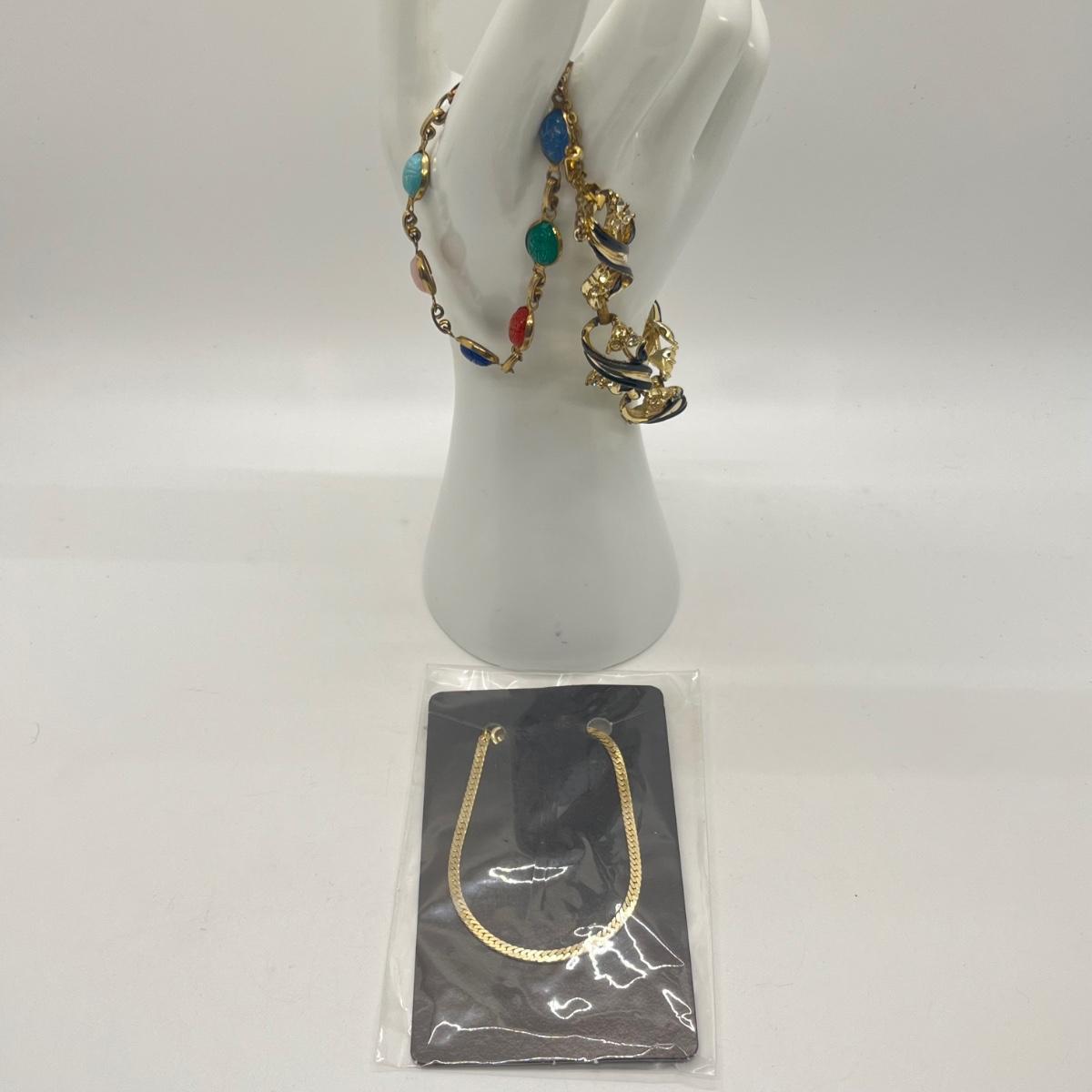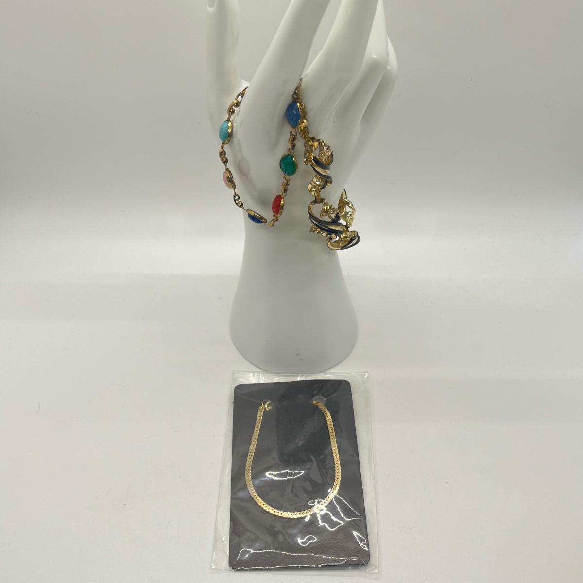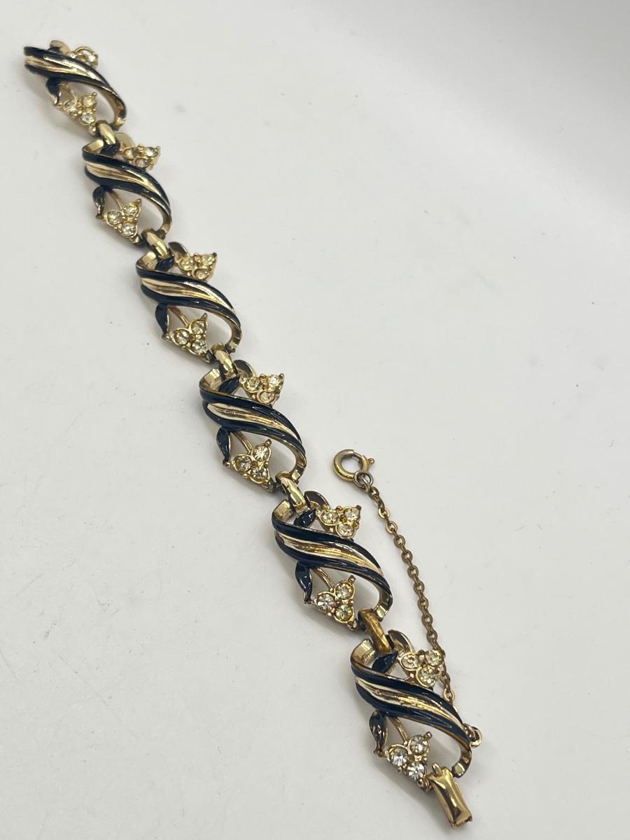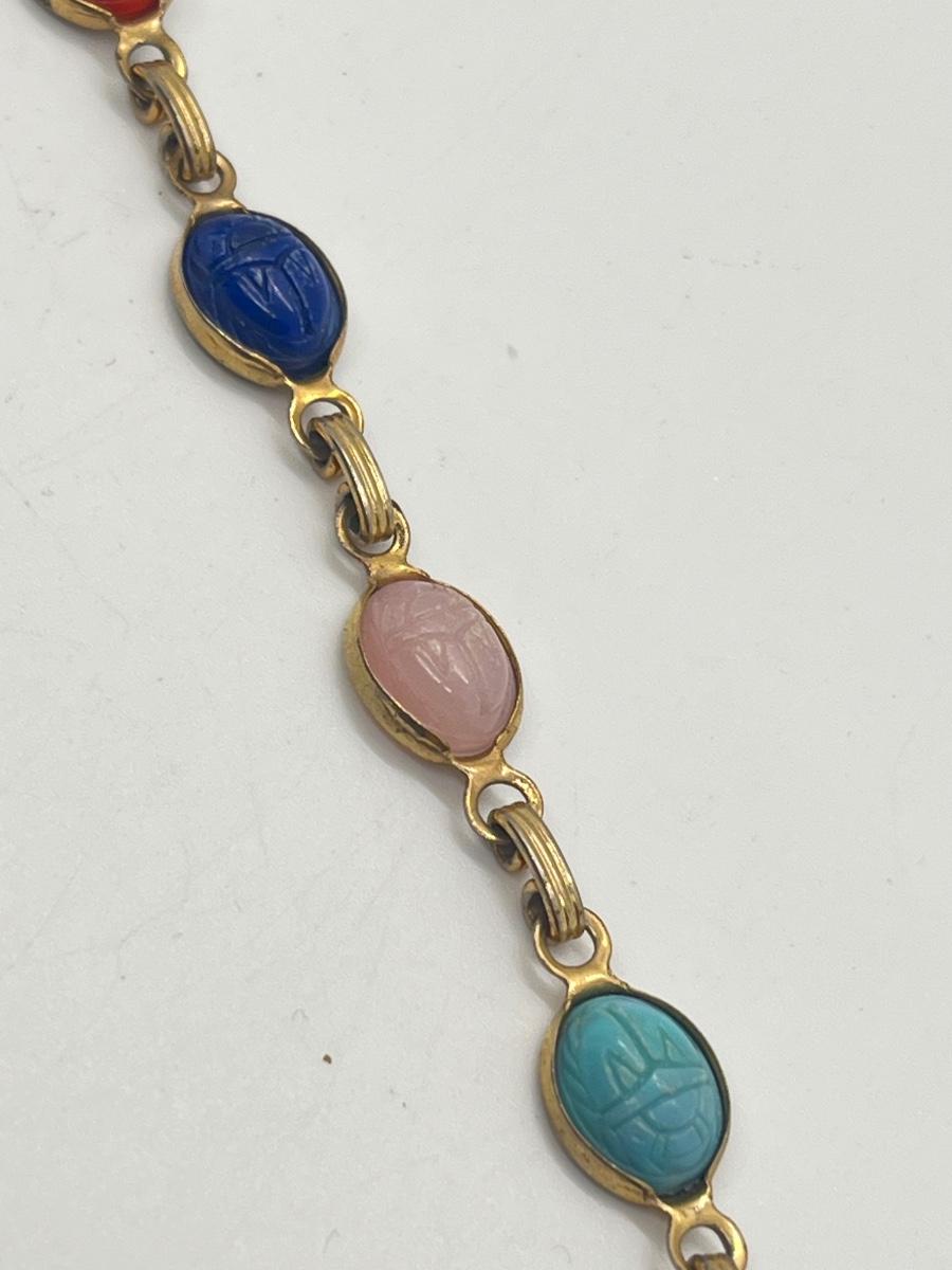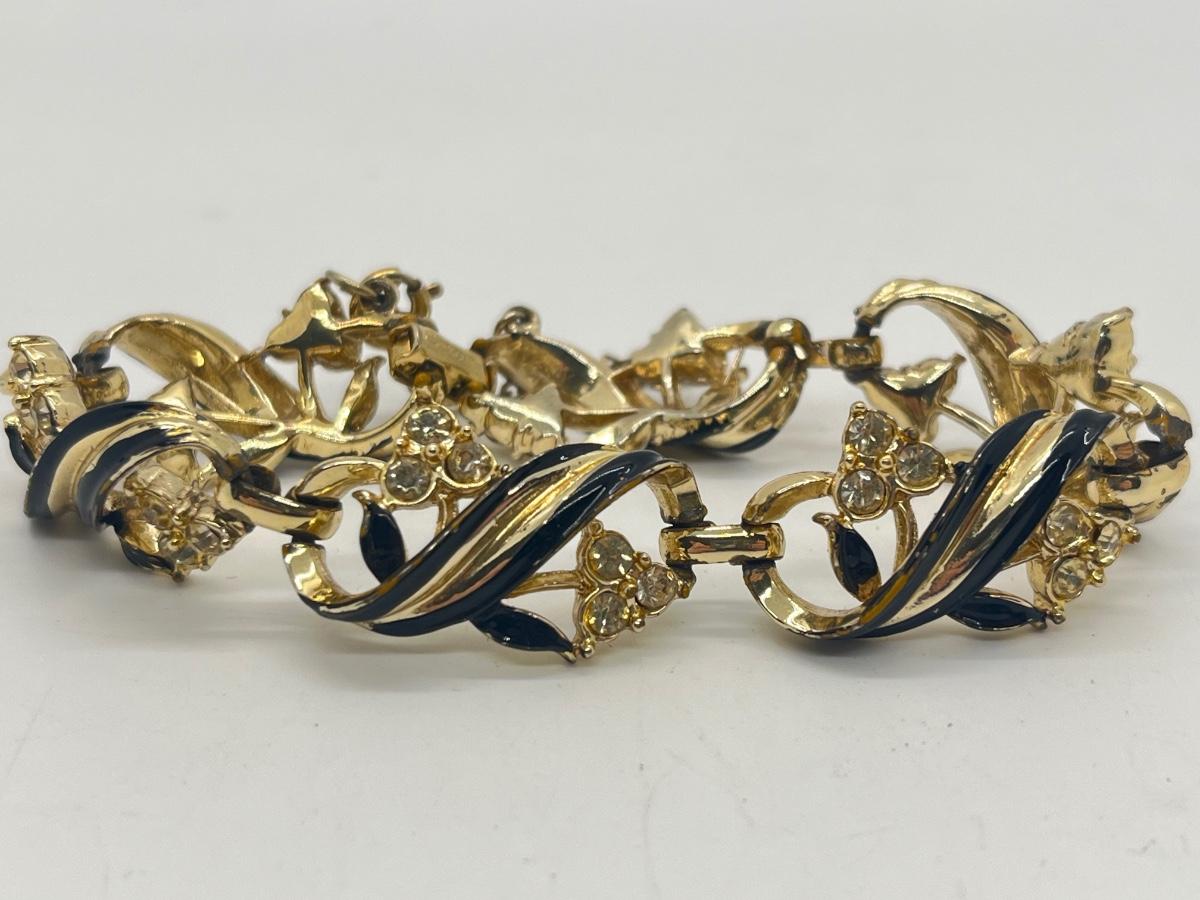 LOT 256J: 7" Scarab Bracelet, Goldtone and Black Enamel Rhinestone 7" Bracelet with Safety Chain, Herringbone Bracelet New in Package