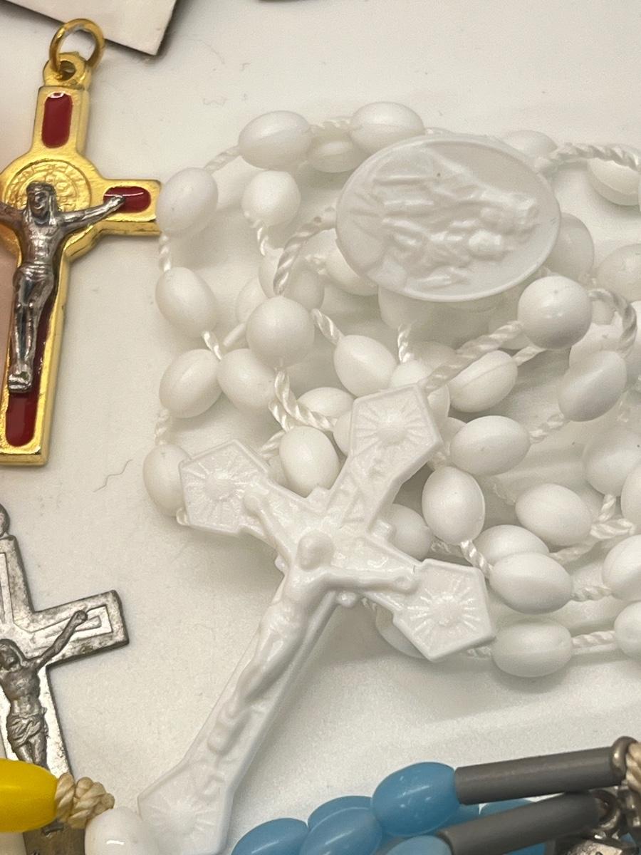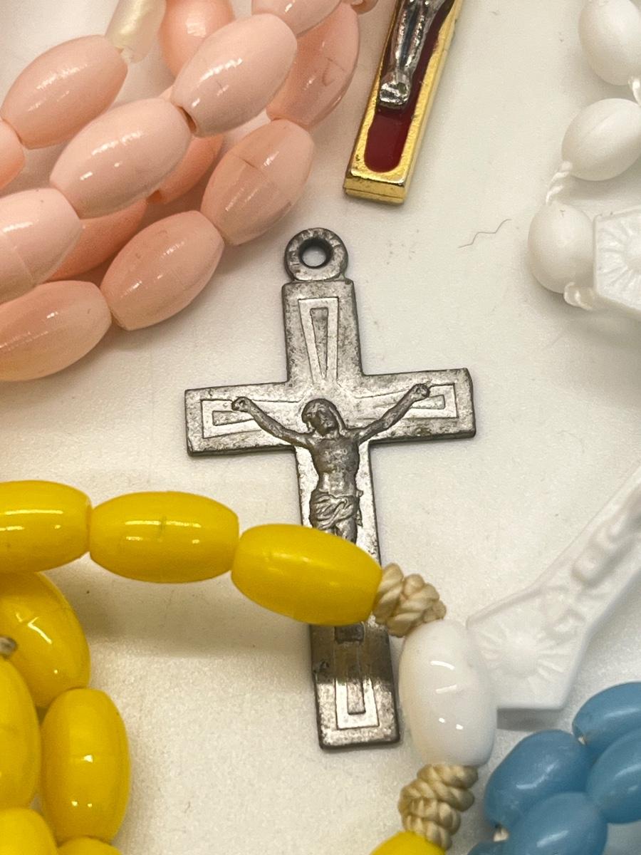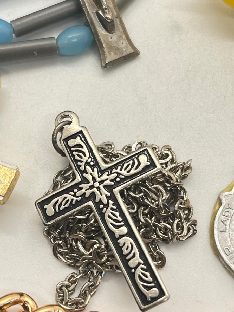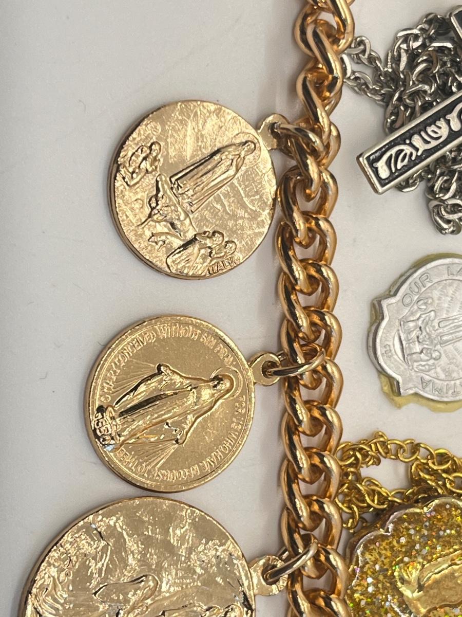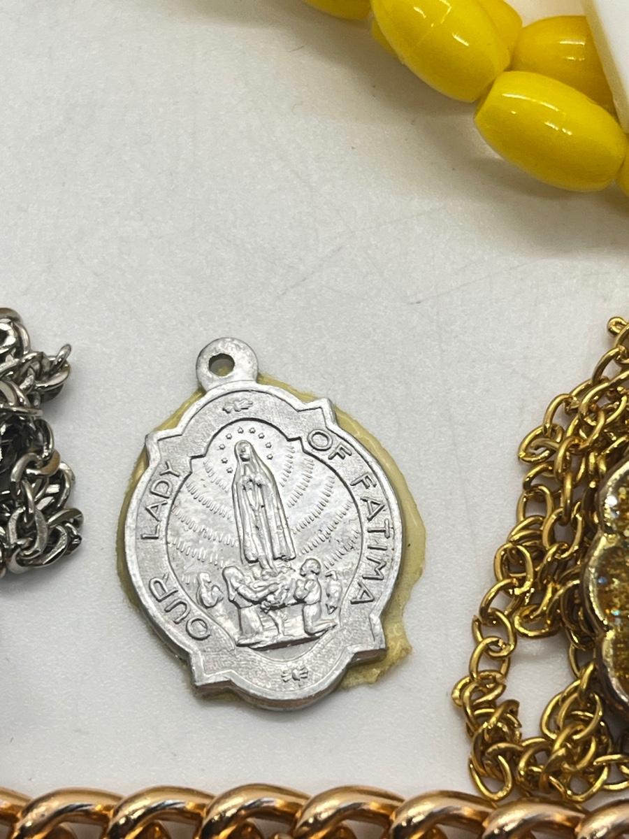 LOT 260J: Large Religious Lot: Rosaries, Chains with Crosses, Charm Bracelet and More