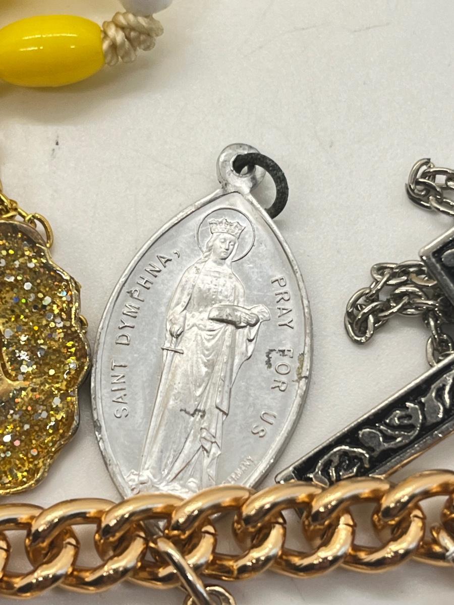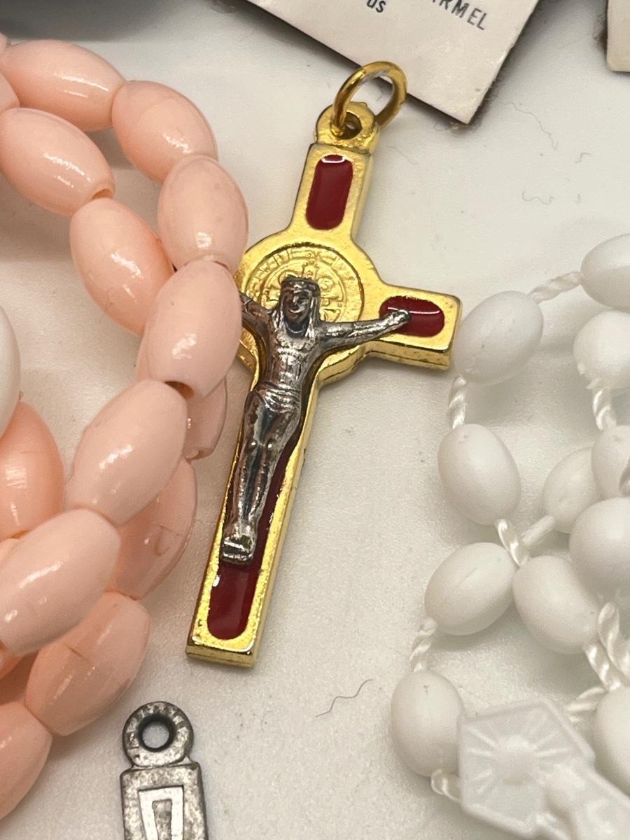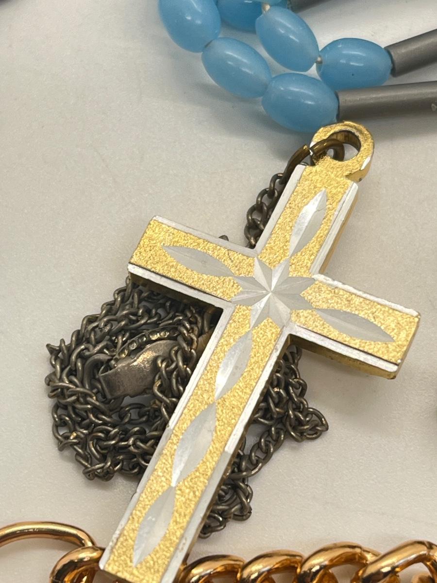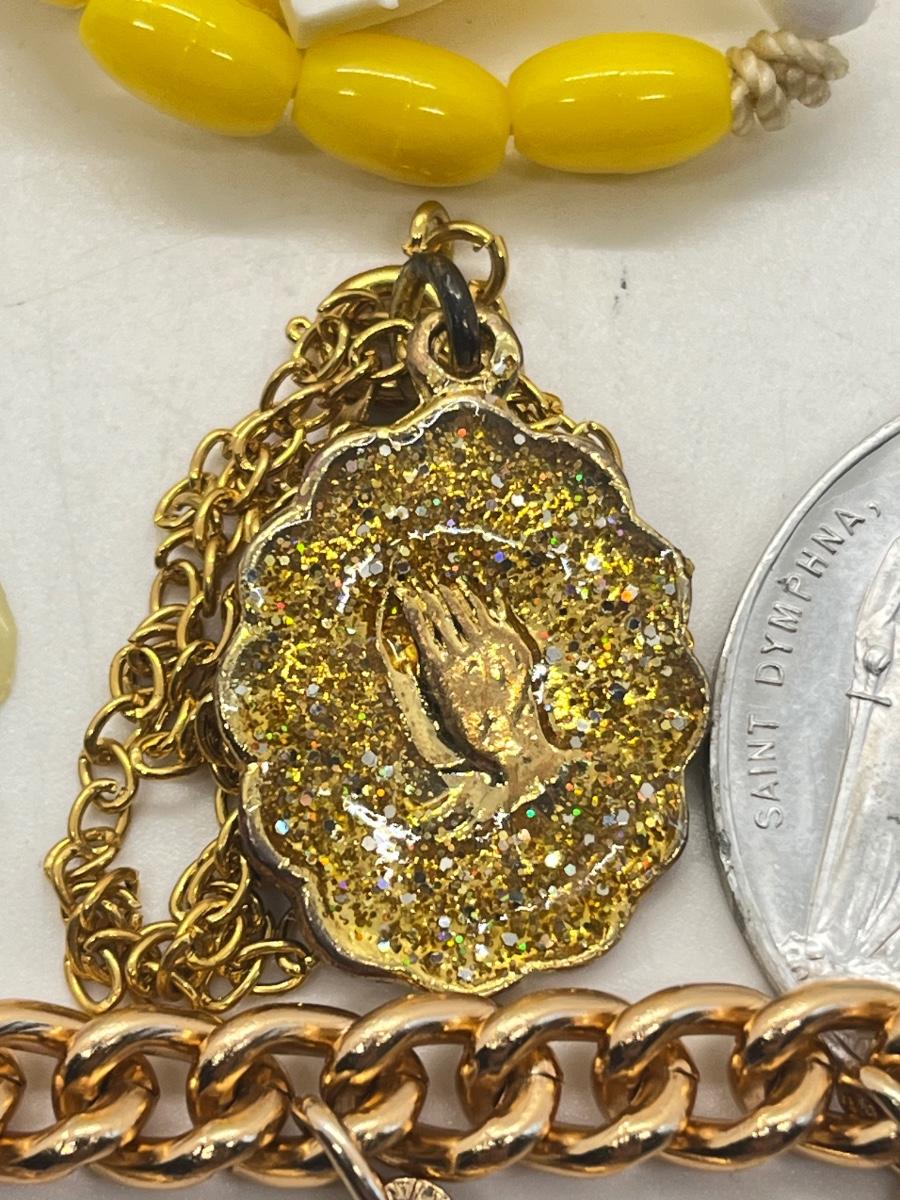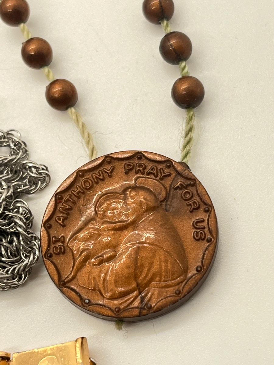 LOT 260J: Large Religious Lot: Rosaries, Chains with Crosses, Charm Bracelet and More