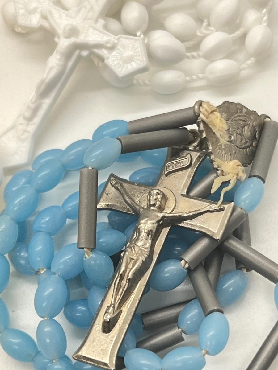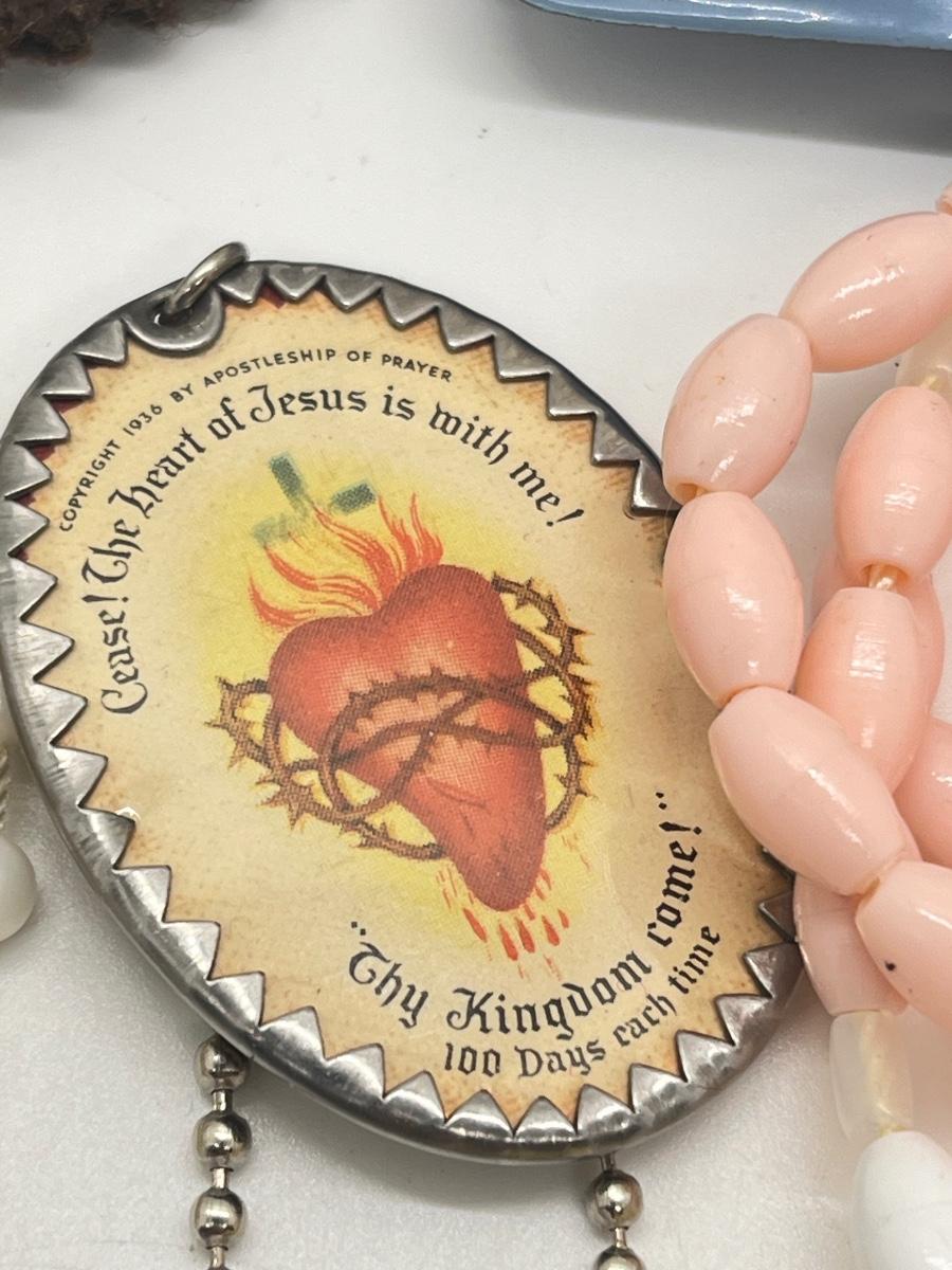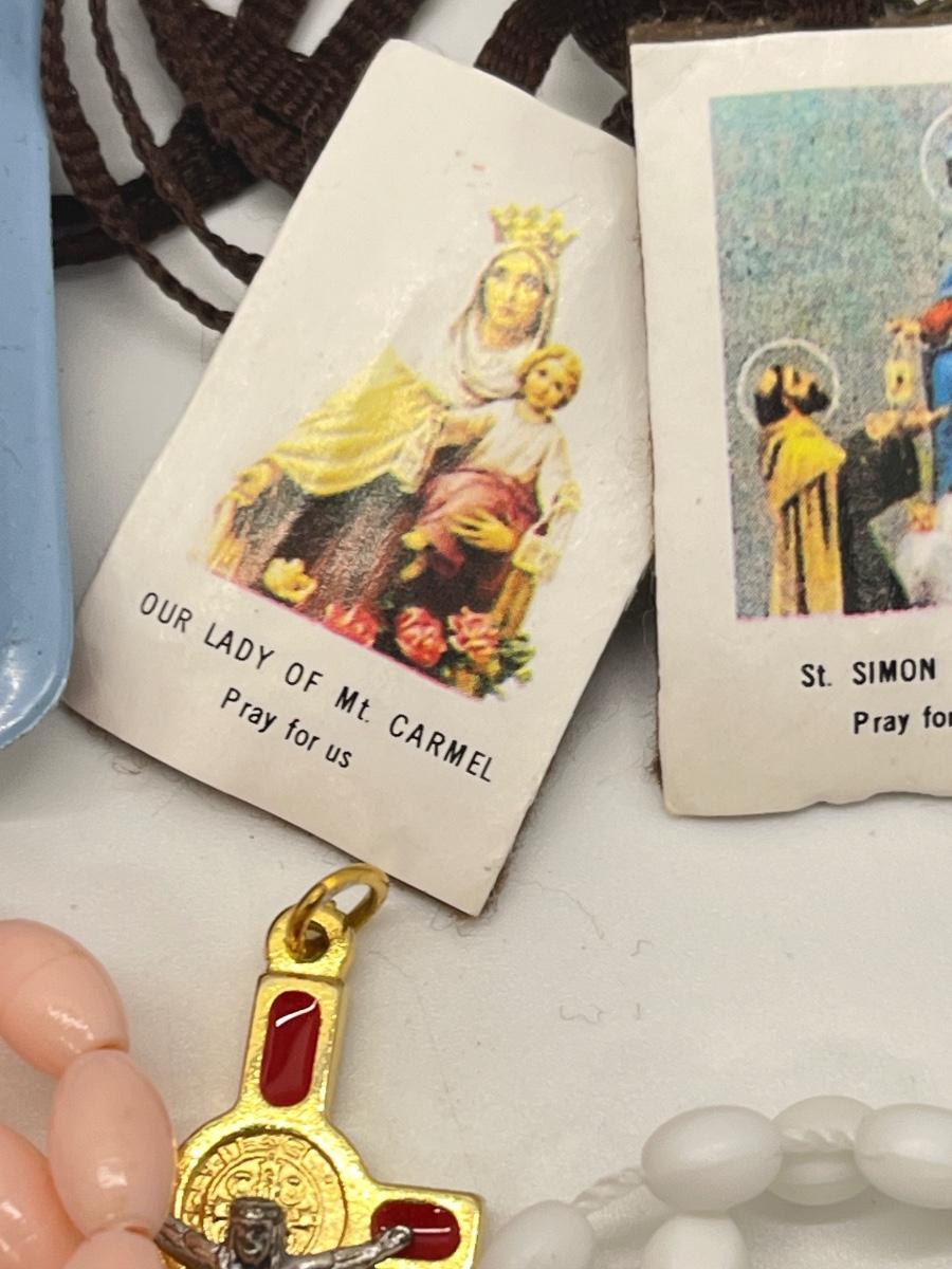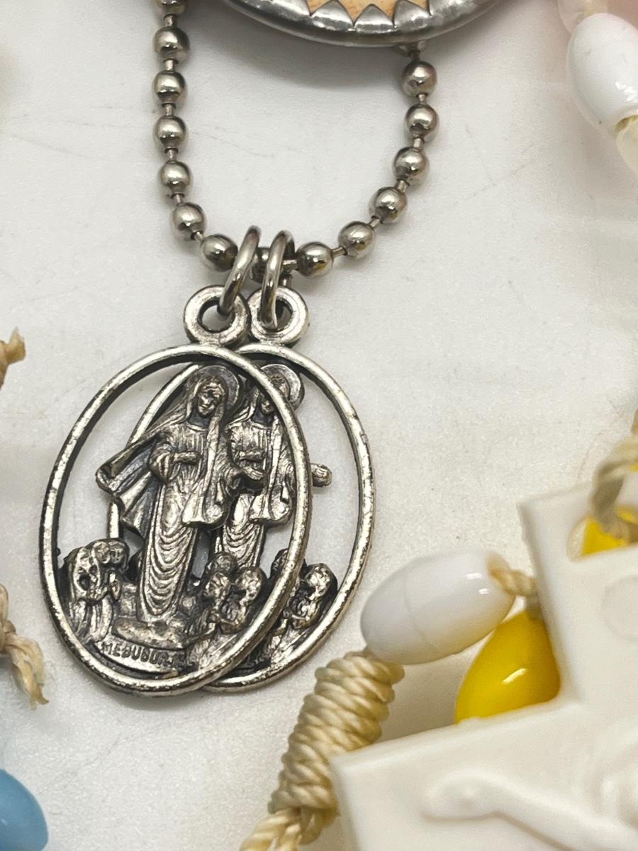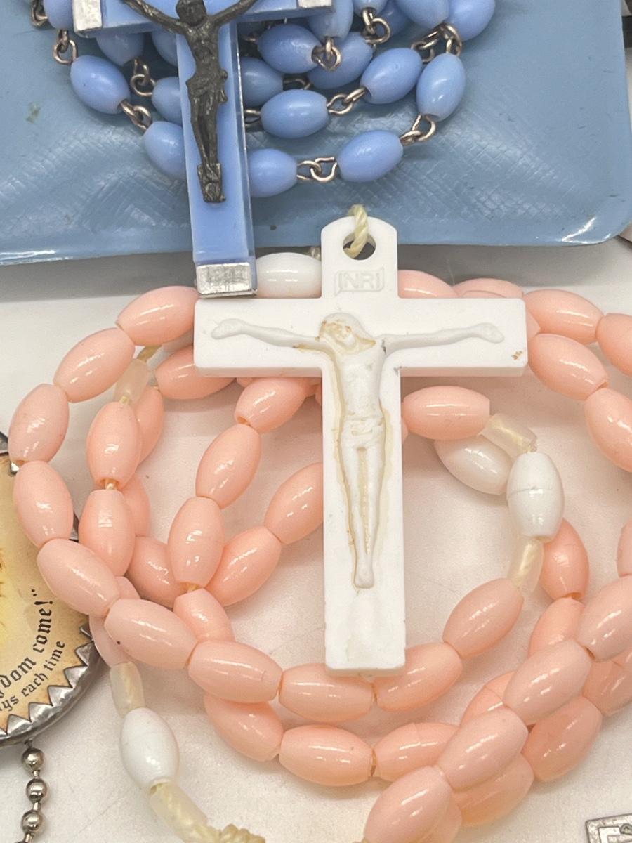 LOT 260J: Large Religious Lot: Rosaries, Chains with Crosses, Charm Bracelet and More