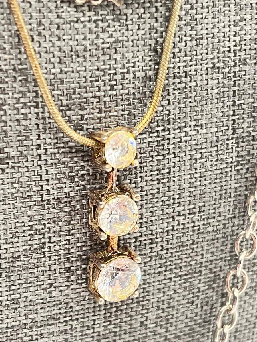 Triple Cubic Zarconia Pendant Necklace-20"