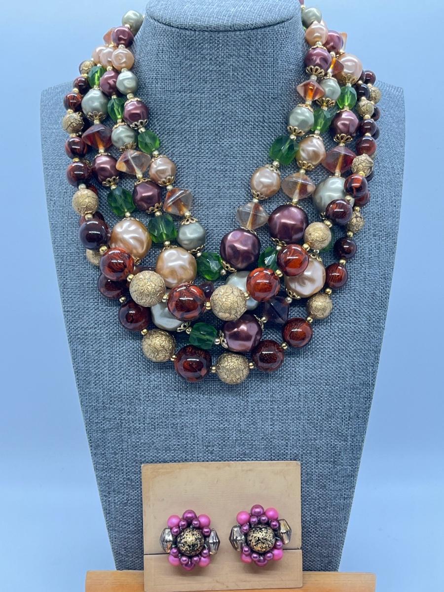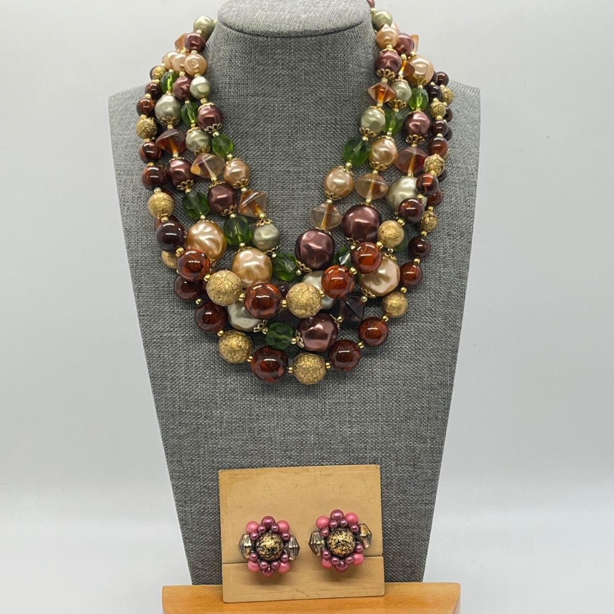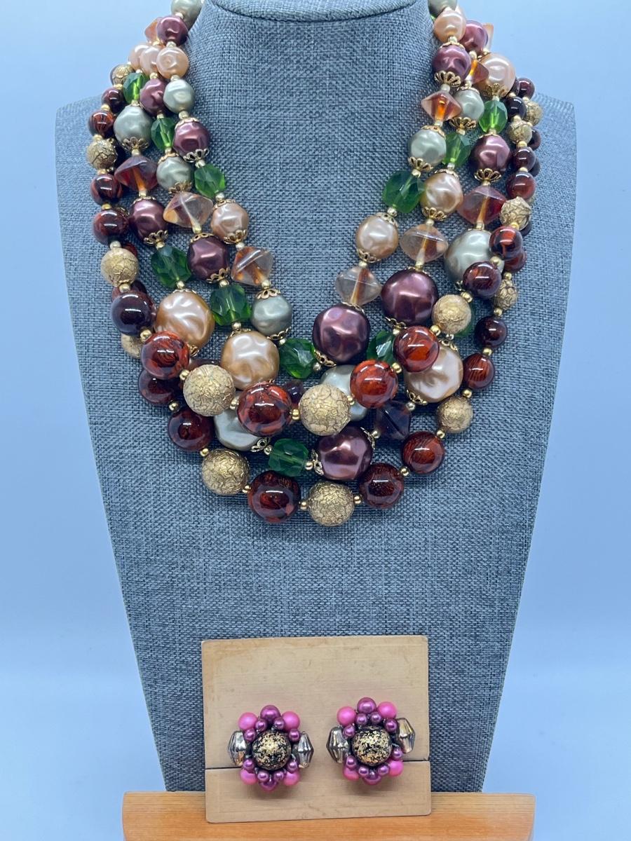 LOT 268J: Vintage Double and Triple Strand Beaded Necklaces and Clip On Earrings