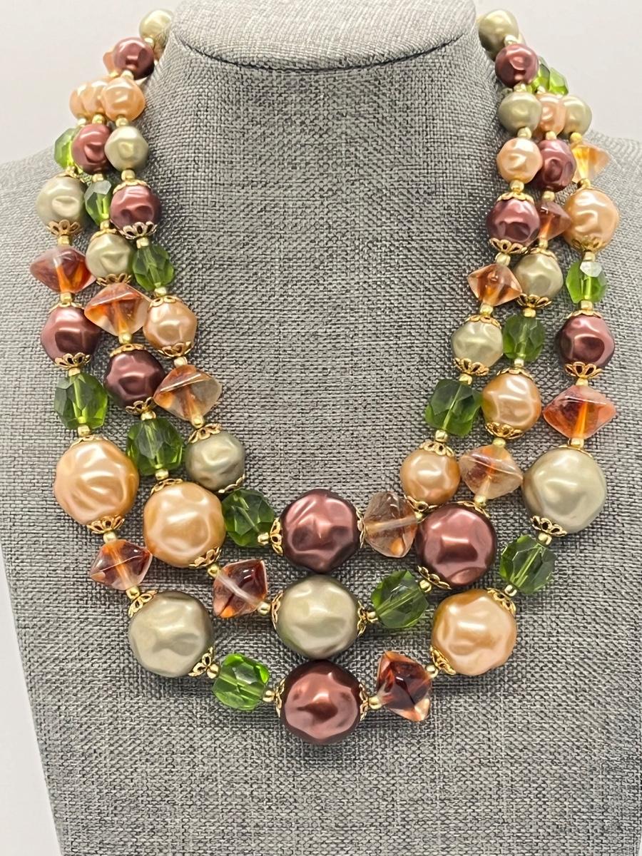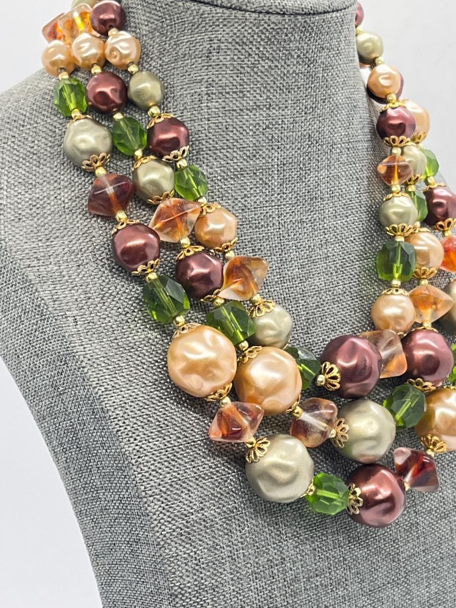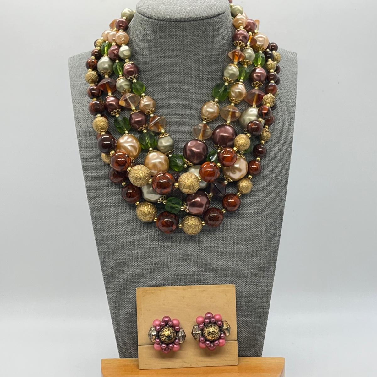 LOT 268J: Vintage Double and Triple Strand Beaded Necklaces and Clip On Earrings