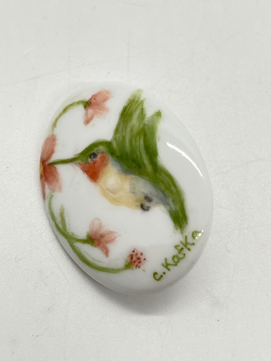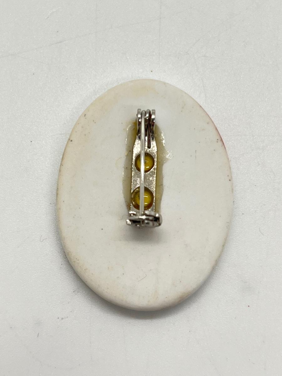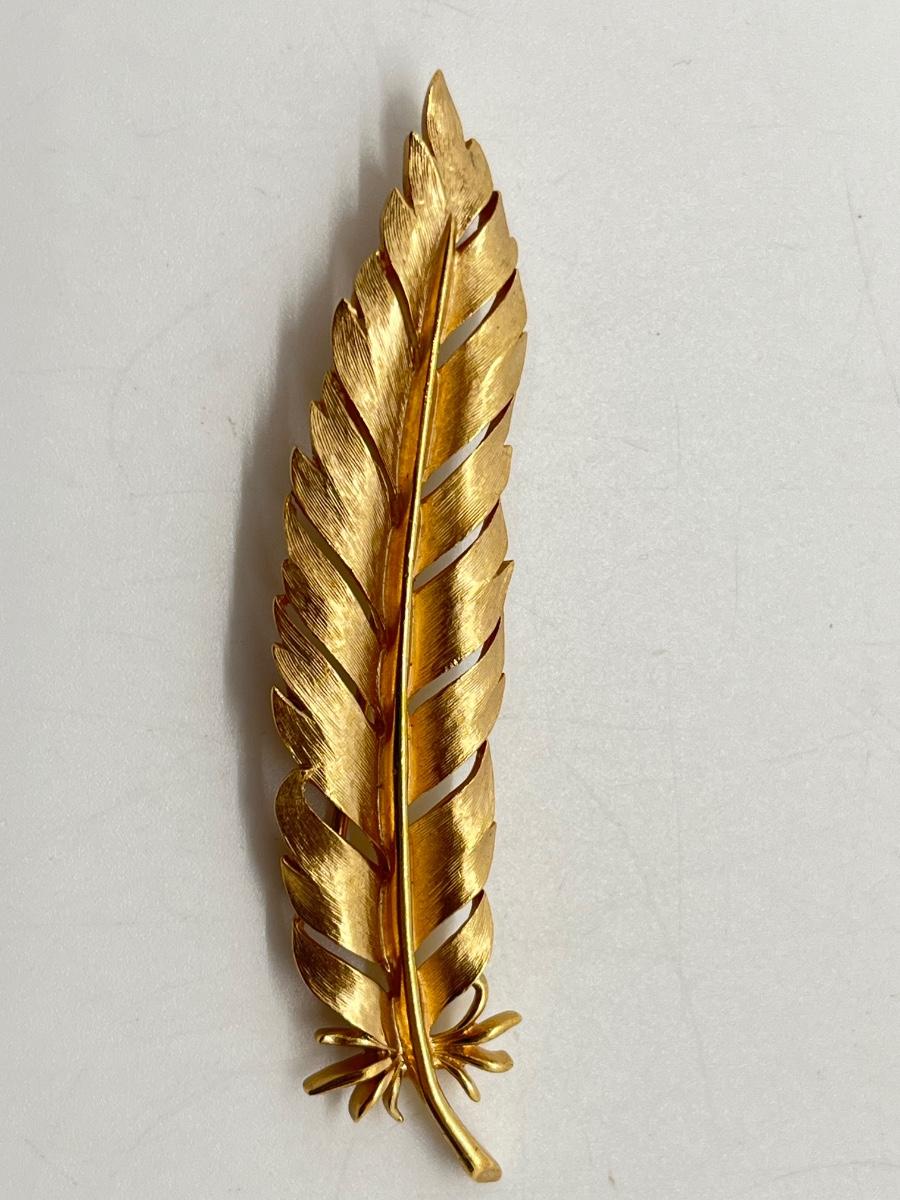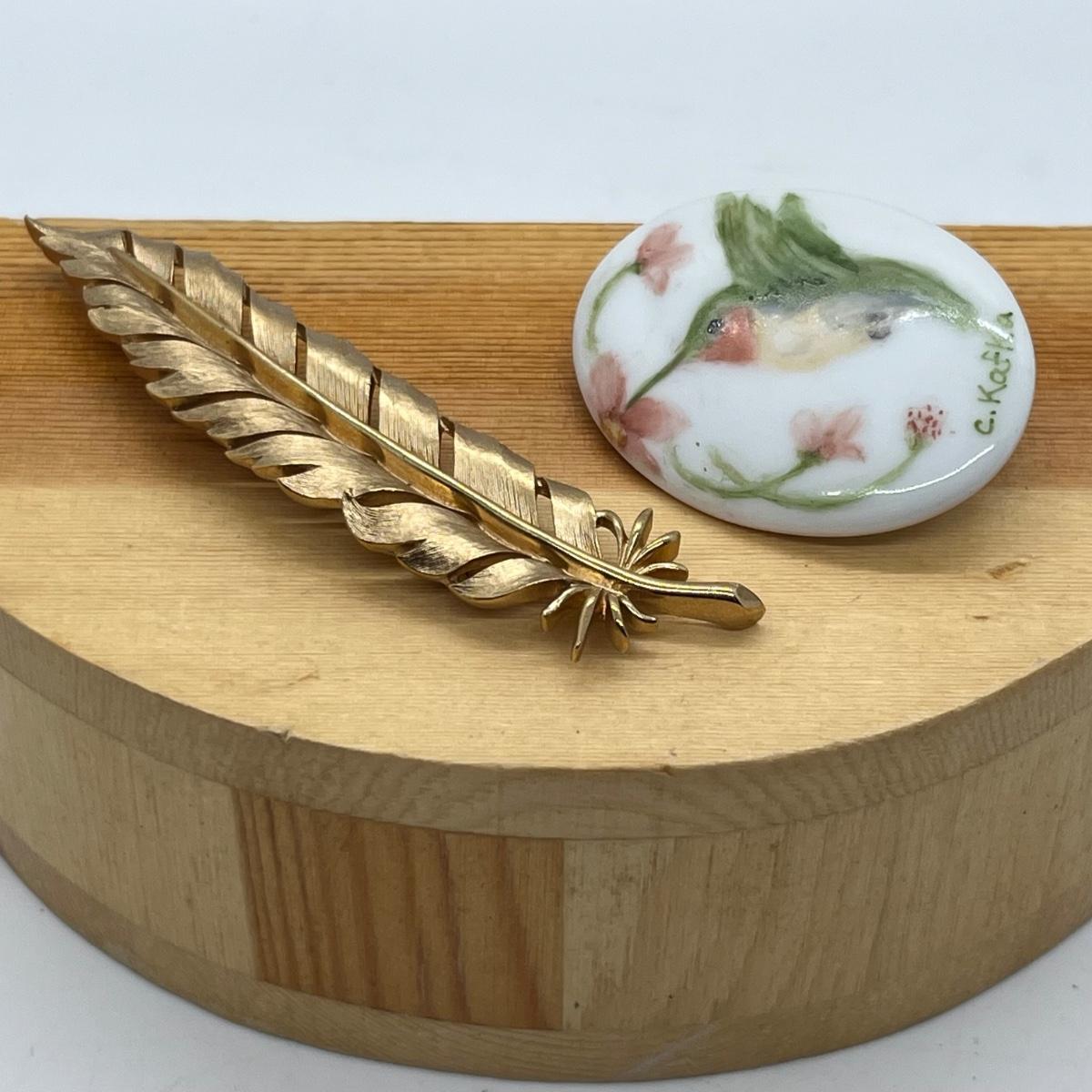LOT 269J: Trifari Goldtone Leaf Brooch circa 1940's-1950's and Hand Painted Ceramic Brooch Signed C. Kafka