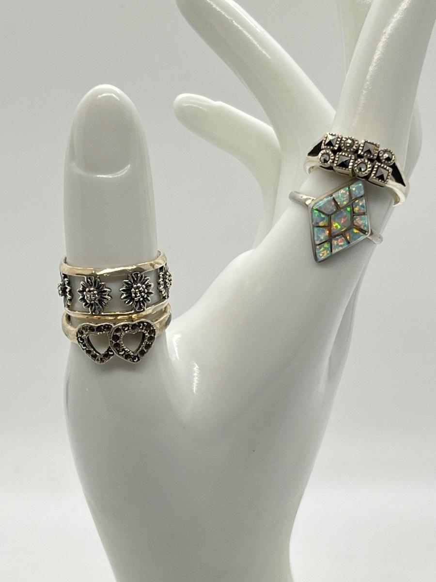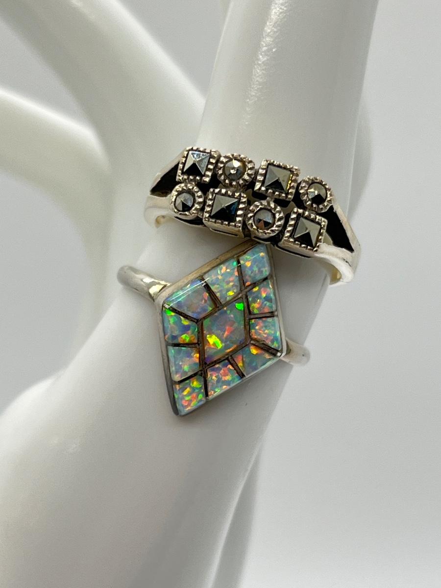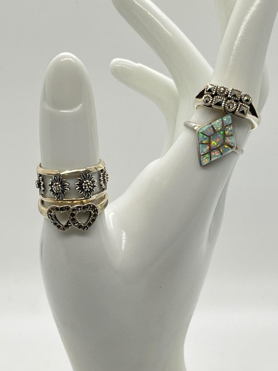 LOT 286J: Size 8 Sterling Rings: Opal, Marcasite and More