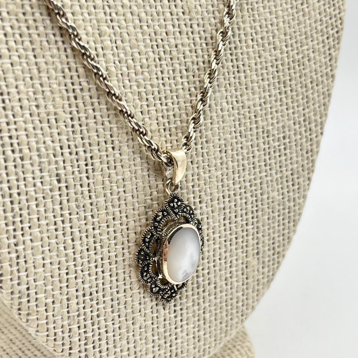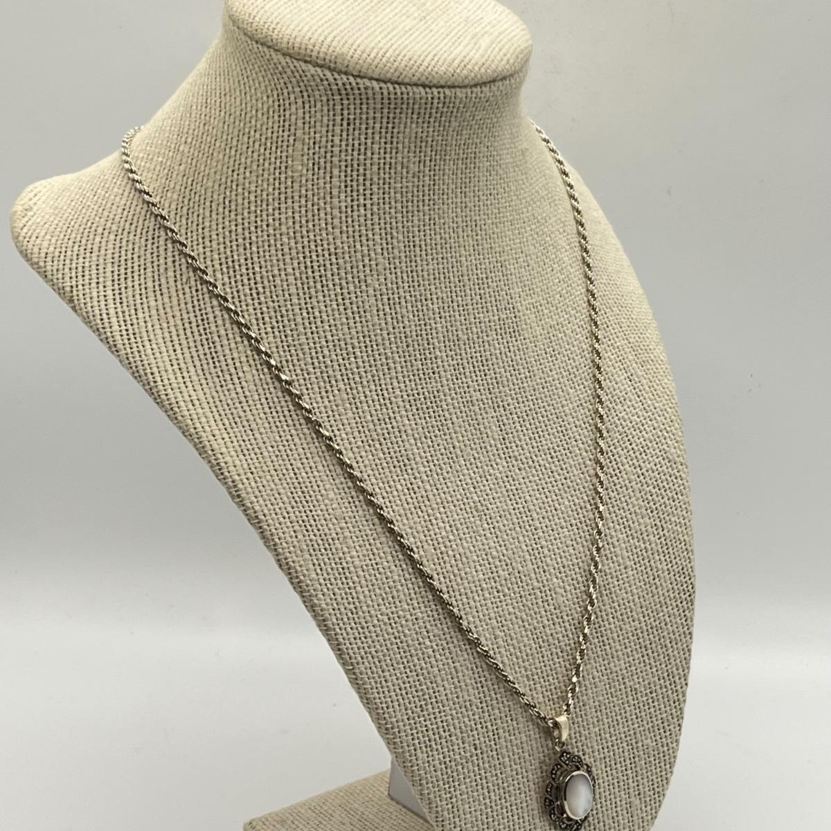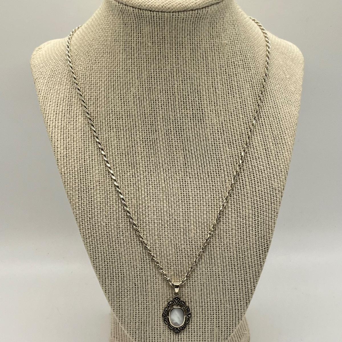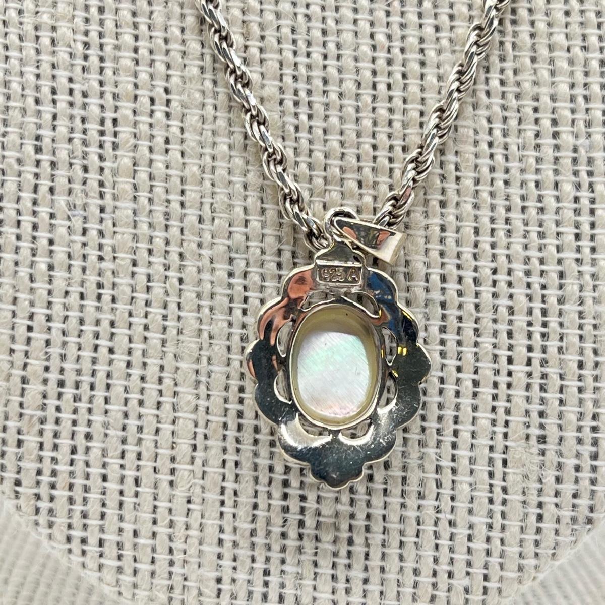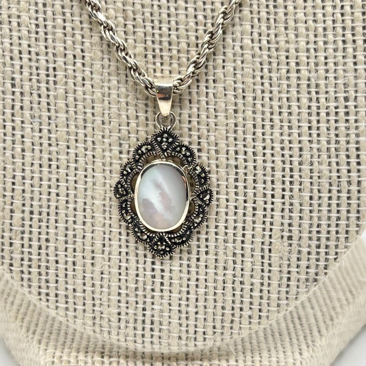 LOT 293J: 20" Rope Chain-925-with Marcasite and Mother of Pearl Pendant