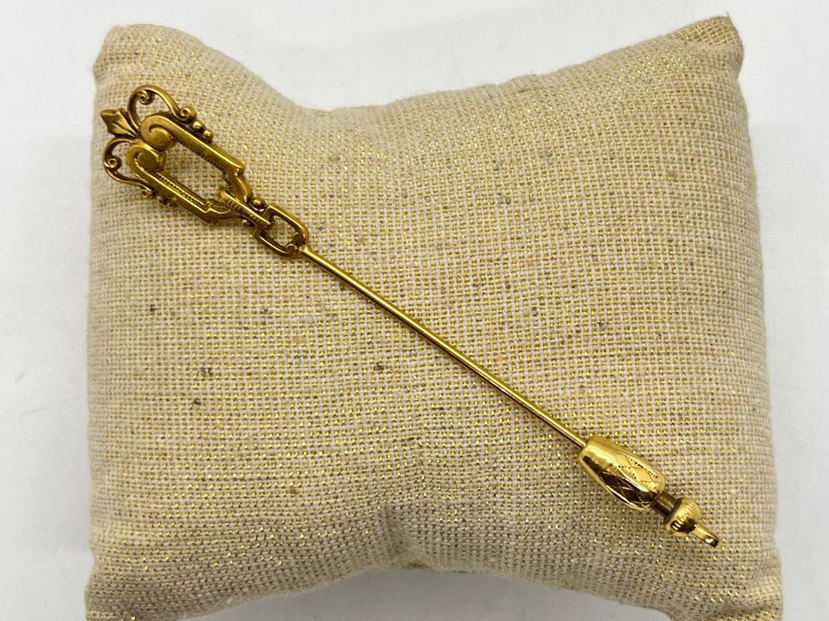 LOT 294J: 9K Gold Antique Victorian Stick/Hat/Tie Pin-3.7 grams