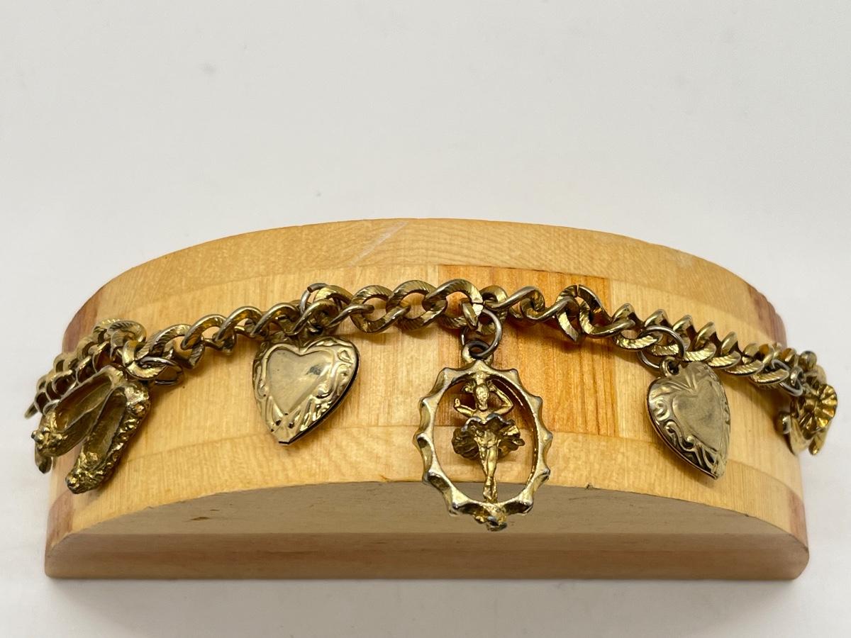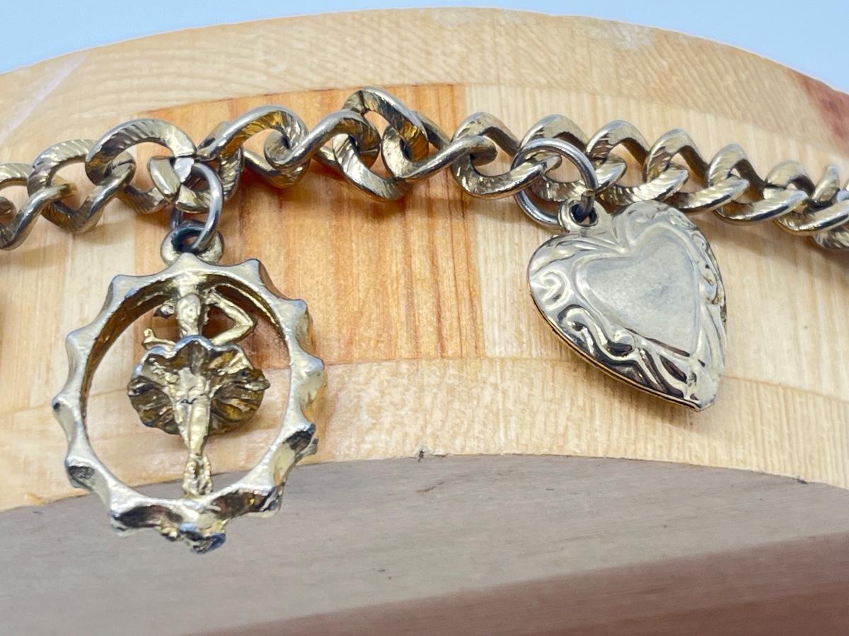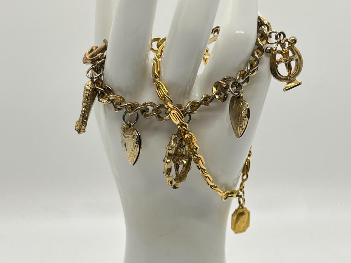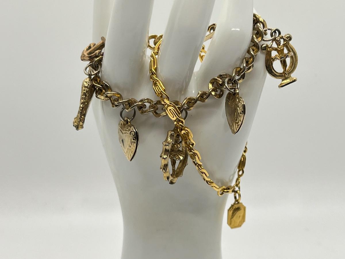 LOT 295J: 7" Goldtone Charm Bracelet and 7.5" Goldtone Bracelet with Virgin Mary Charm