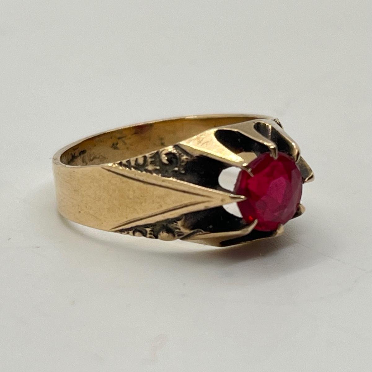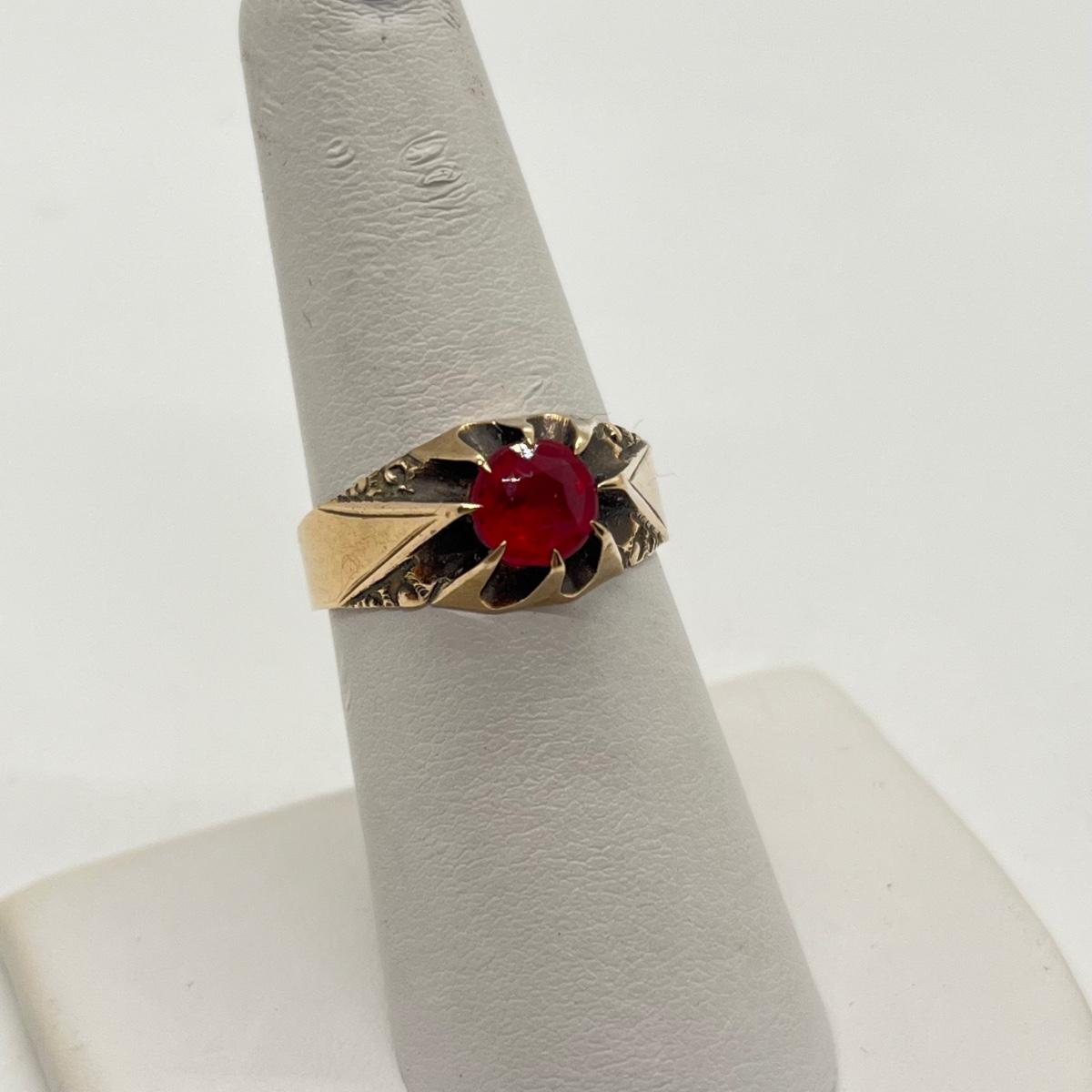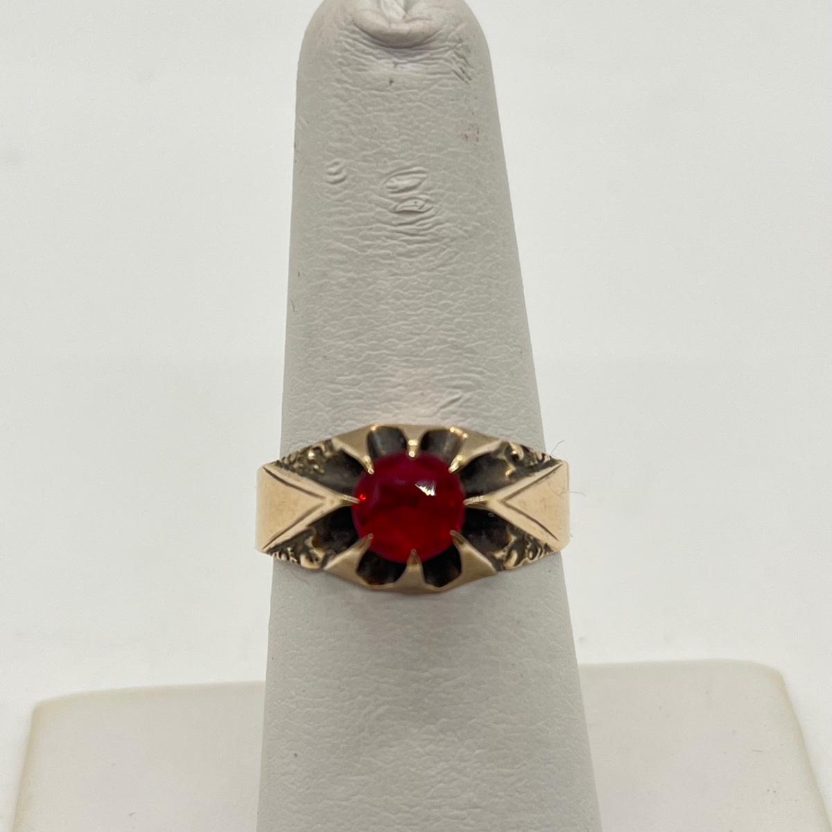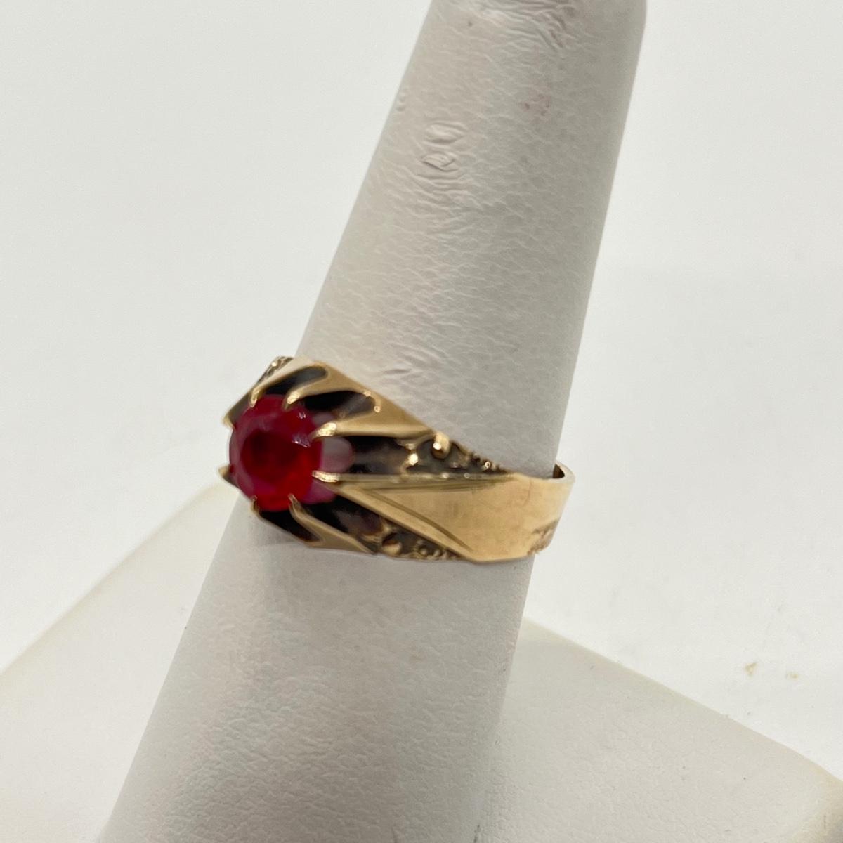LOT 296J: Vintage 14K Gold Size 8 Ruby Red Paste Ring-3.9 GTW