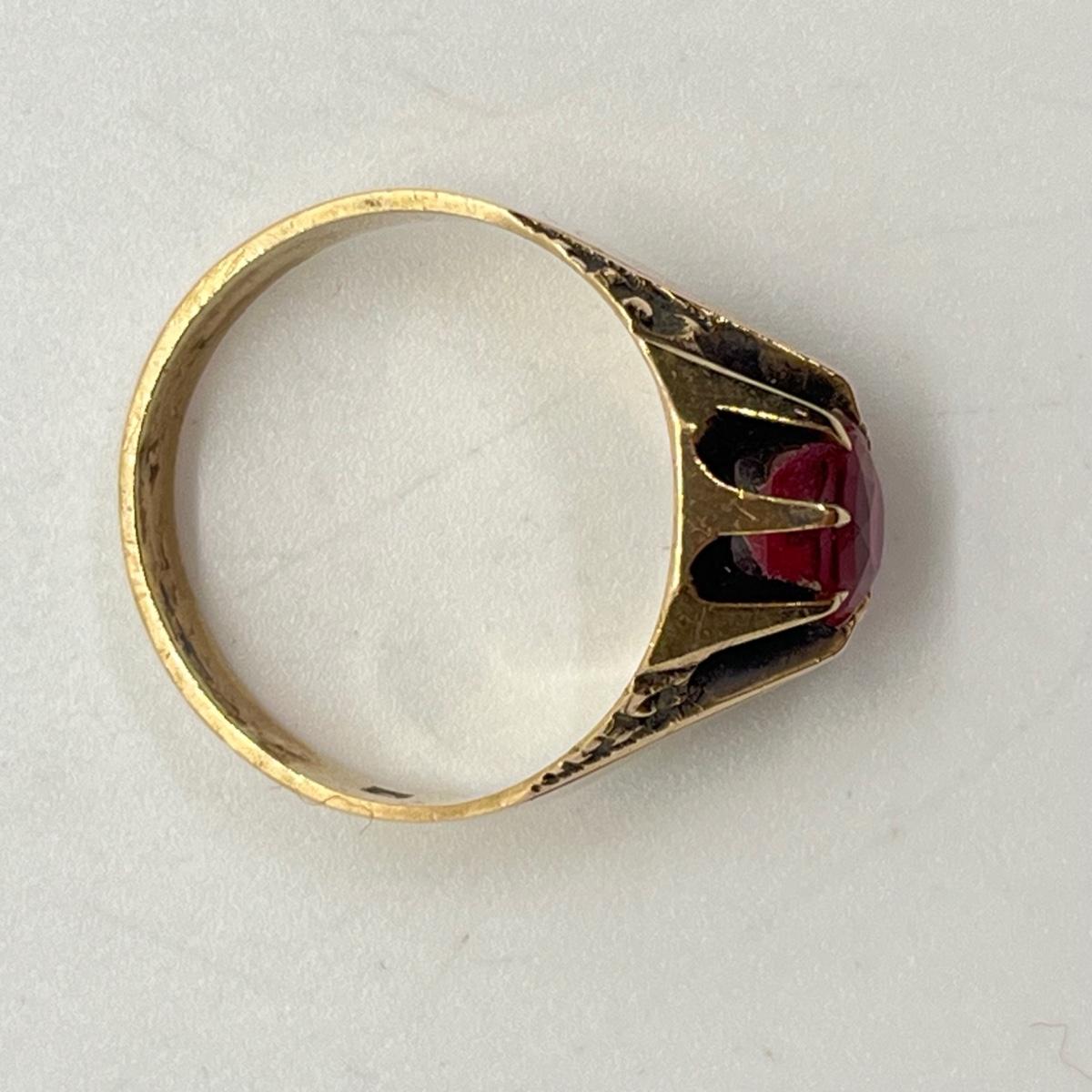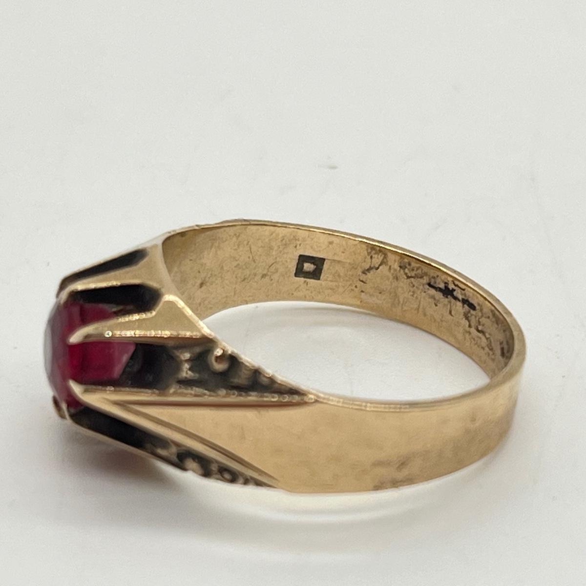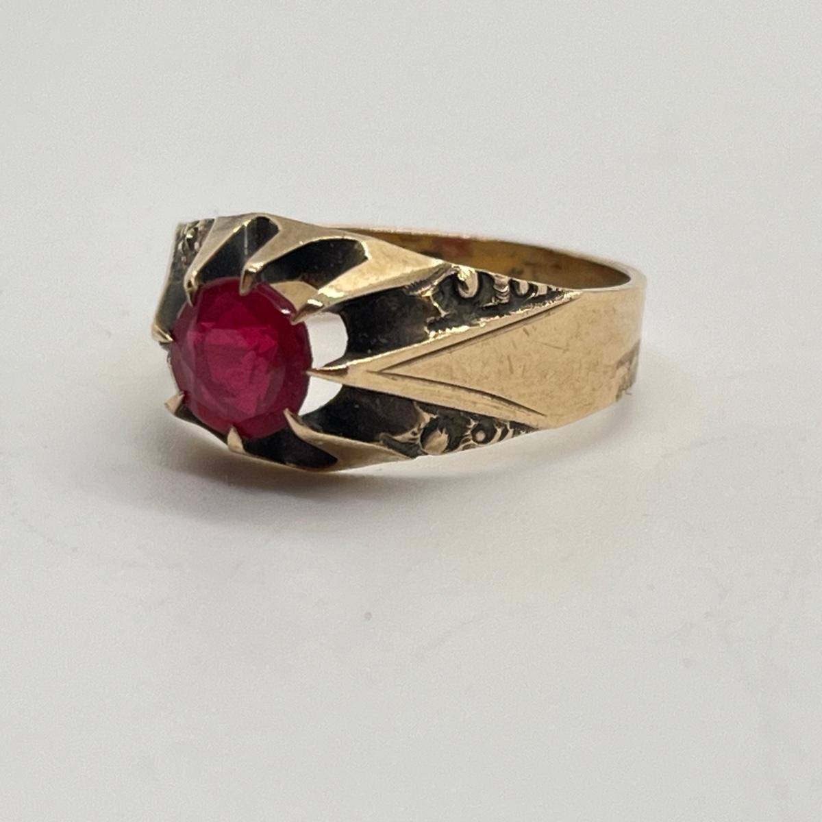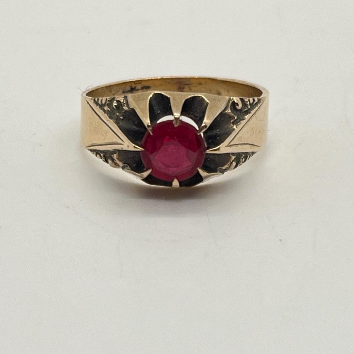 LOT 296J: Vintage 14K Gold Size 8 Ruby Red Paste Ring-3.9 GTW