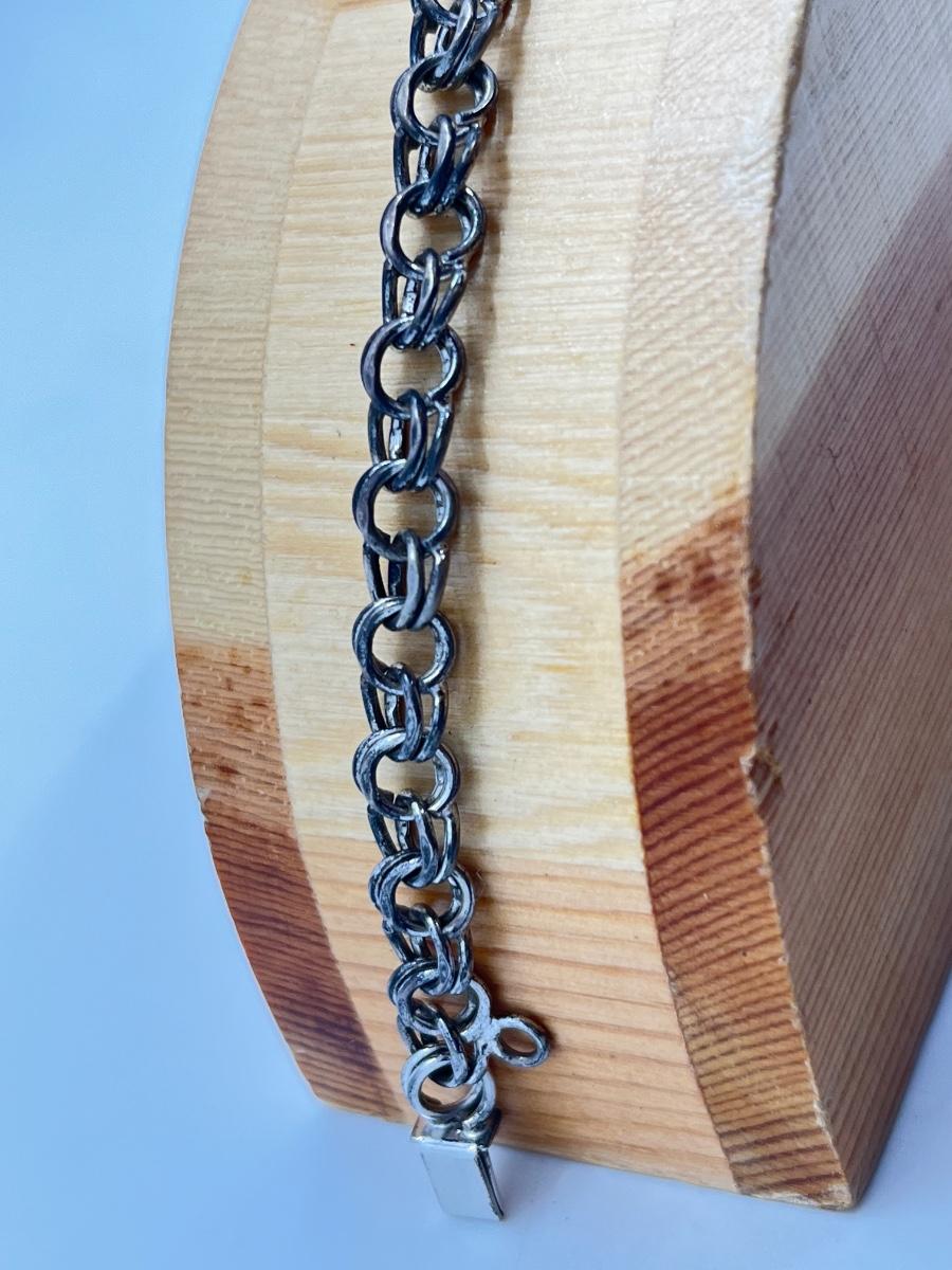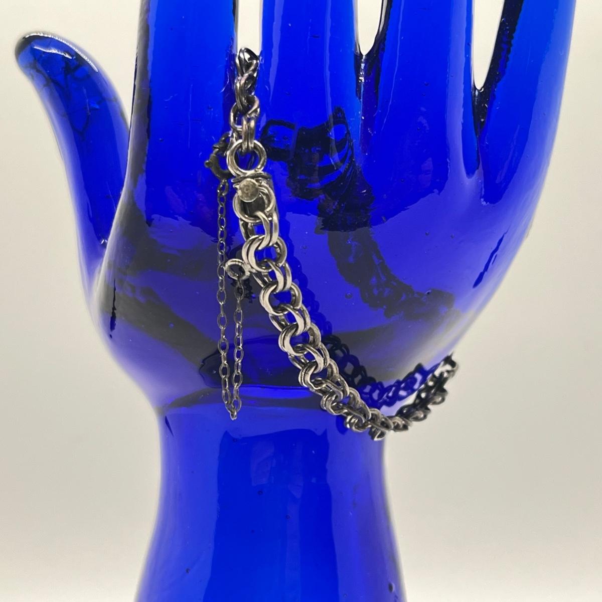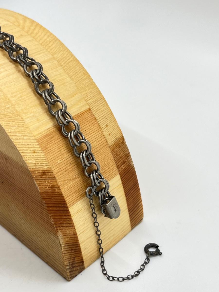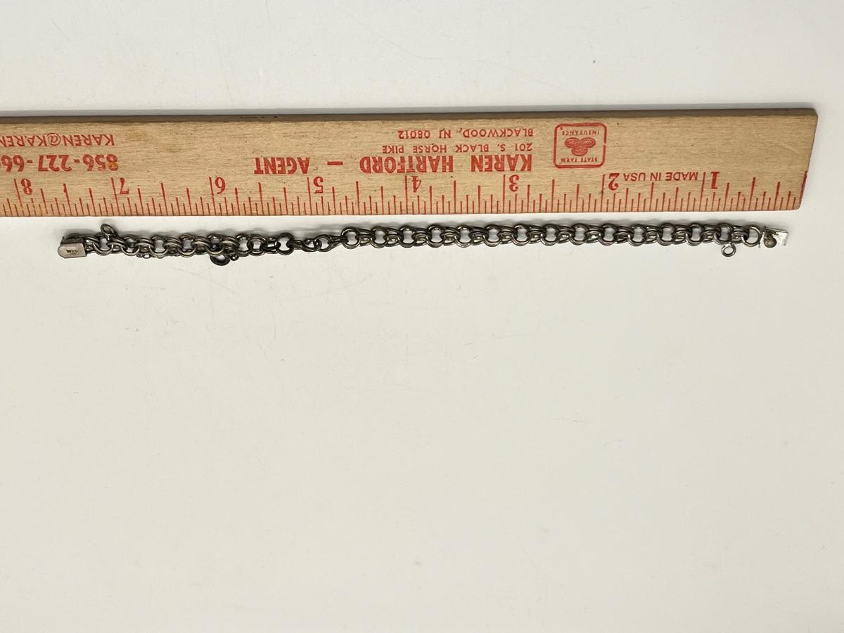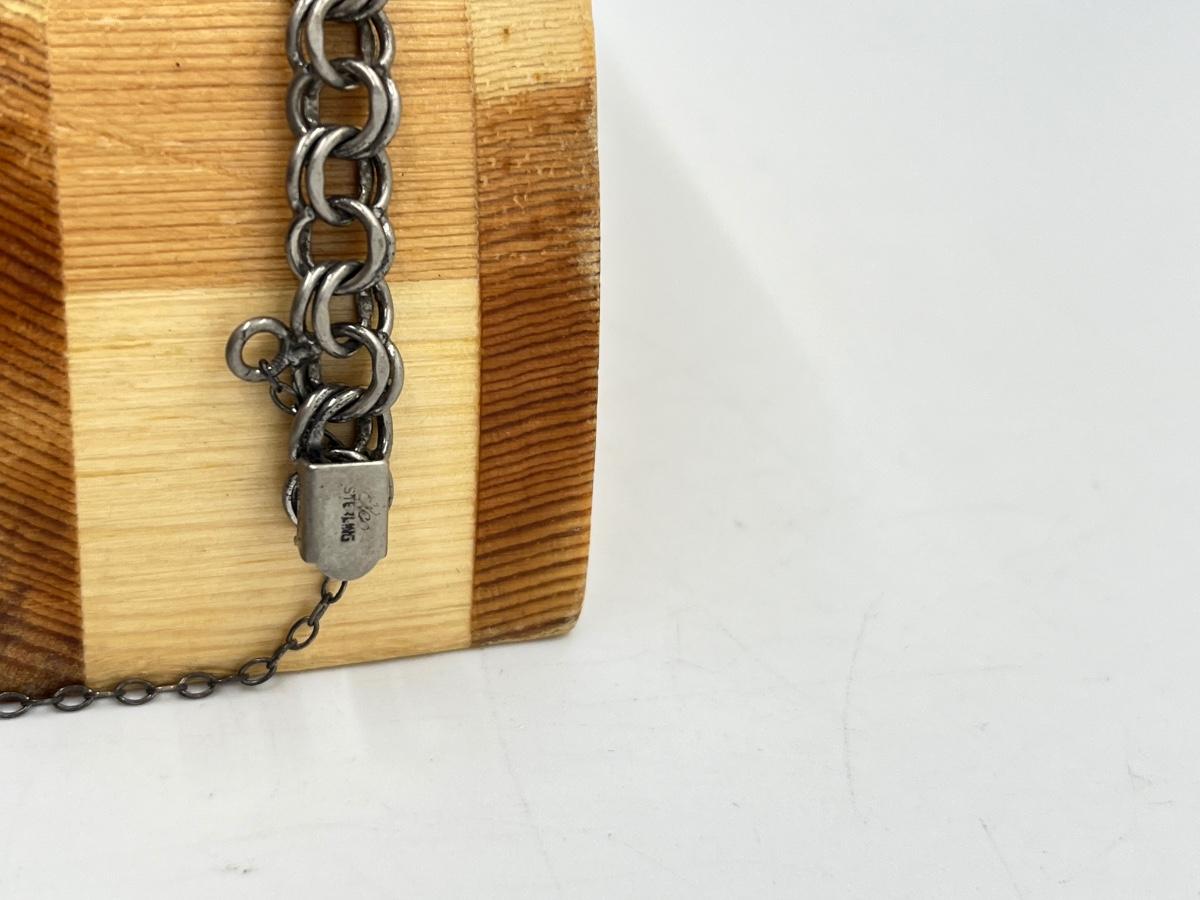 LOT 302J: Vintage Double Link Sterling Silver Charm Bracelet with Safety Chain-9.9 grams