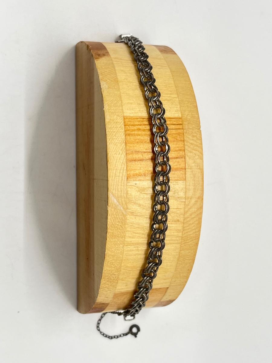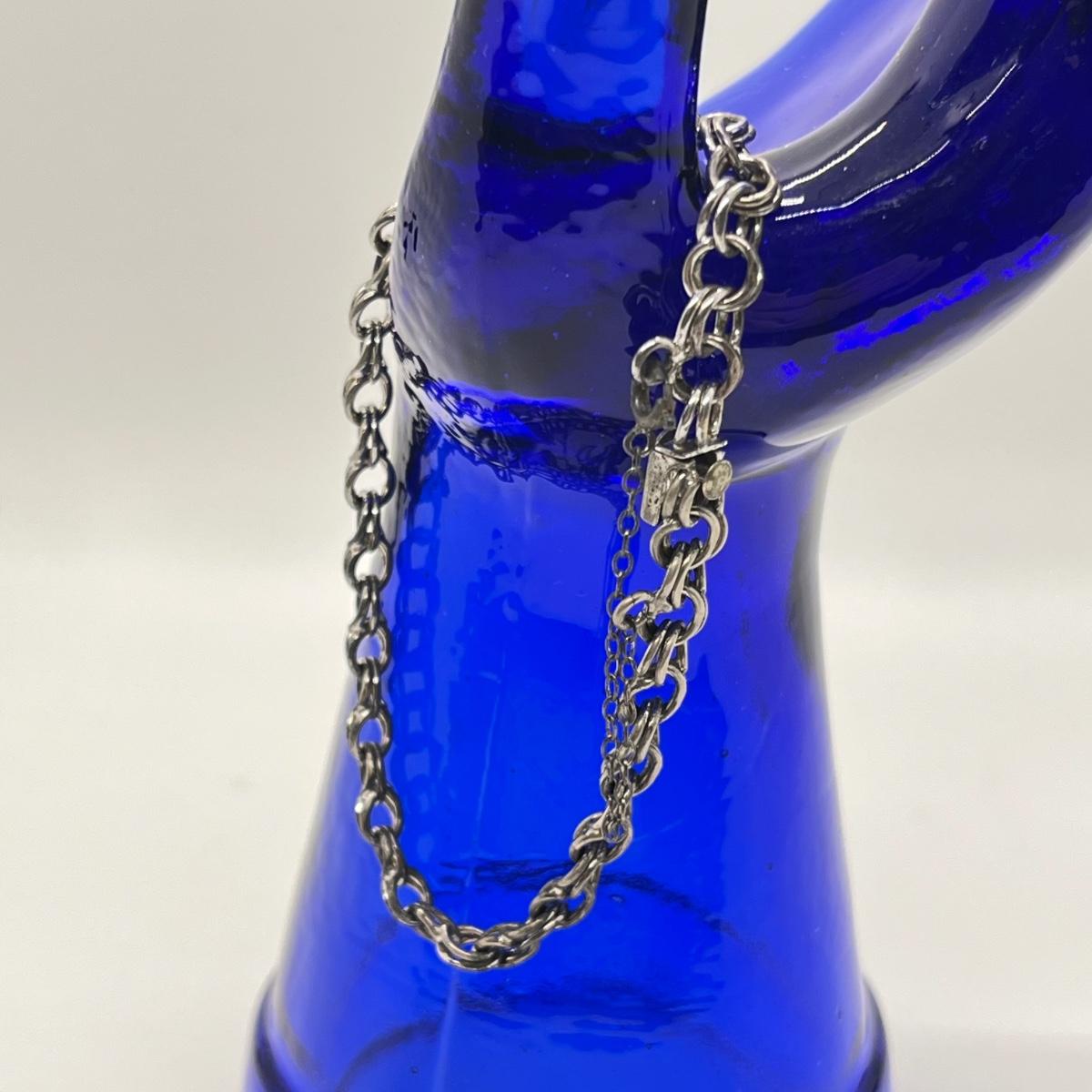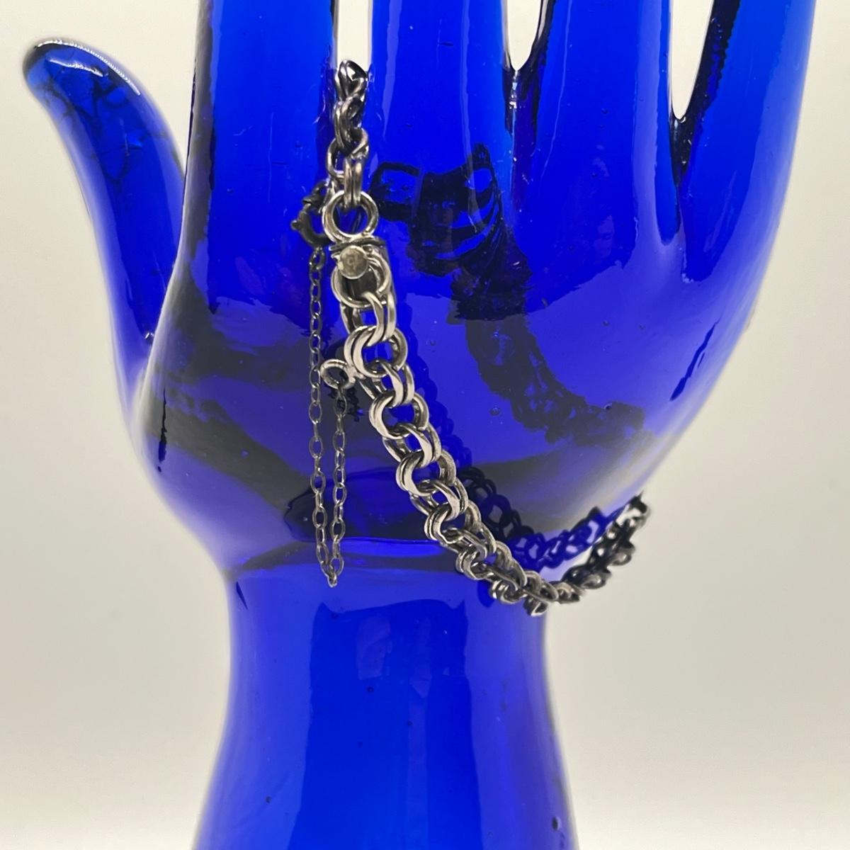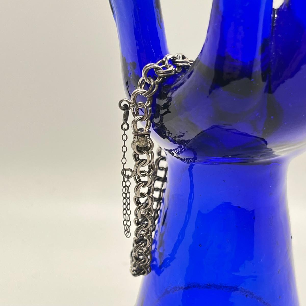 LOT 302J: Vintage Double Link Sterling Silver Charm Bracelet with Safety Chain-9.9 grams