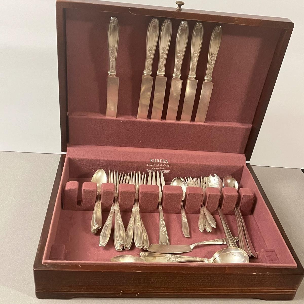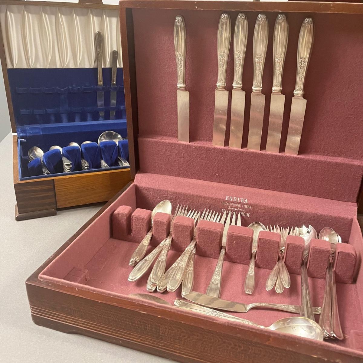 LOT 312J: Silver Plated Silverware in Two Wooden Cases