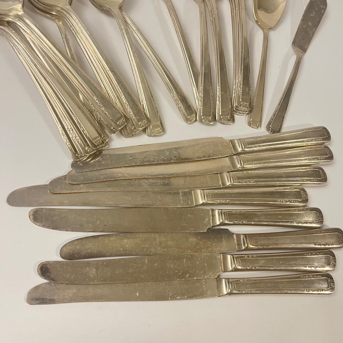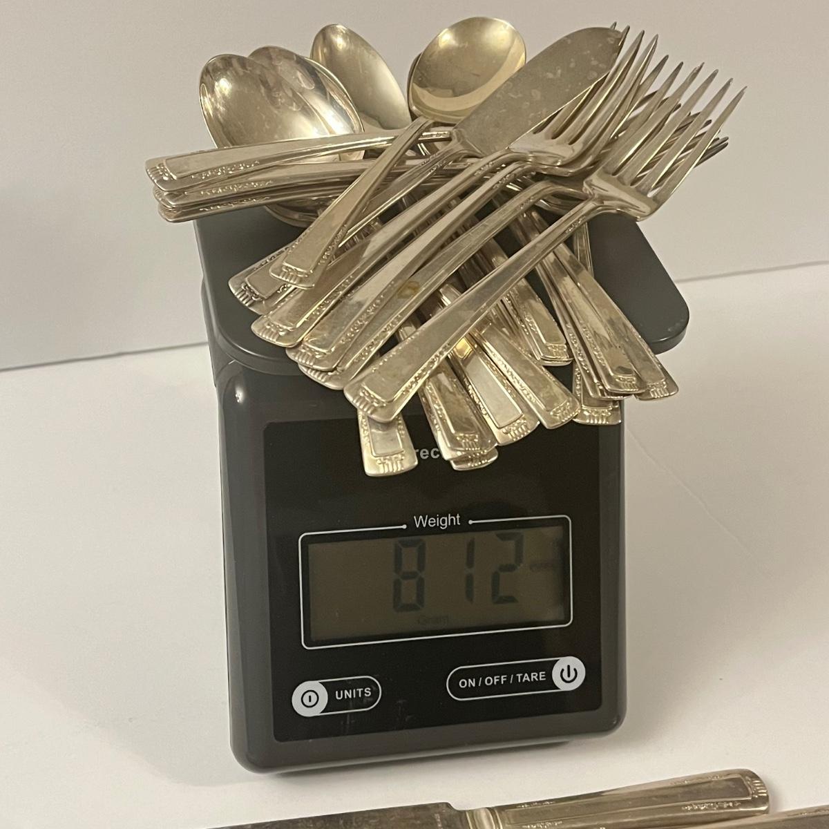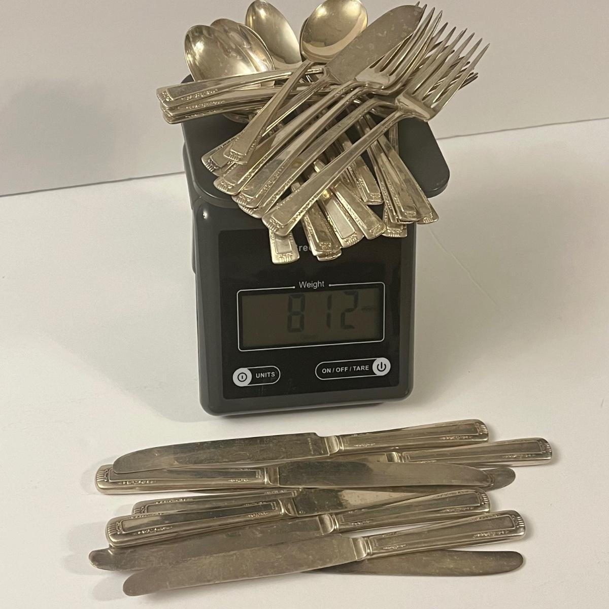 Weight was calculated without included table knives, which have sterling handles but silver plated blades.
