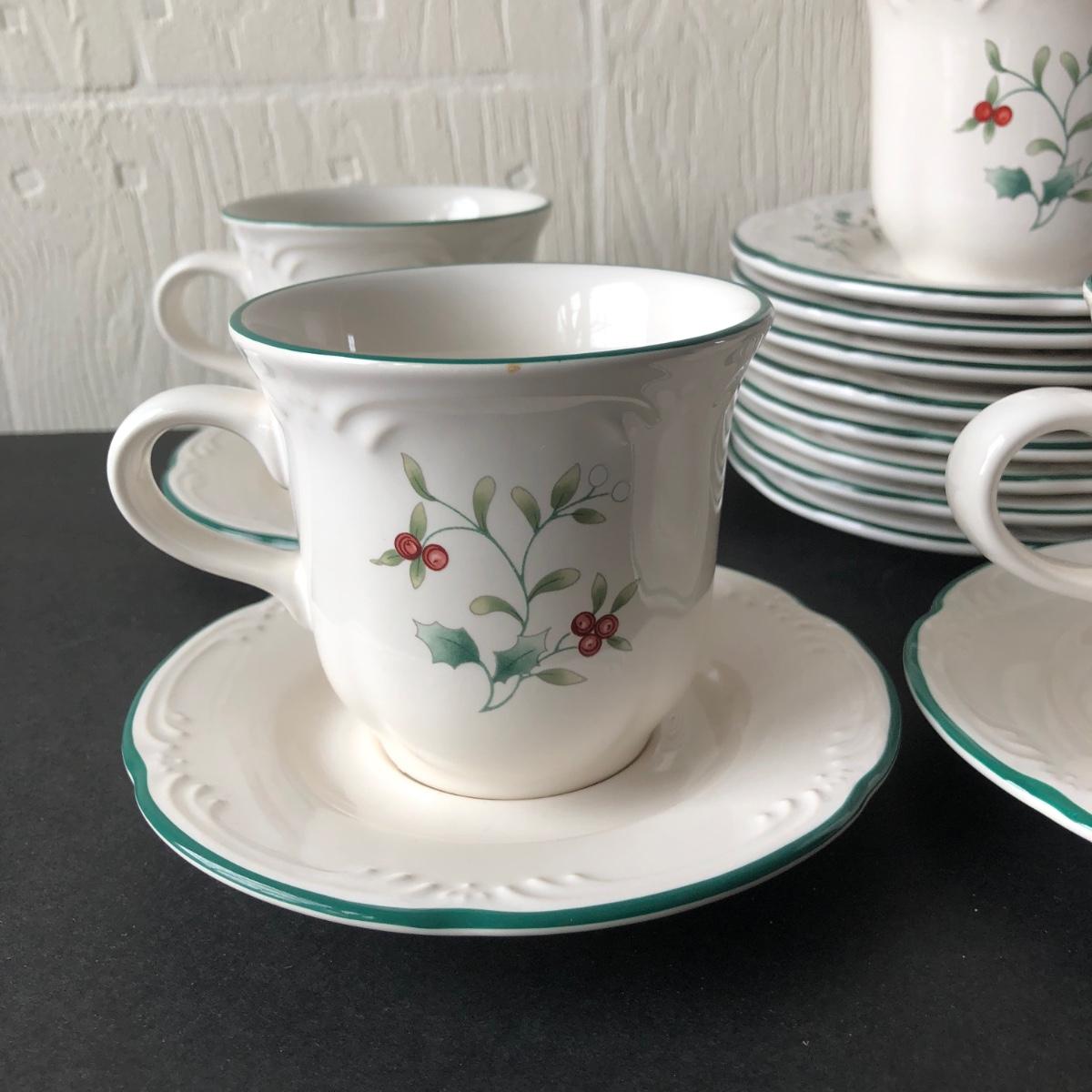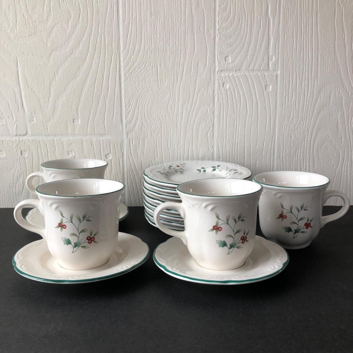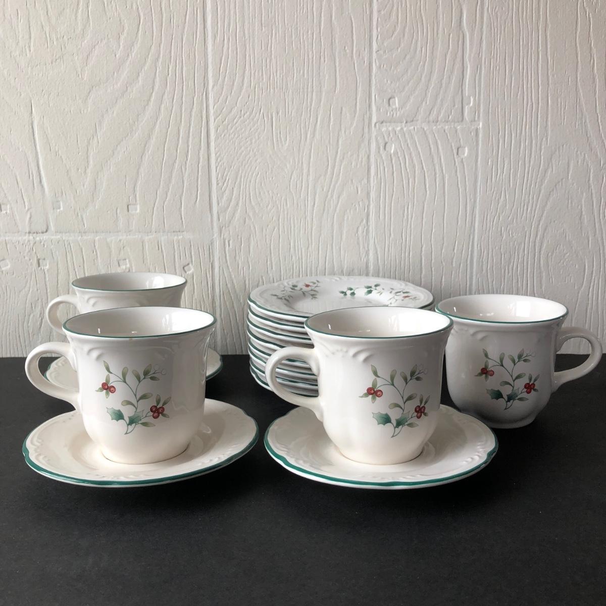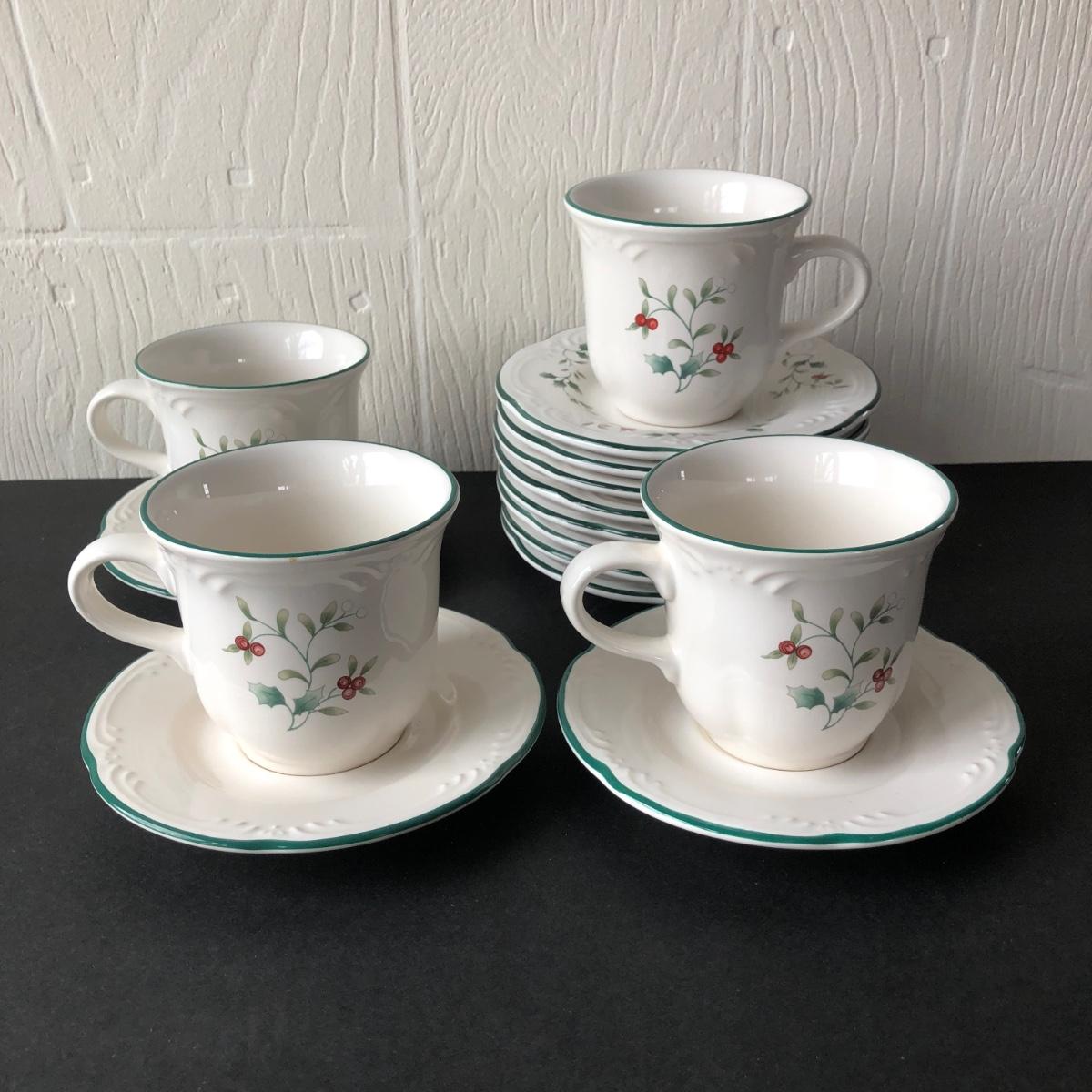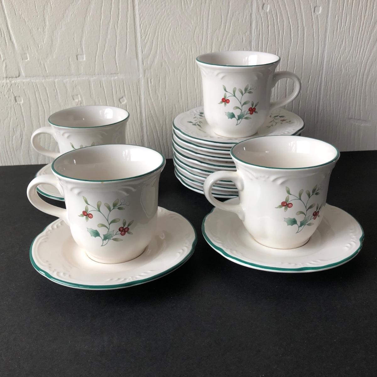 LOT 7G: Pfaltzgraff Winterberry - Mugs, Saucers & Dessert Plates