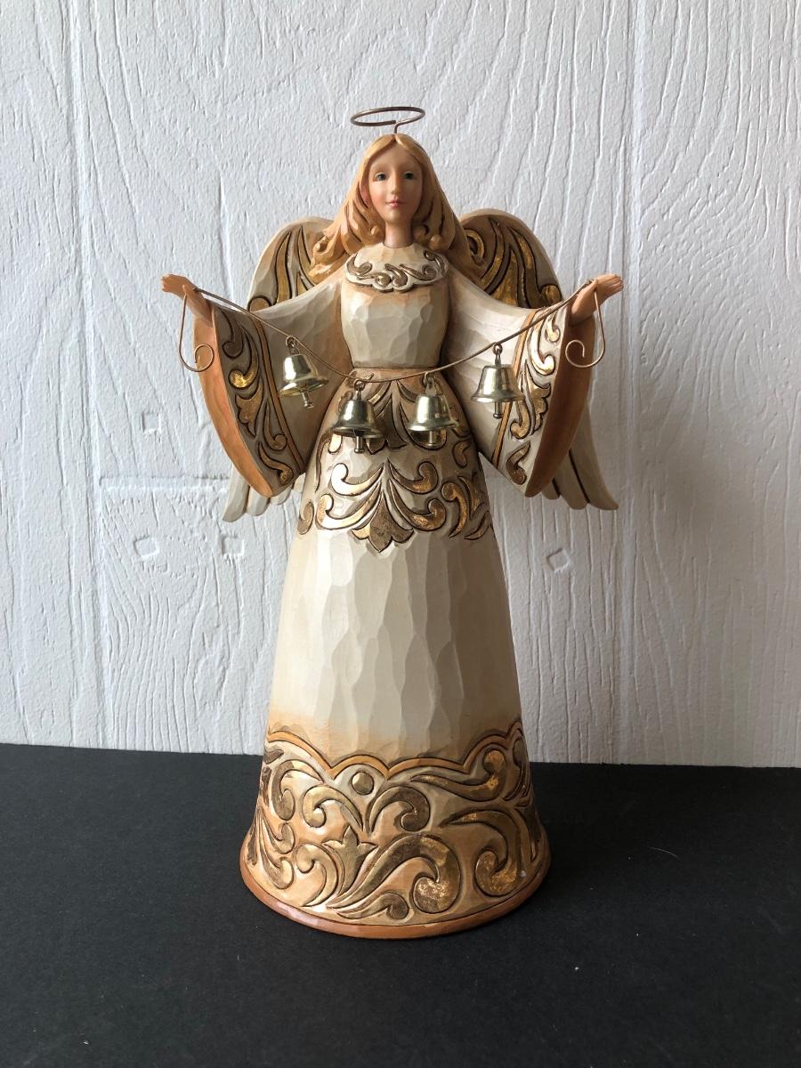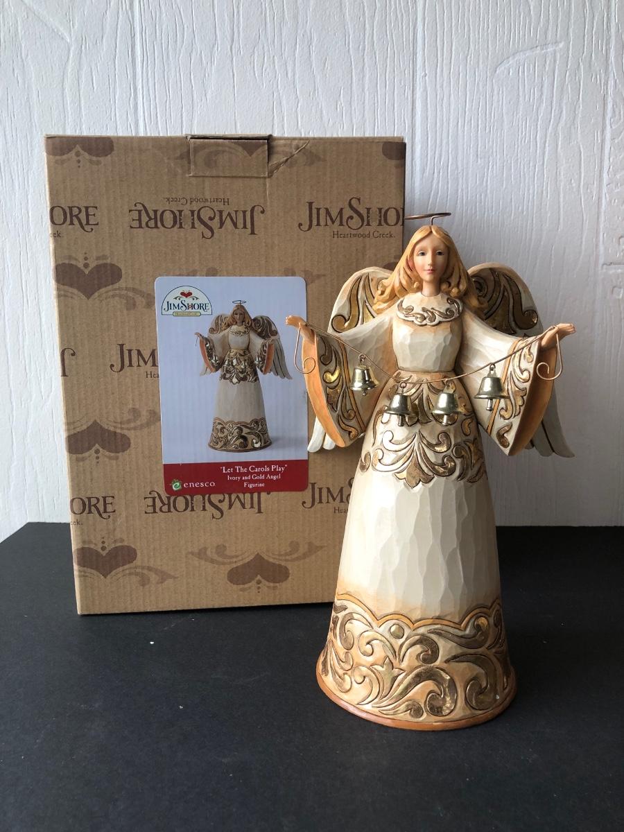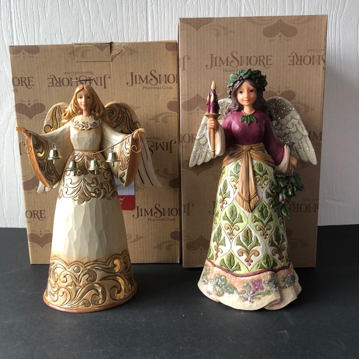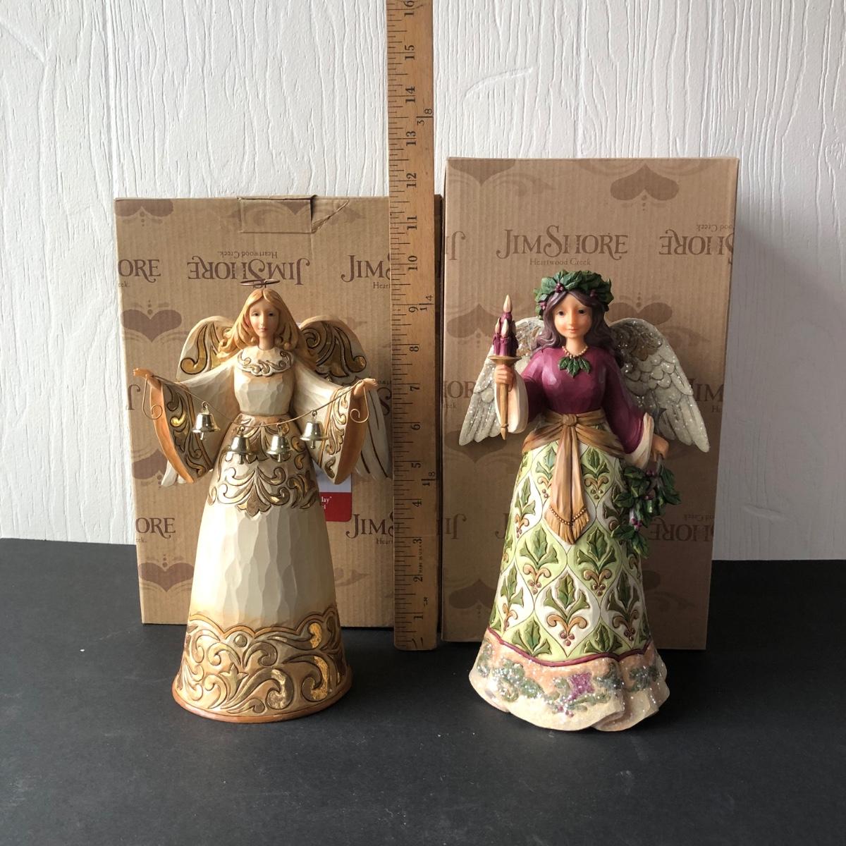 LOT 9G: Jim Shore Heartwood Creek Angels w/ Boxes - 2012 Let the Carols Play (4030243) & 2017 Jolly Holly Days (4058755)