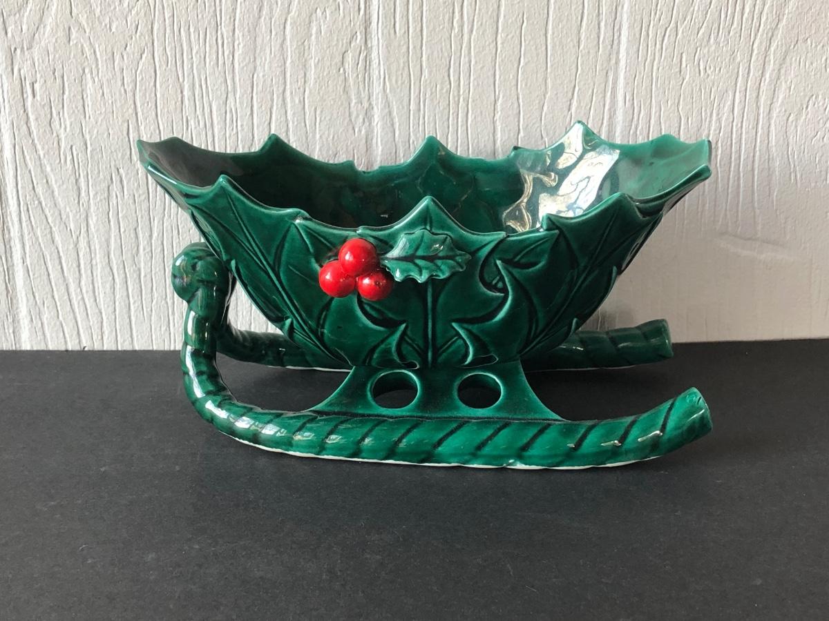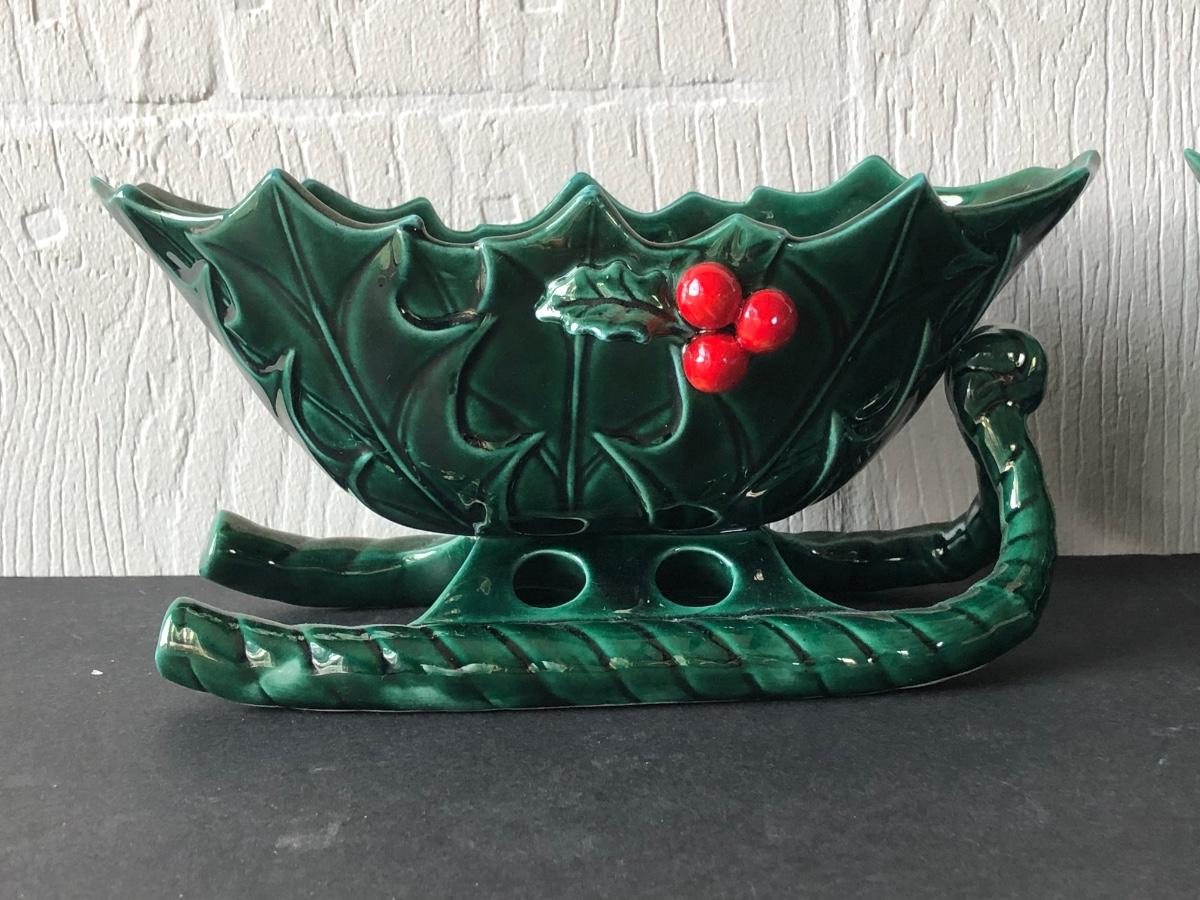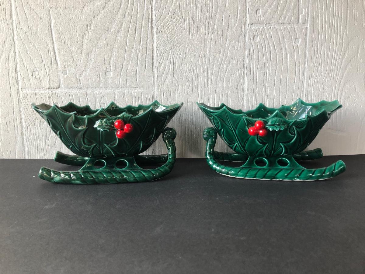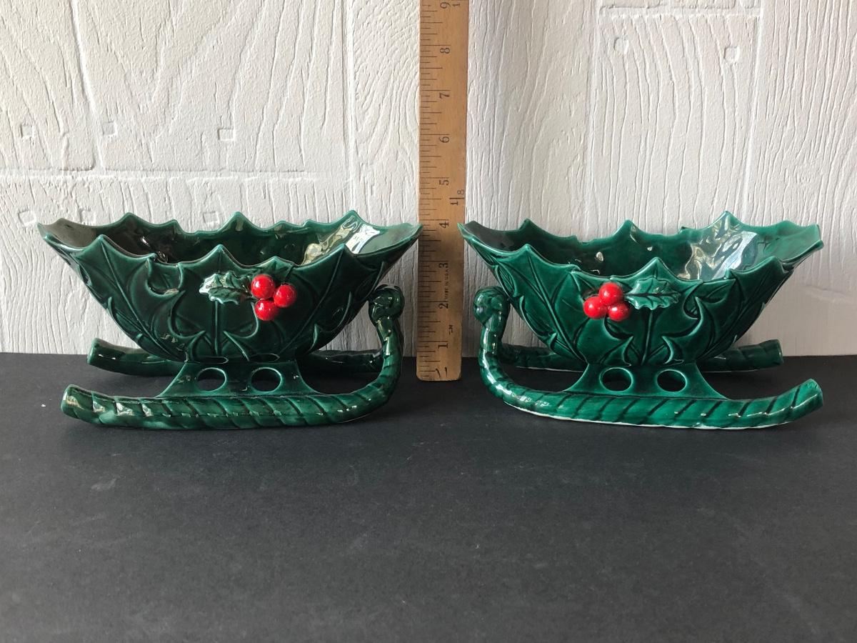 LOT 17G: Vintage Lefton Ceramic Holly Sleighs & Double Dish