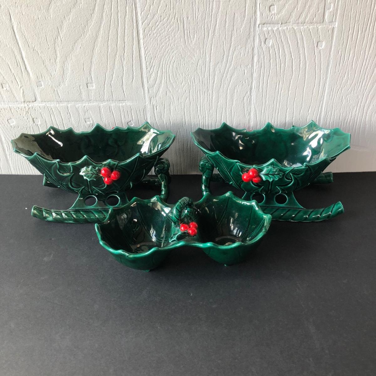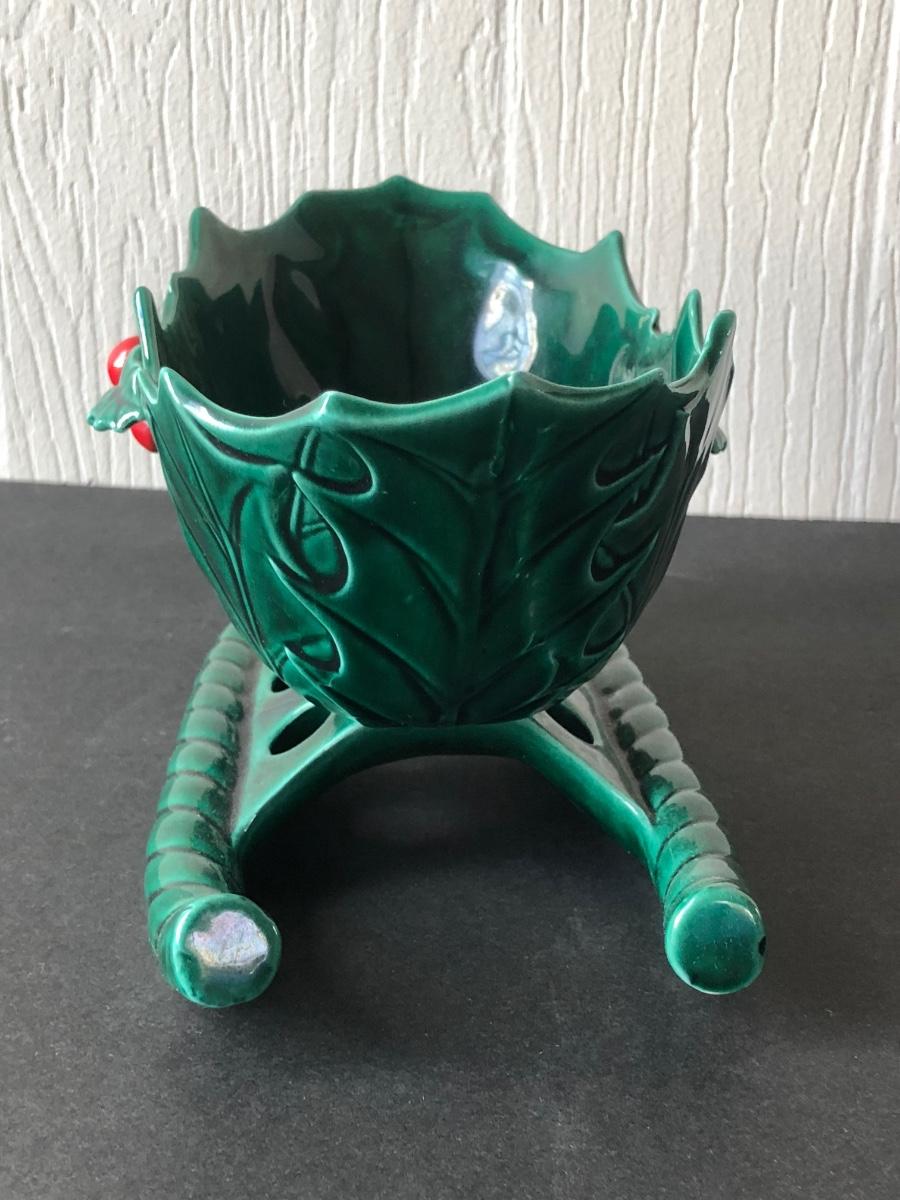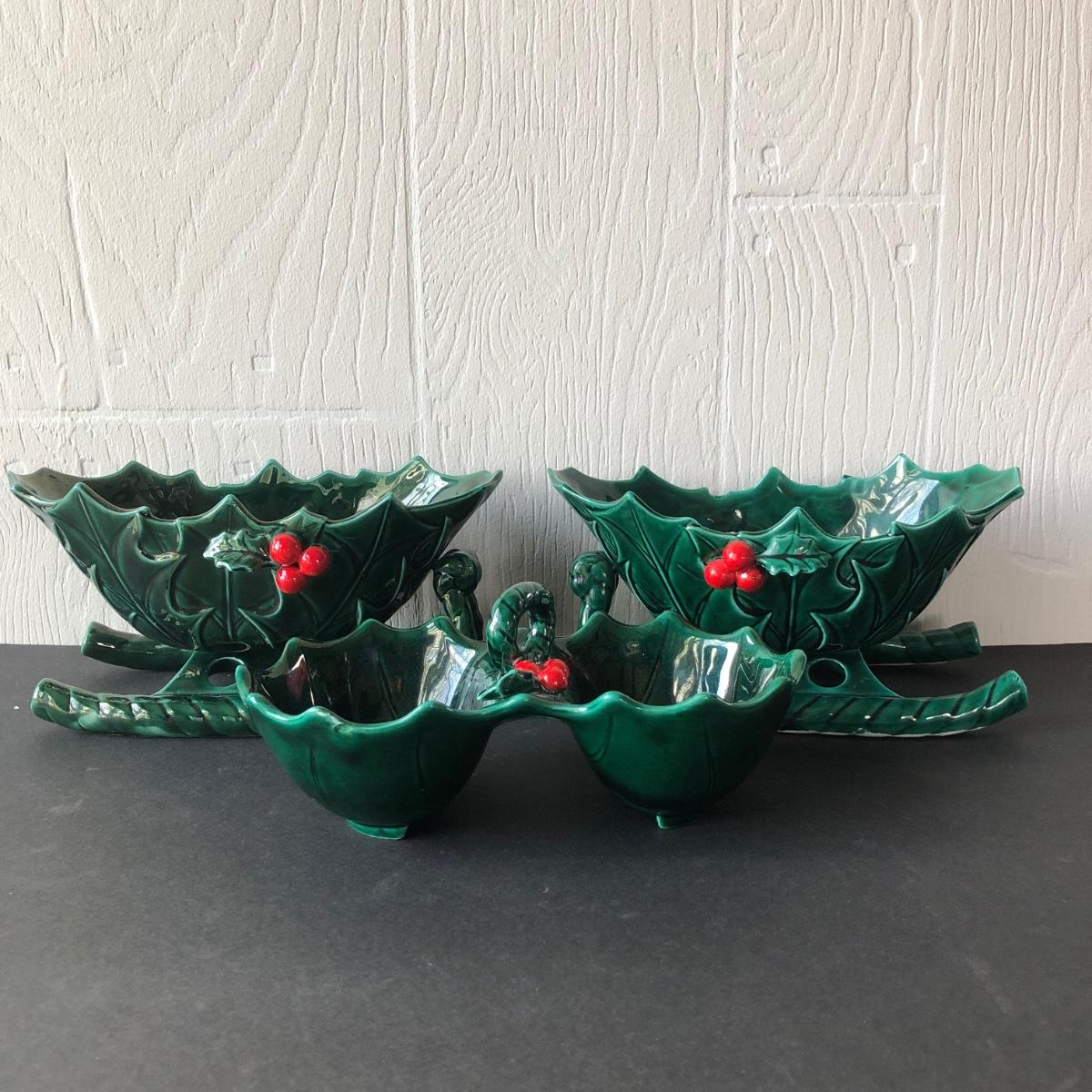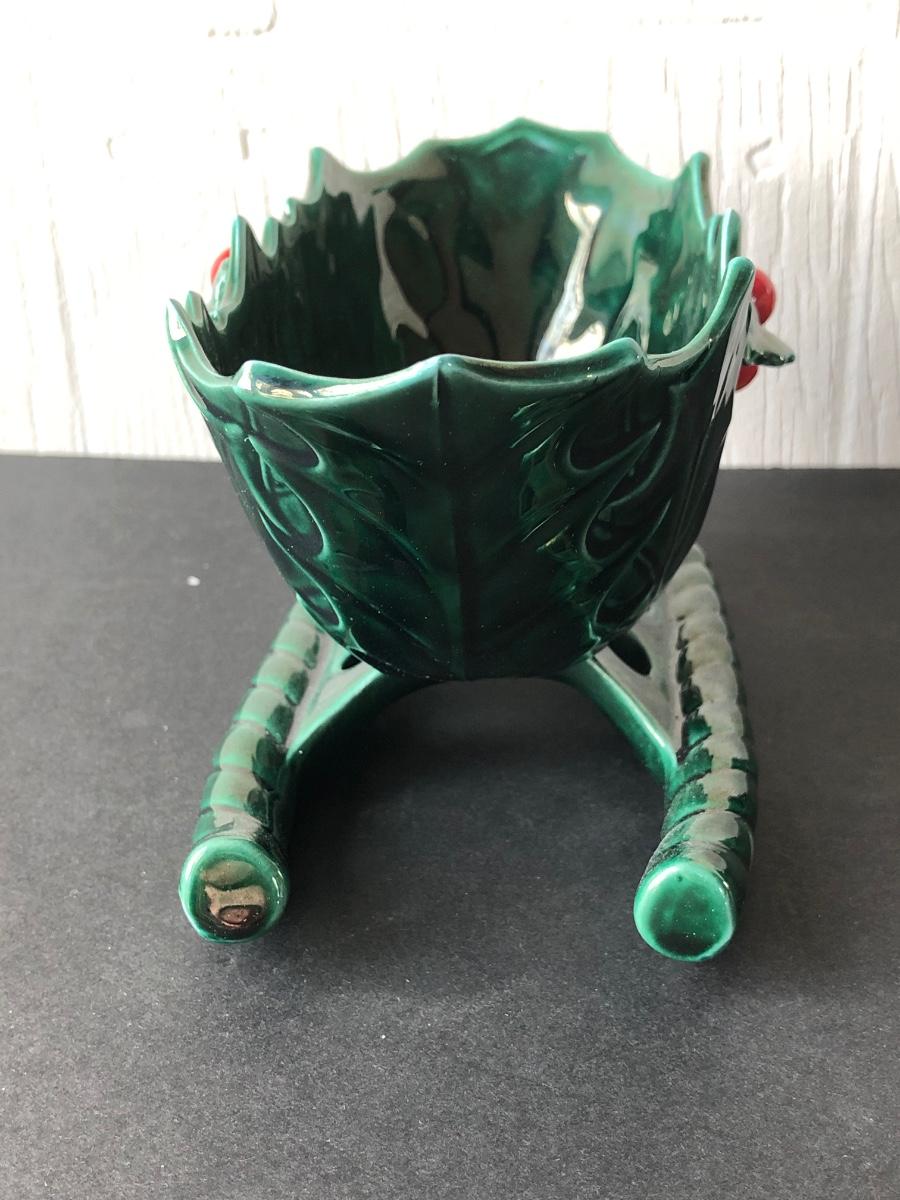 LOT 17G: Vintage Lefton Ceramic Holly Sleighs & Double Dish