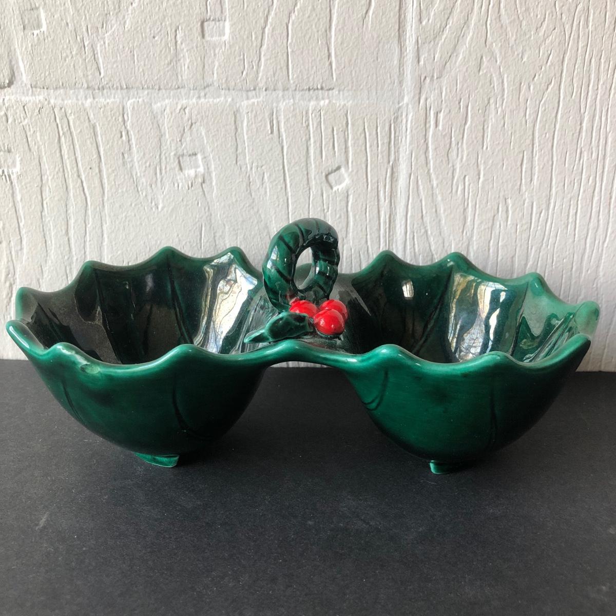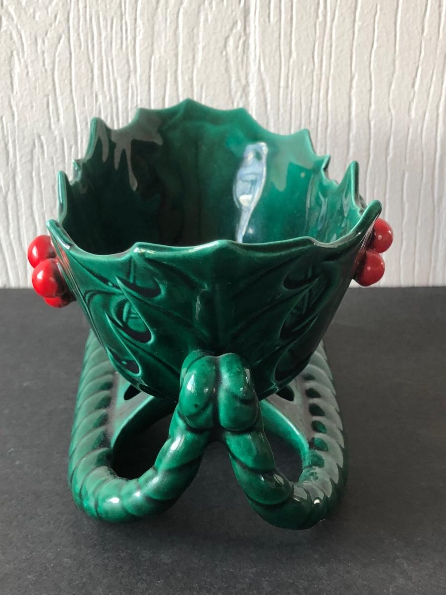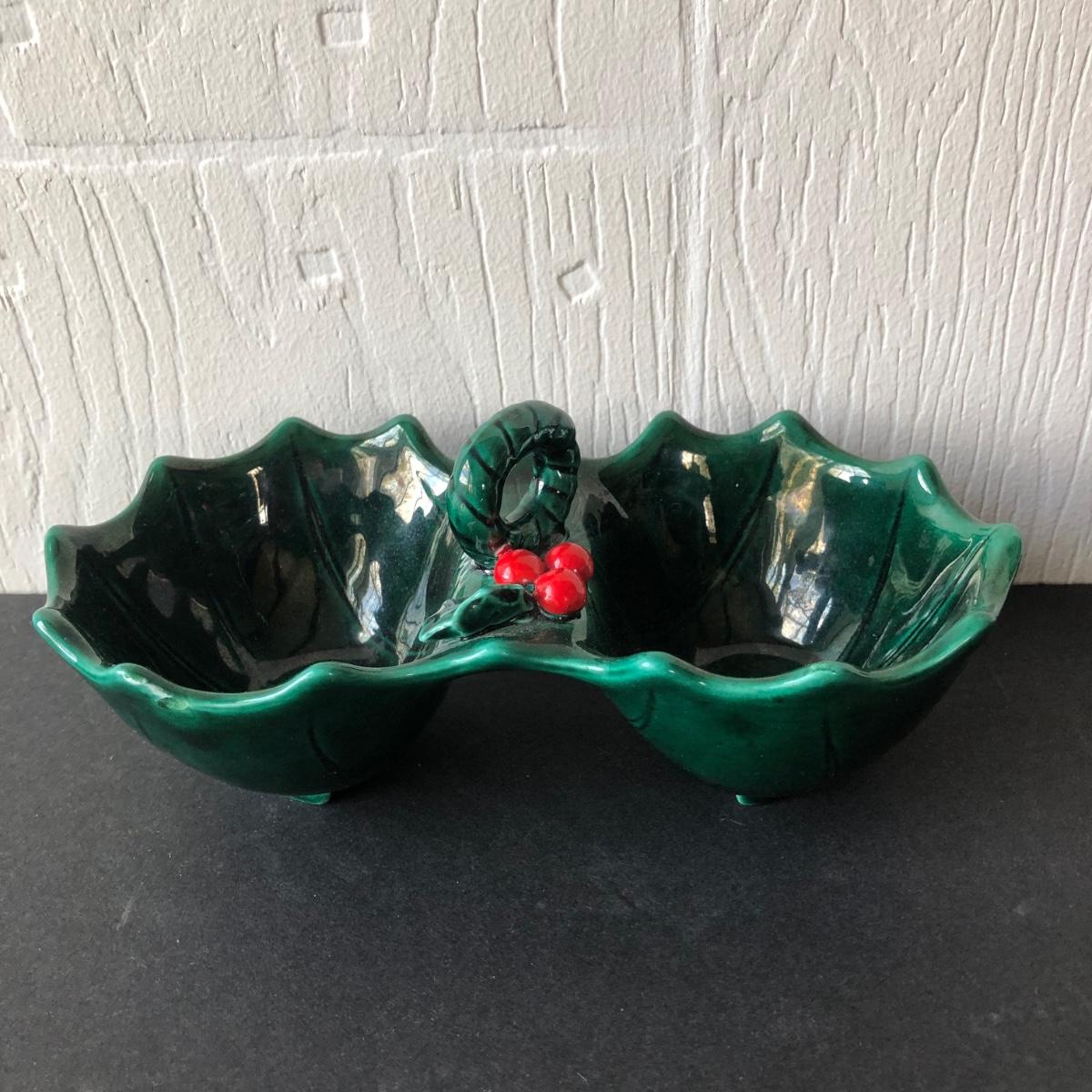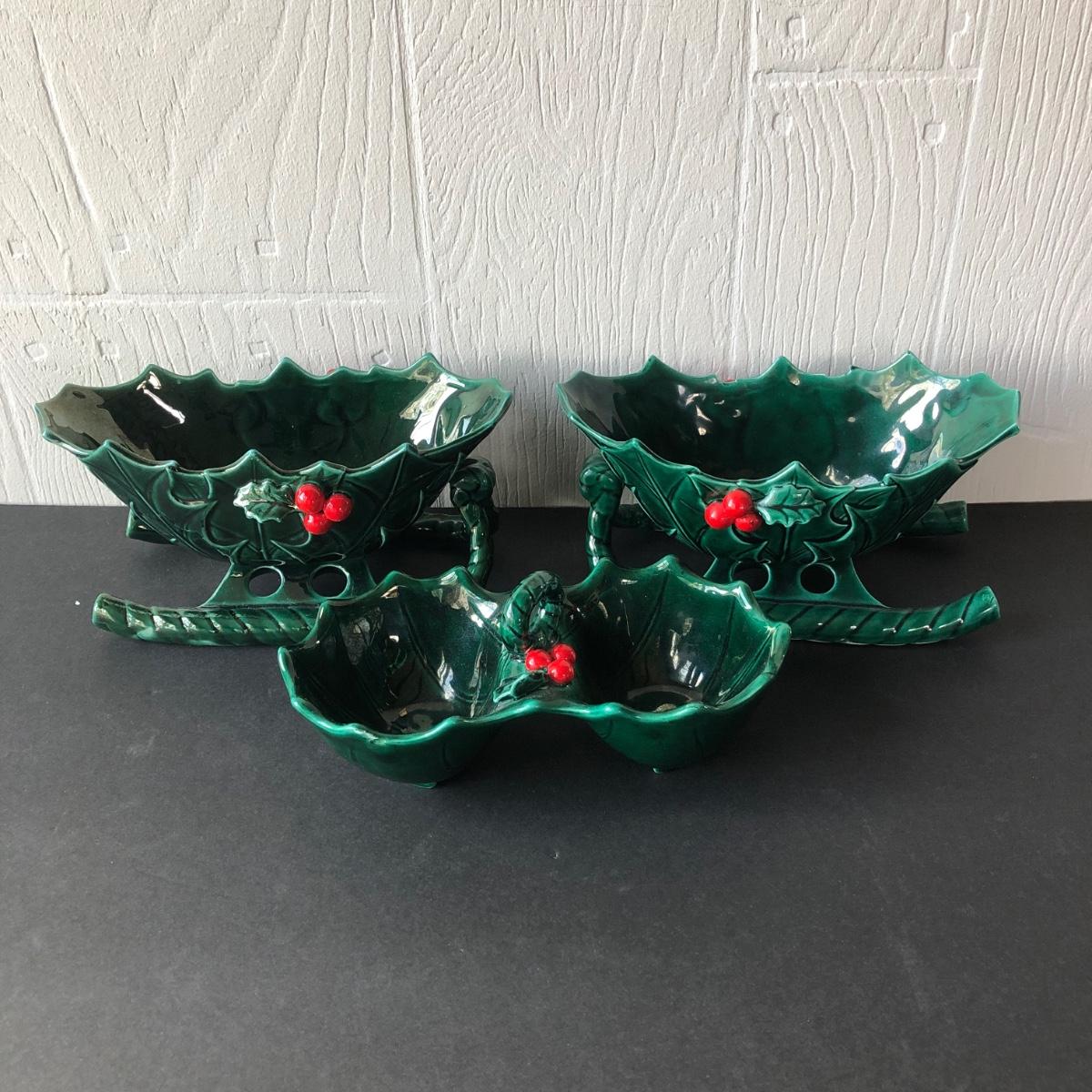 LOT 17G: Vintage Lefton Ceramic Holly Sleighs & Double Dish
