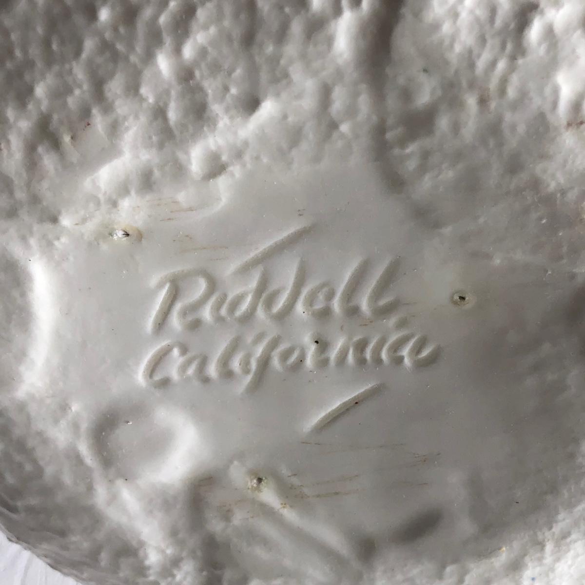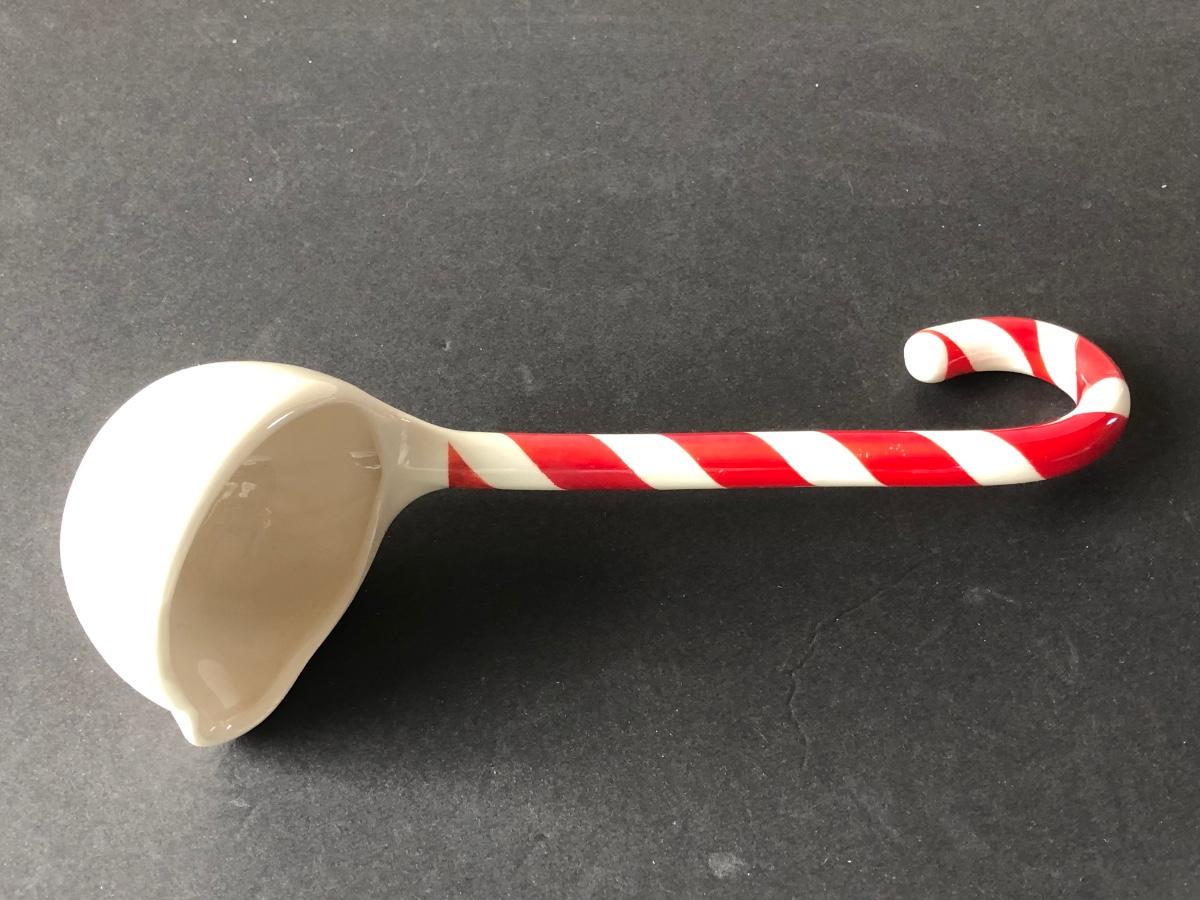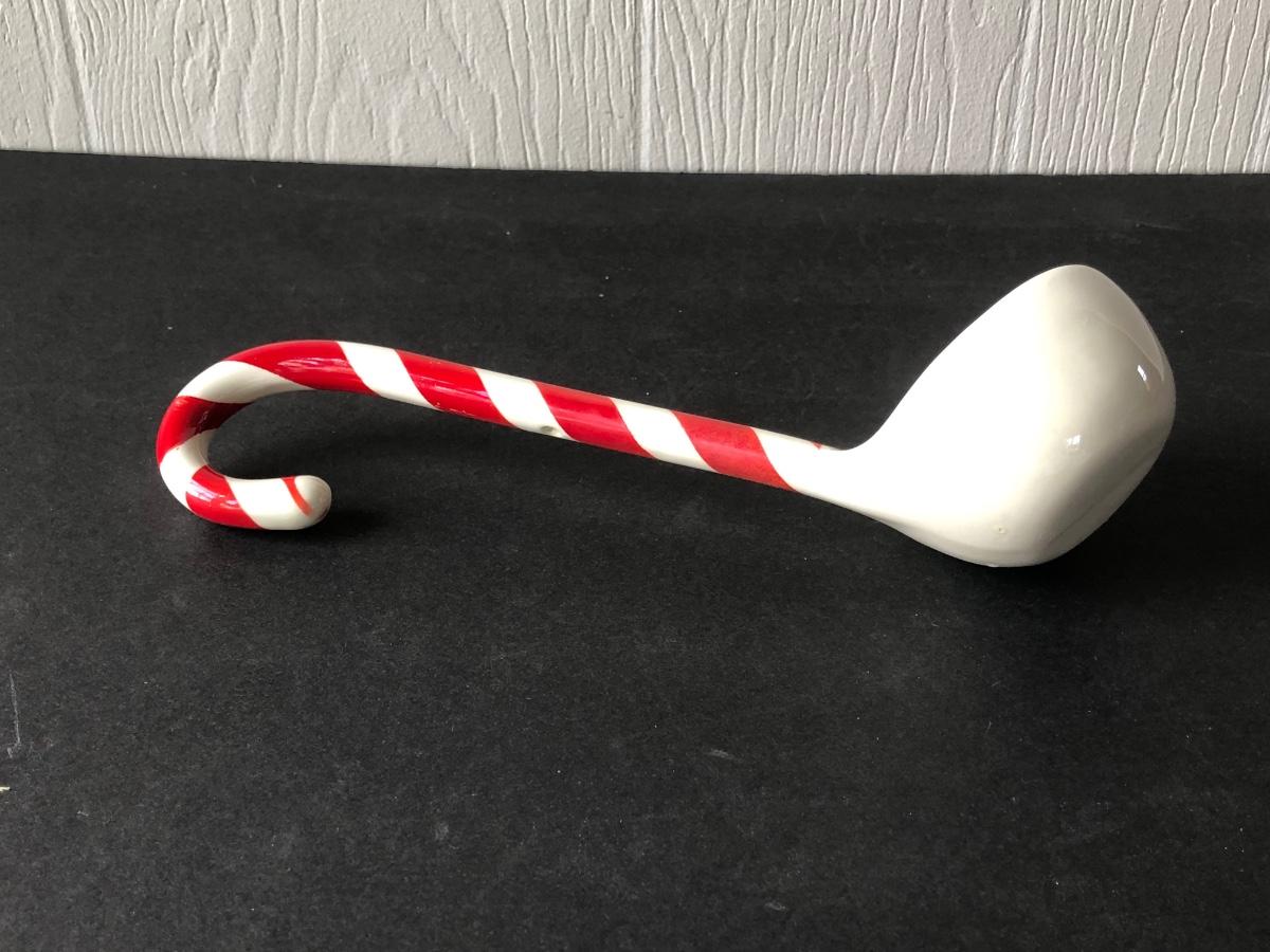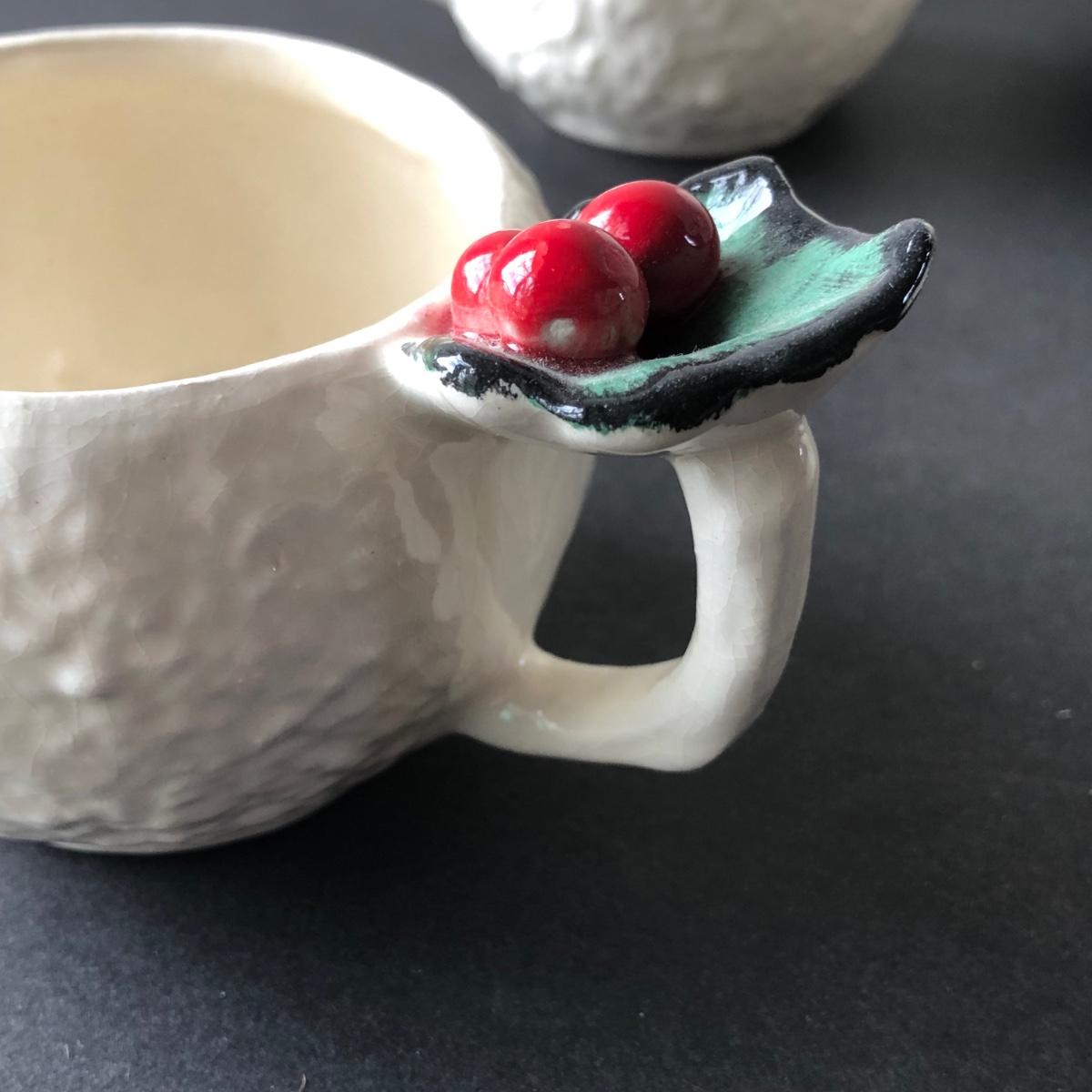 LOT 19G: Vintage 1950s Riddell California Pottery Holly Punch Bowl w/ 6 Matching Cups & Candy Cane Ladle