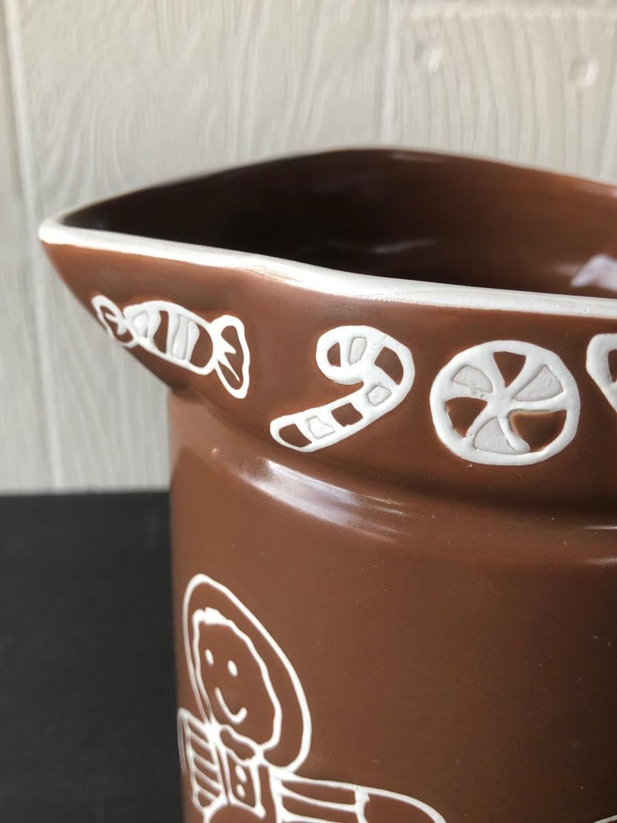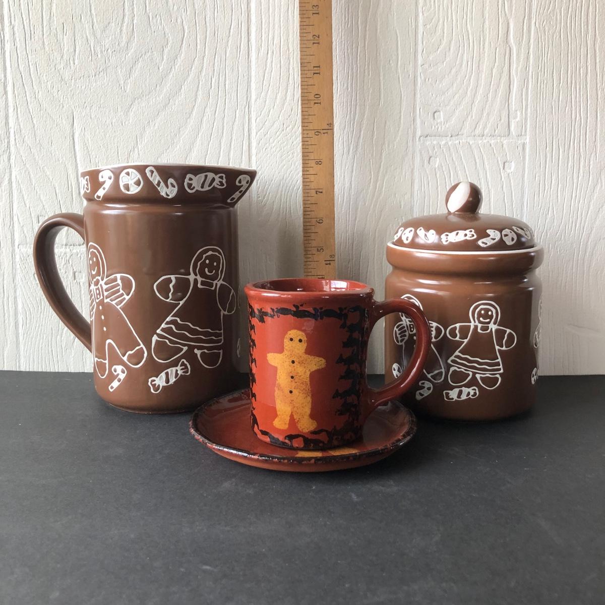 LOT 20G: Gingerbread Kitchen Collection - Stoneware Pitcher & Cookie Jar w/ Tennessee Clayworks Mug & Plate