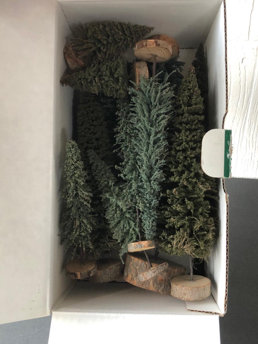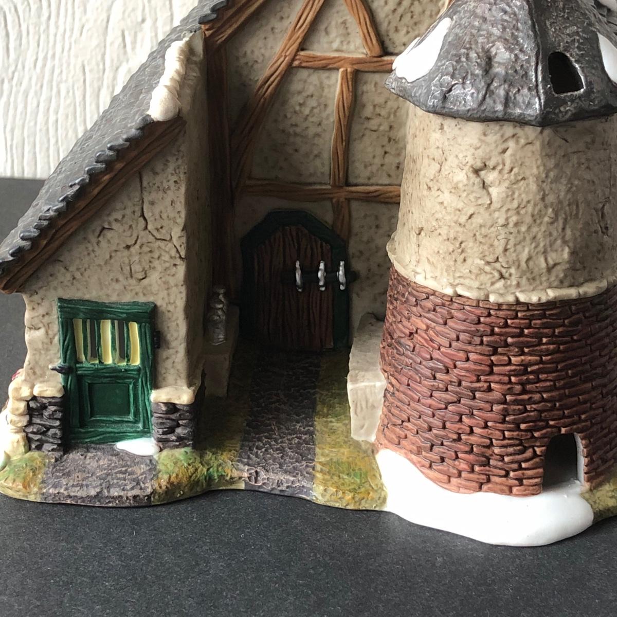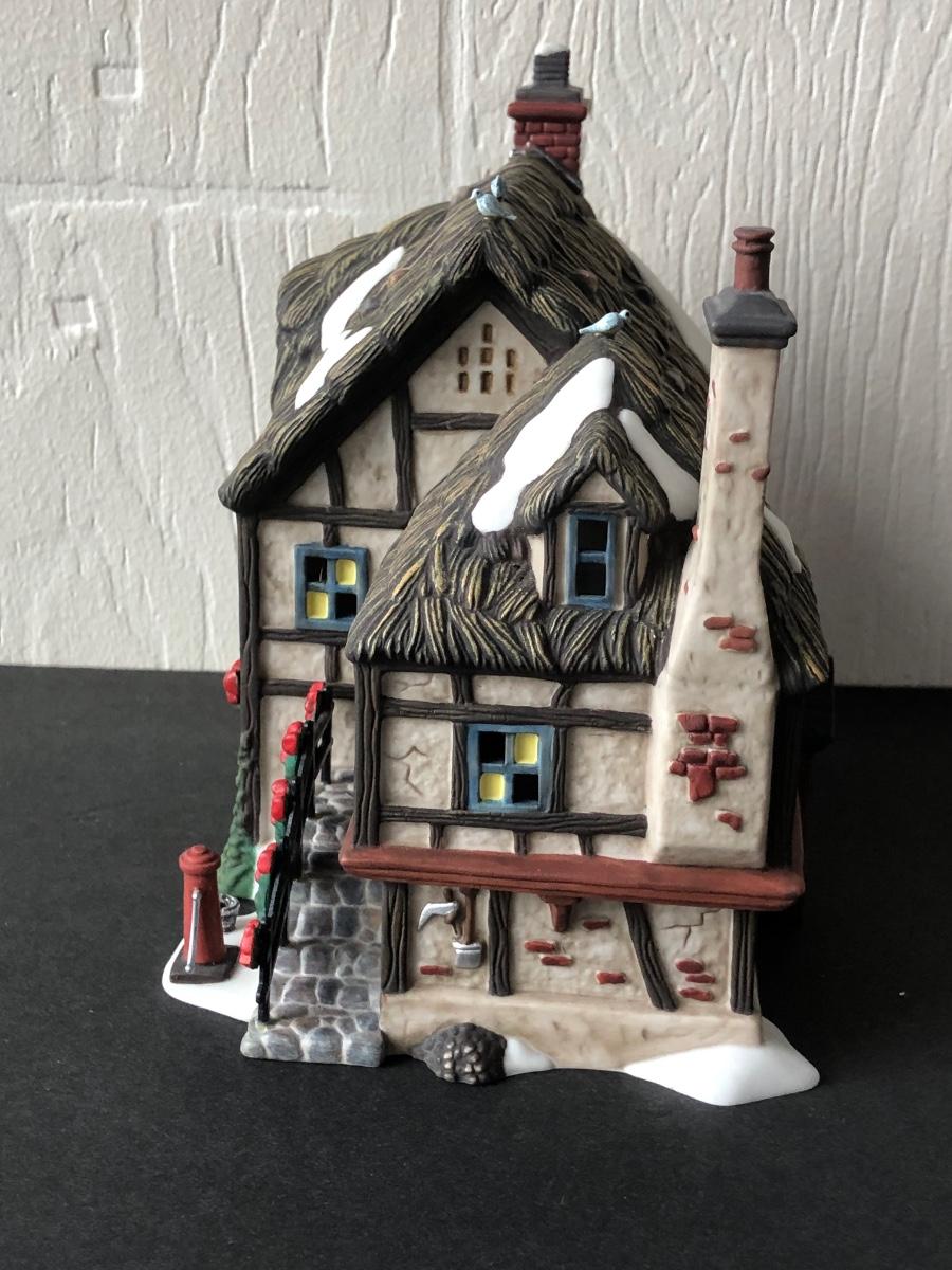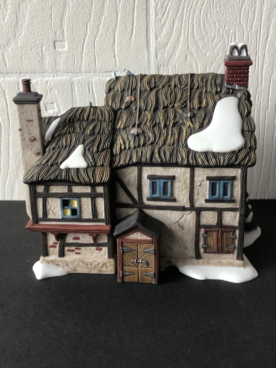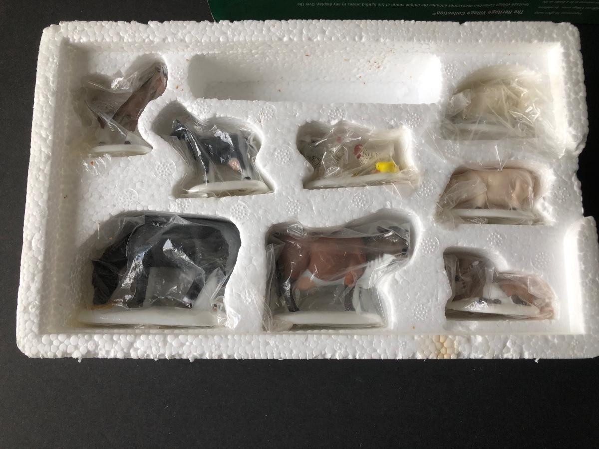 LOT 23G: Department 56 - 2006 Frasier Family Barn (56.58755), 2002 Codington Cottage (56.58514), Fetching the Days Water (56.58805) w/ Farm Animals (56.56588 - missing hay) & Natural Evergreens