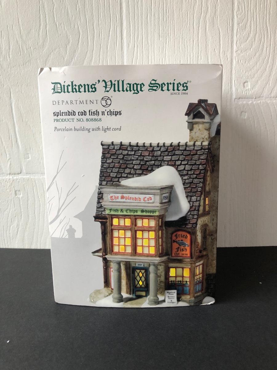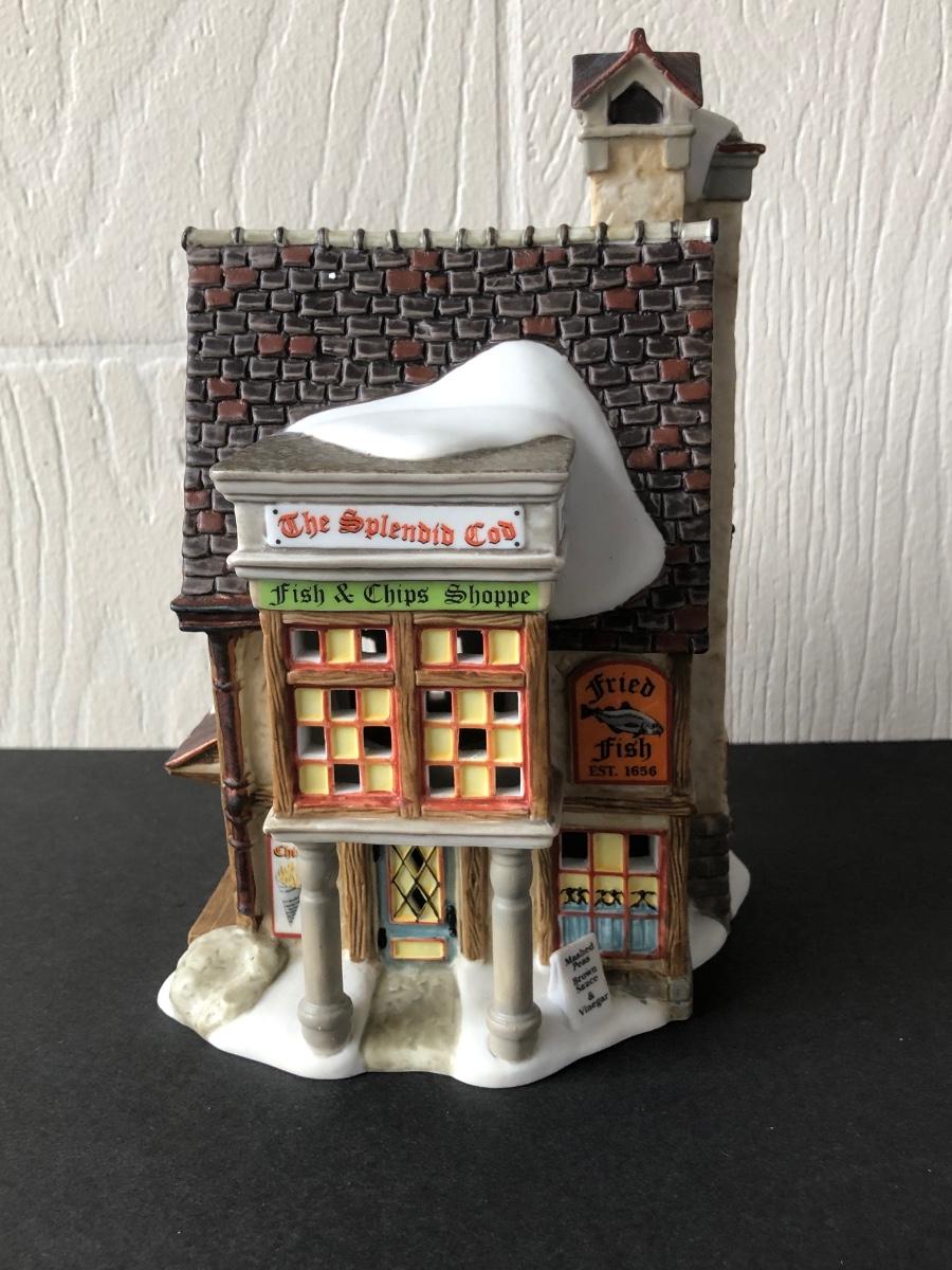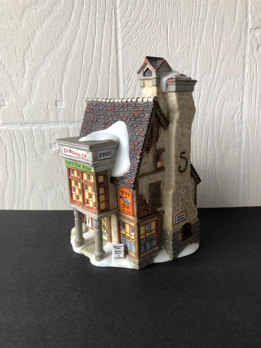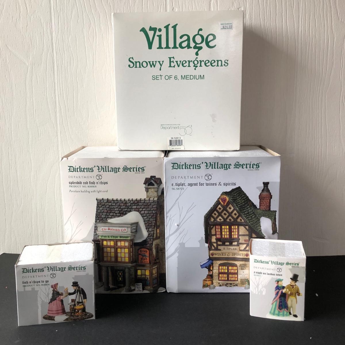 LOT 24G: Department 56 Dicken's Village - 2004 E. Tipler, Agent for Wines & Spirits (56.58725), 2010 Splendid Cod Fish n' Chips (808860), Fish n' Chips To Go (808896), A Night on London Town (4025261)