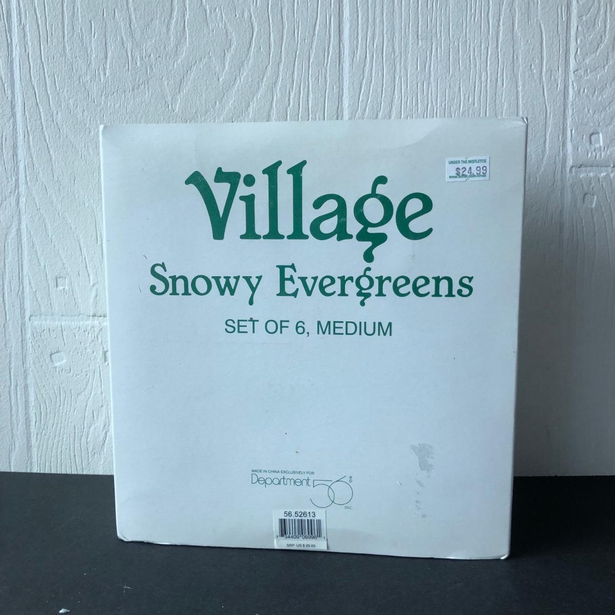 Also includes set of 6 medium Village Snowy Evergreens.