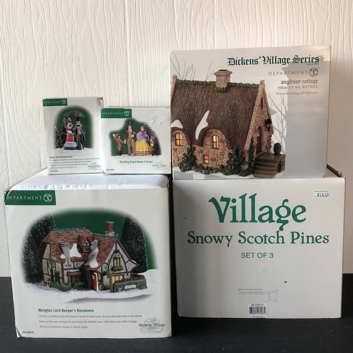 LOT 34F: Department 56 Dickens' Village - 2000 Abington Lock Keeper's Residence (56.58474), 2011 Anglesey Cottage (4023624), Under the Bumbershoot (56.58460) & More